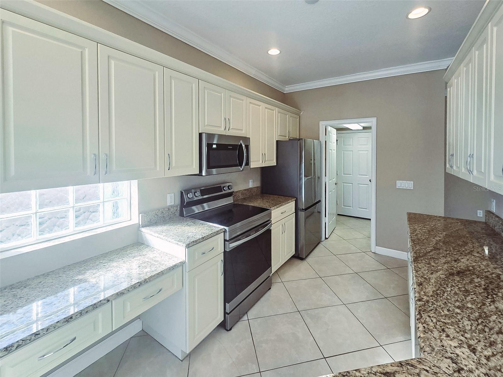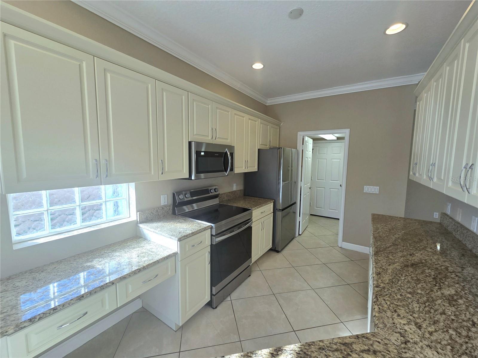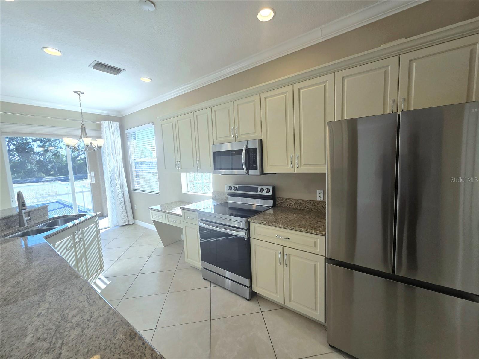 Welcome home to Ashton Enclave, where serene views can be enjoyed from the main living areas, primary suite, and outdoor living spaces. Located just minutes from Siesta Key Beach, shopping, and dining, this beautifully maintained home offers a spacious 4-bedroom, 3-bath open-concept floor plan with numerous recent upgrades. The first floor features tile flooring throughout, crown molding, and multiple inviting living spaces—including a large great room/dining room combination and a sunny breakfast area—perfect for everyday living and entertaining. Step outside to the spacious screened and covered lanai, plus a 20x20 deck, providing ample room to relax, host gatherings, or enjoy peaceful outdoor living. The primary suite on the first floor offers walk-in closets and an ensuite bath with granite countertops, dual sinks, a soaking tub, and a walk-in shower. Additional first-floor guest suites also include walk-in closets. Upstairs, a private bedroom with newer laminate flooring and an ensuite bath featuring granite countertops and a decorative picture-frame mirror can serve as a second primary suite or ideal guest retreat. Additional highlights include an indoor laundry room with a laundry sink, new cabinet doors, and newer washer and dryer. Recent updates include new kitchen cabinets and stainless steel appliances (2025), laundry cabinet doors (2025), interior paint (2025), HVAC and water heater (2024), and roof (2017). Outside, a fenced area with a concrete pad offers space for RV parking. Ashton Enclave is a quiet community of only six homes and features a low HOA fee that includes water, sewer, irrigation, and lawn care, making for easy, low-maintenance living.