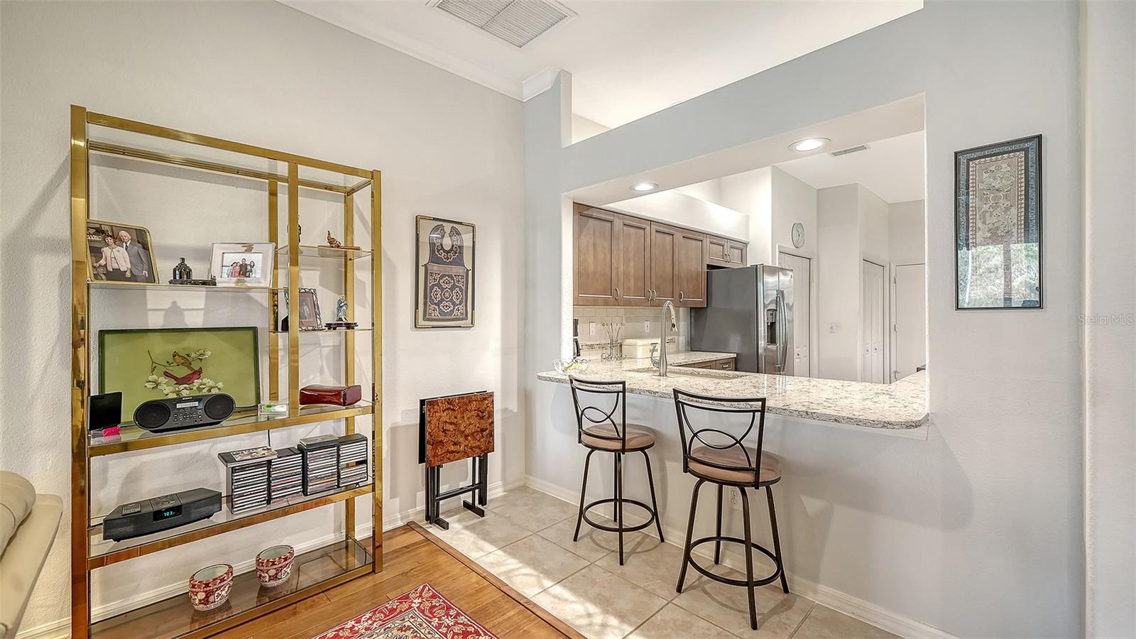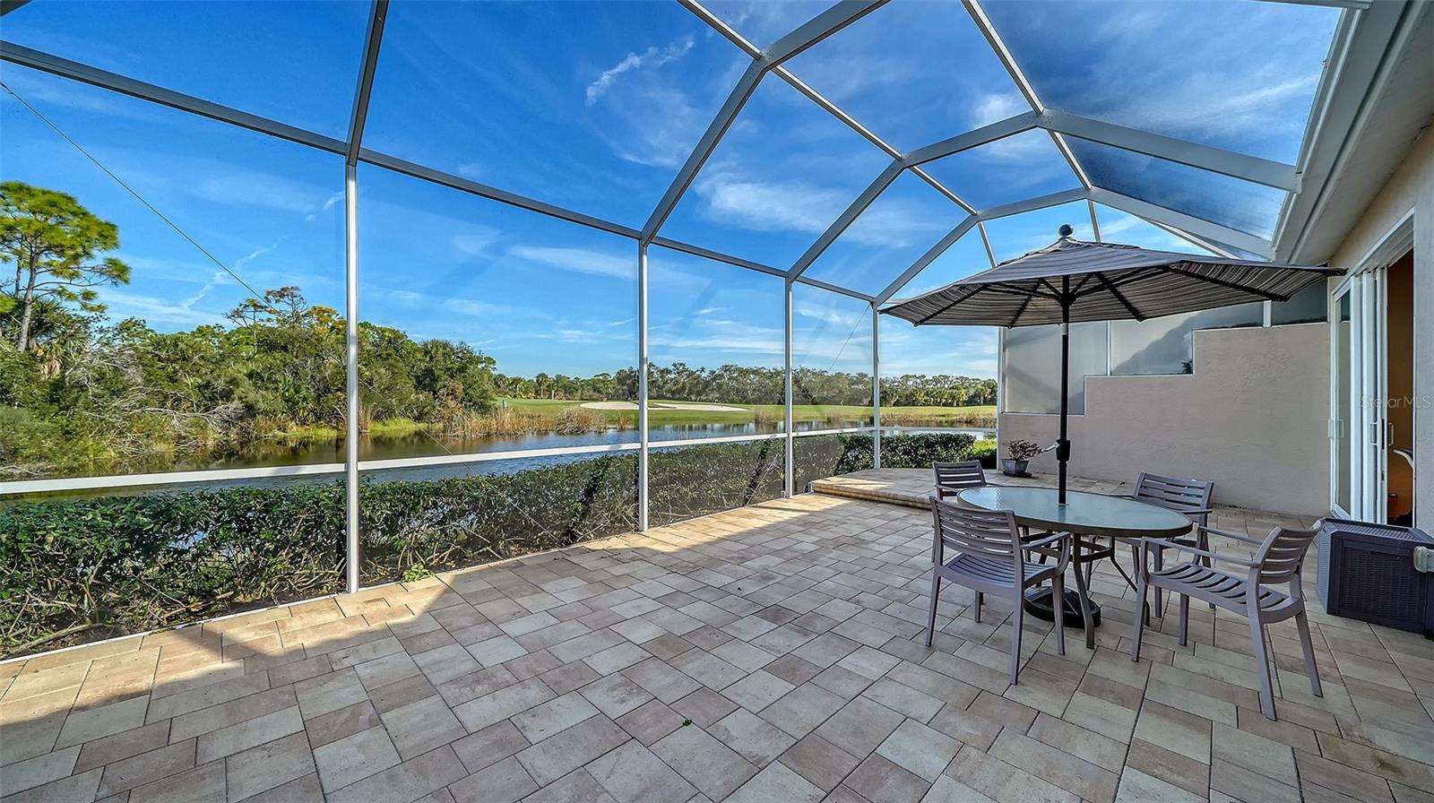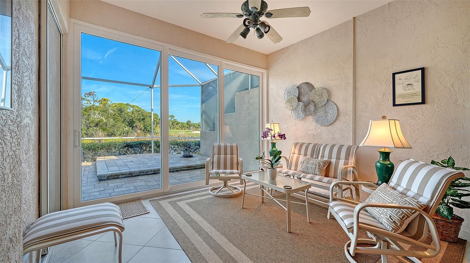 This amazing Villa with views of the 6th hole par 3 looking across the lake and preserves. This open floor plan unit boasting updated kitchen, impact windows and glassed-in lanai. Enjoy the engineered hardwood in the living room, oversized Dinette area off the kitchen, large primary walk-in closest and brick paver lanai. 2 car garage and nearby the community pool at forest hills. A premier member-owned country club, is only a short distance from Siesta Key and offers easy access to shopping and borders the Legacy Trail. Ownership in Stoneybrook Golf and Country Club includes a completely updated 18 hole golf course in 2024, clubhouse and restaurant, Har-Tru tennis facility, well-equipped fitness center and additional club pool and spa. Nestled between Downtown Sarasota and Downtown Venice.