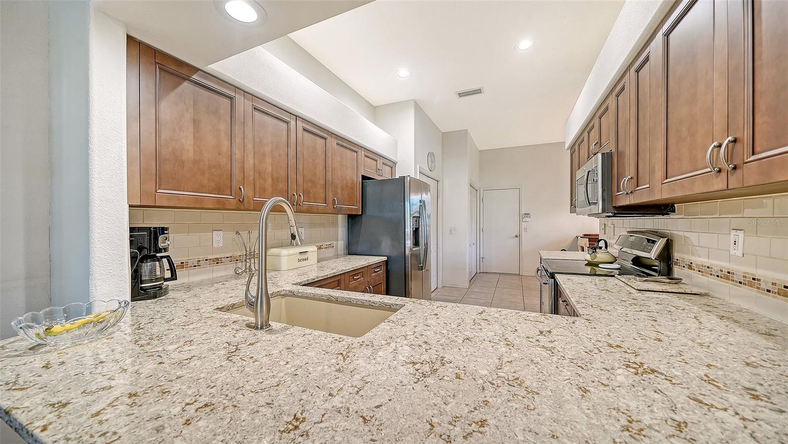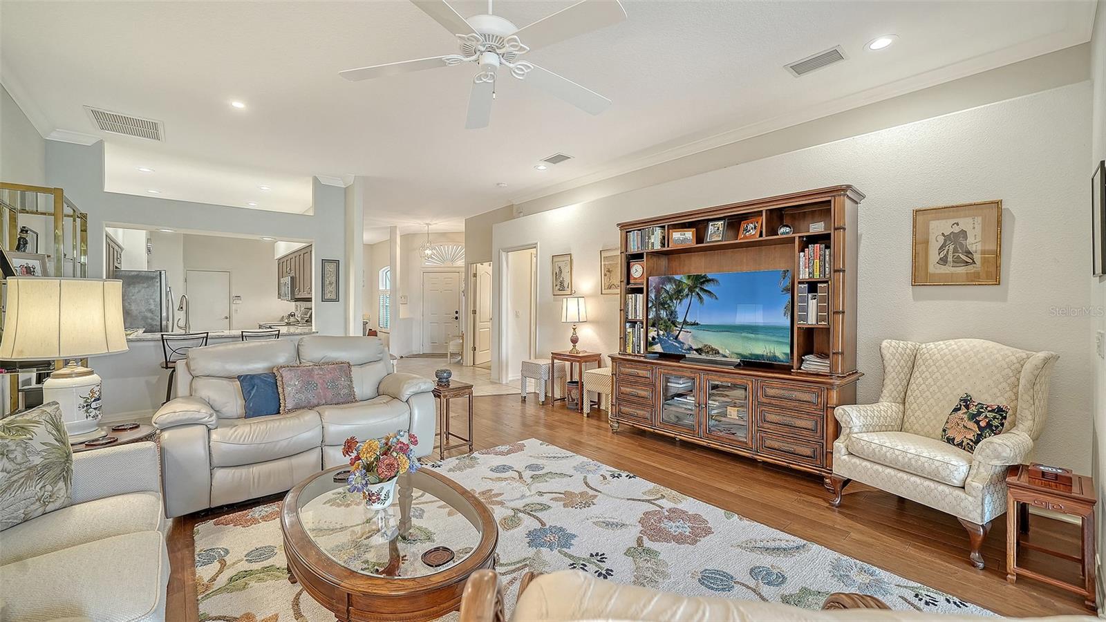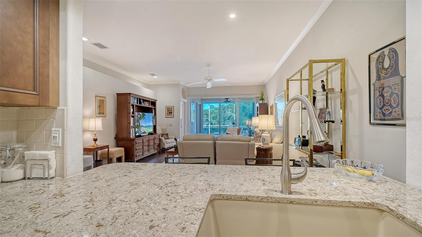 This amazing Villa with views of the 6th hole par 3 looking across the lake and preserves. This open floor plan unit boasting updated kitchen, impact windows and glassed-in lanai. Enjoy the engineered hardwood in the living room, oversized Dinette area off the kitchen, large primary walk-in closest and brick paver lanai. 2 car garage and nearby the community pool at forest hills. A premier member-owned country club, is only a short distance from Siesta Key and offers easy access to shopping and borders the Legacy Trail. Ownership in Stoneybrook Golf and Country Club includes a completely updated 18 hole golf course in 2024, clubhouse and restaurant, Har-Tru tennis facility, well-equipped fitness center and additional club pool and spa. Nestled between Downtown Sarasota and Downtown Venice.