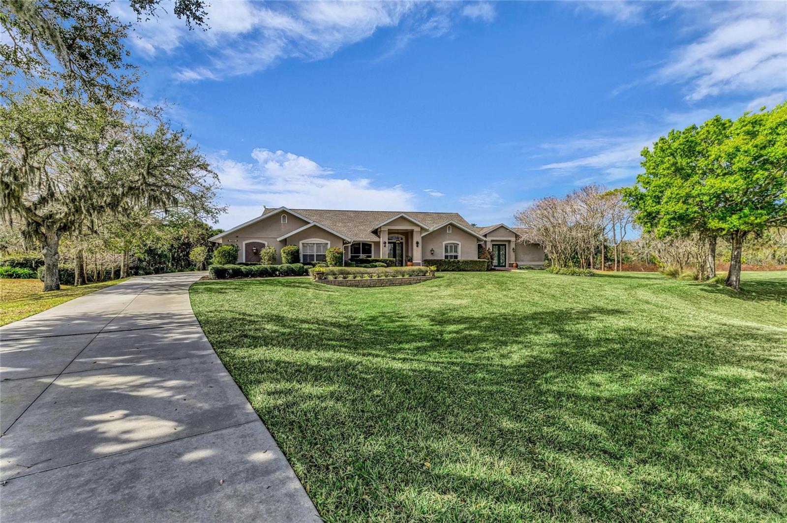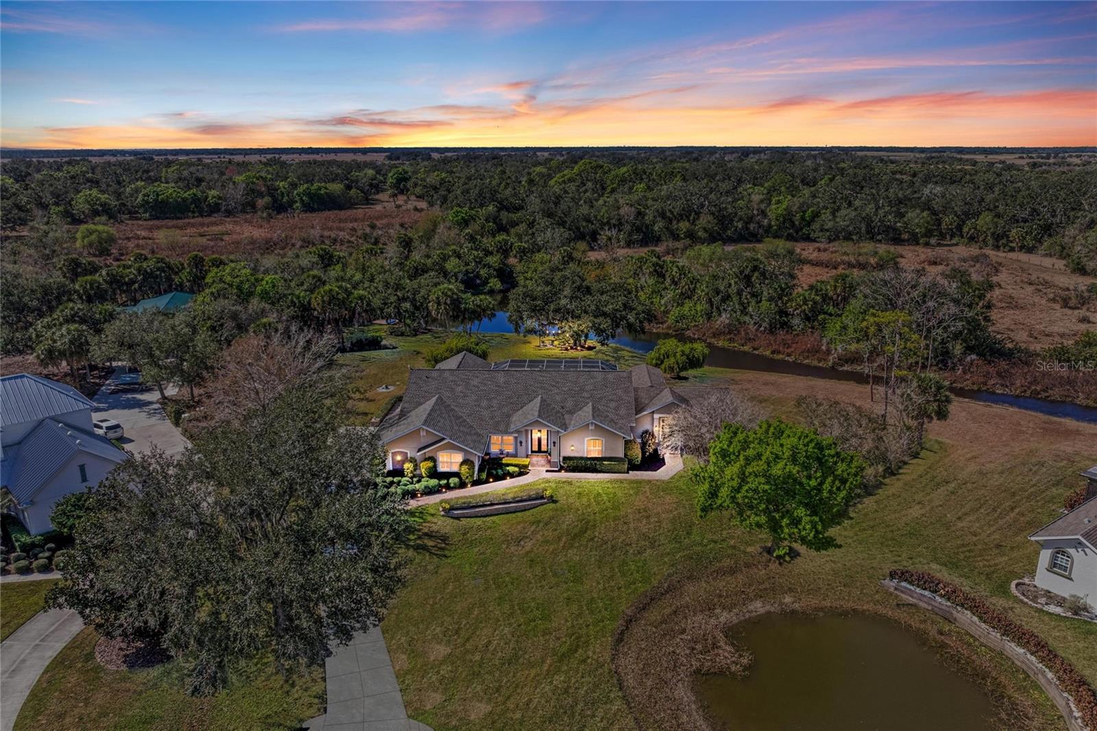 SARASOTA FL: Private Oak Ford retreat on 2 acres with pond, pool, outdoor kitchen, separate studio, and brand-new major upgrades with new roof— is a true hidden sanctuary. Tucked at the end of a quiet cul-de-sac, this LEE WETHERINGTON custom-built, fully remodeled private estate offers rare serenity with two full acres of total enjoyment — one acre owned plus a perpetual, exclusive-use easement that conveys to future owners. The backyard feels like a nature preserve, alive with birdlife, a glowing pond with water fountain, and a private fishing dock that creates a peaceful, one-of-a-kind setting. Total peace and quiet tranquility. Inside, soaring ceilings and abundant natural light showcase extensive renovations throughout, including new flooring, designer lighting, glass interior doors, upgraded entry doors, a renovated den, and 2 electric fireplaces in both the living room and primary suite. The home features 3 bedrooms, 3 full baths, generous storage, a 2-car garage, a brand-new roof, and two new water heaters for complete peace of mind. The modern kitchen is both beautiful and functional with granite countertops, dual sinks, and abundant cabinetry, complemented by a formal dining room just off the kitchen. Outdoor living is extraordinary. Enjoy a large, screened lanai, resort-style pool with fountain, pergola-covered outdoor kitchen with grill, pizza oven, and bar seating, plus an extended veranda terrace with built-in fire pit and expansive paved entertaining areas designed for unforgettable gatherings. A separate 865± sq ft studio built in 2021 features a private entrance, impact windows, full bath, and kitchenette-ready sink — ideal for guest house, a home office, gym, or an artist's creative retreat. This move-in-ready estate is a rare opportunity to own a private sanctuary in Oak Ford, where nature, luxury, and flexibility come together in perfect balance. NOTE: 1-acre property is per county records and 1-acre is per owner acquired easement grant.