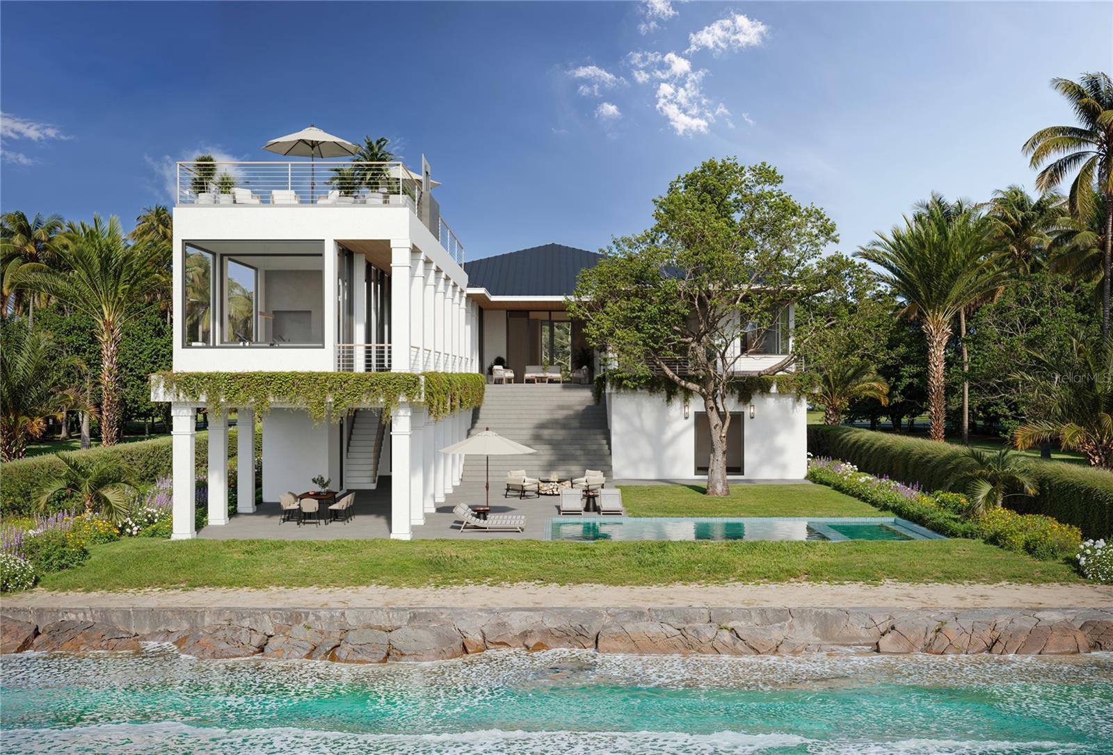 Pre-Construction. To be built. An unmatched LUXURY BEACH estate, this Gulf-front upcoming masterpiece offers sweeping ocean views and a private stretch of sand on Siesta Key. Currently in development for New Construction by Pham Development, the iconic Mid-Century Modern style residence is privately gated and designed to deliver resort-level living on one of Florida’s most coveted coastlines on the Gulf of America and Sarasota Bay. Spanning 14,543 sq. ft. under roof, with 6,301 sq. ft. of air-conditioned interiors, the home features 5 bedrooms, 6 full baths, and 1 half baths. Engineered for longevity, it rests on a fortified foundation with a riprap seawall installation, ensuring enduring protection for the estate, luxe pool with hot tub, and land. Lifestyle amenities rival the finest resorts: a rooftop with ocean views, and a full personal fitness center with yoga studio. Entertainment spaces abound with opportunity for a movie theater room, an ocean-view office, gun and jewelry safe room, and an up to 16-car enclosed garage. Paddleboard and kayak access lead directly to the Gulf, with options for a beach volleyball or pickleball court. The grand master suite has an expansive Gulf-facing terrace, his-and-hers walk-in closets, and spa-inspired baths. Multiple terraces, an outdoor kitchen, a chef’s kitchen, and butler’s pantry add to the all-inclusive luxury lifestyle of this home. More than a residence, this estate is a legacy home—crafted for generations, with an indoor-outdoor footprint tailored for both grand entertaining and intimate coastal living. Private showings are available upon request.