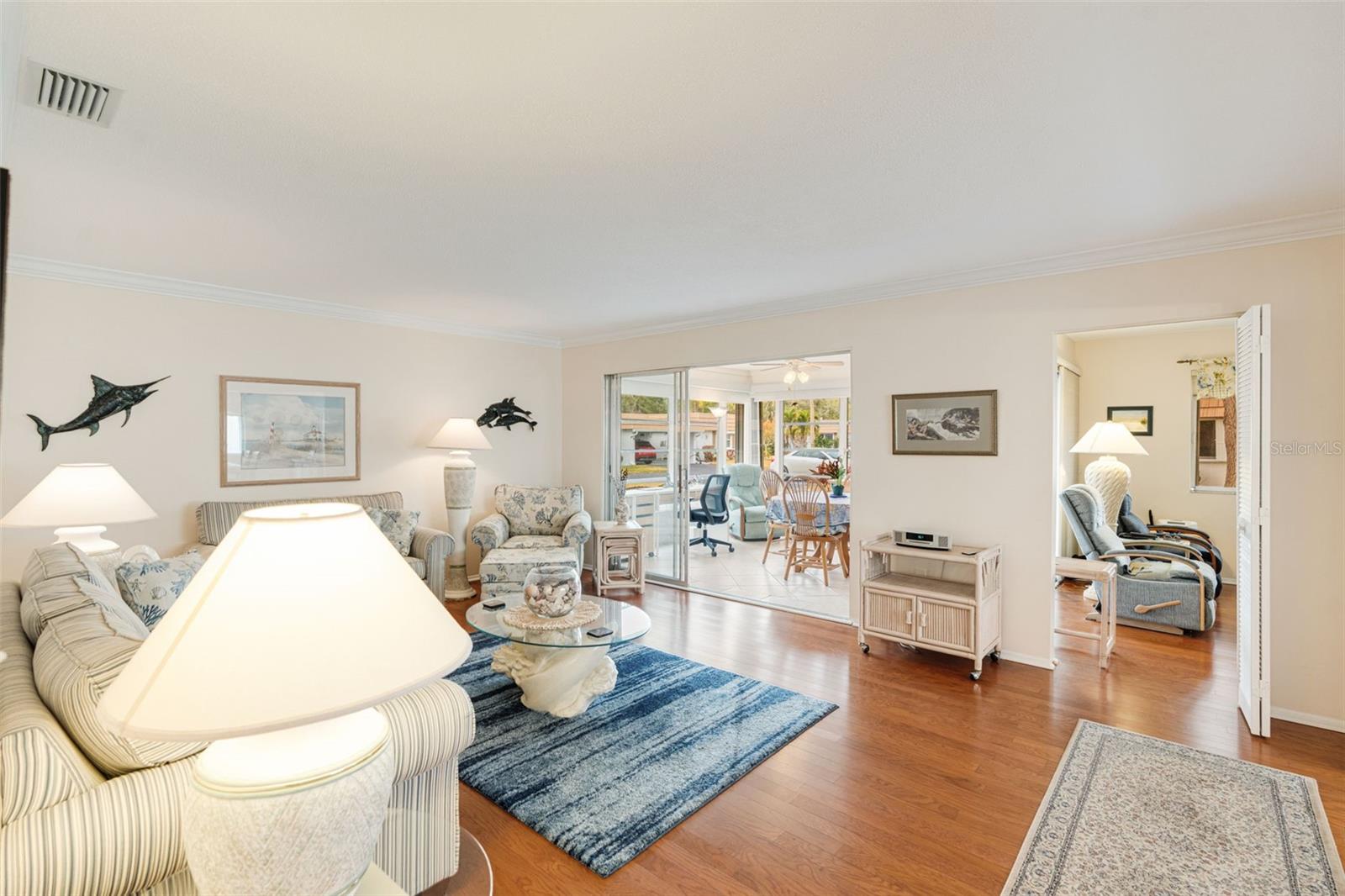 Mrs. Clean Lives Here! Absolutely Charming 2 bed/2bath end-unit Villa that should check every box on your villa wish list! Stunning kitchen that gently flows into dining room area (CHECK)! Dining room area opens into large living room with another large family room area creating LOTS of living space (CHECK)! A bonus room with the ability to make this your own game room, office space, or just your own oasis (CHECK)! Crown molding in living and dining room with gorgeous wood flooring (CHECK)! Separate storage for your convenience (CHECK)! Plenty of Guest parking and carport near your front door (CHECK)! Active Community with clubhouse facility, community Pool and marina (CHECK)! This is a stunning villa with an exceptional location, just minutes to Siesta Key, shopping and fine dining! If you are looking to live the Sarasota lifestyle come "CHECK" on this breathtaking villa TODAY!!