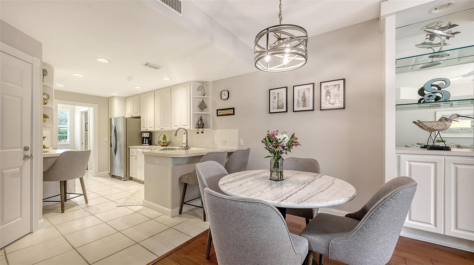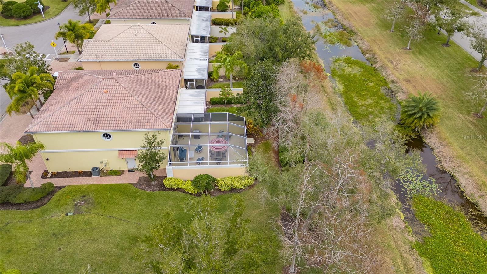 Fantastic Sun Rises as you sip your morning coffee from your large lanai (screen recently replaced) with waterview and retractable awning. Large side yard. Beautifully maintained home with engineered hard wood flooring in most of the home. Tile in wet areas. Large living area with built in wall unit for TV and your favorite Treasures. Newer appliances in kitchen and laundry, new large stainless sink in kitchen. Laundry and 1/2 bath conveniently located on the first floor. Hot Water heater replaced in 2021. Freshly painted throughout. Village Walk is a wonderful unique community, built hurricane safe with poured concrete walls and foundations. Every home in Village Walk is considered to be a Single Family Home, roofs are tied down to the structures, per the Florida Building Codes and considered to be above average. Inspectors, roofers and Insurance agents that are familiar with Village Walk will share this information with you. Village Walk is in Flood Zone X, an area that is determined to be outside the 1% and 0.2% chance of flooding. FEMA updated, 8/2/24. Flood Zone provided by Sarasota County Tax reports. Evacuation zone D, flood insurance is not mandatory, but flood insurance is available. Village Walk power lines are underground with a Sarasota Fire Department just down Honore. Seldom losing power. Amenities include 24 hour guarded gate, geo-thermal heated and cooled lap & lagoon pools, six Har-Tru Tennis courts, Pickle ball, Bocce' ball and Basketball courts, State of the Art fitness Center, Miles of walking and bike paths, over 500 acres of lakes and preserves. There are over 50 activity groups who meet daily, weekly, or monthly. Plus there is a full service Cafe with full service Bar, Gas Station, Barber shop/Hair Salon, and Gift Shop. A special NOTE is that Village Walk did not lose power during the hurricanes and there was No flooding. What a Fantastic Place to Call HOME!