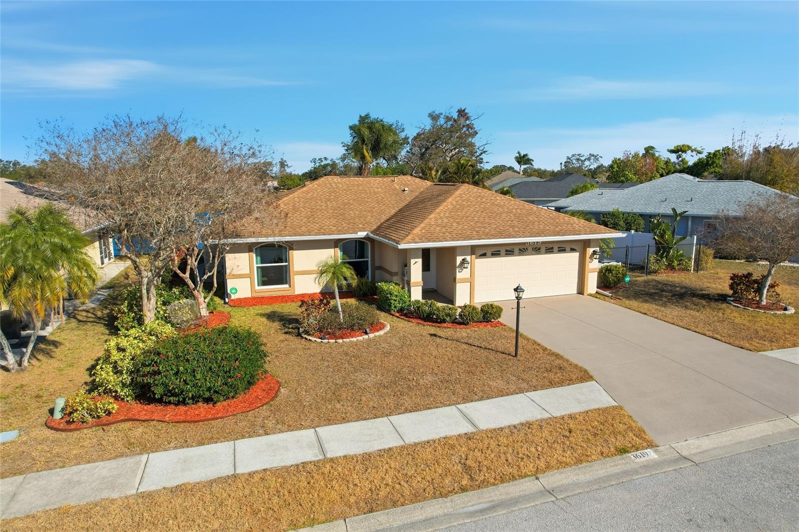 Welcome Home to your Stunning Pond-View Pool Home! This beautifully maintained 3-bedroom, 2-bath home with a 2-car garage, offers serene pond views and an exceptional Florida lifestyle. This property combines peace of mind, comfort, and resort-style outdoor living in a highly desirable Sarasota location. Inside, the open and functional split-bedroom floor plan is filled with natural light and designed for both everyday living and entertaining. The kitchen features wood cabinetry and granite countertops, providing timeless style and durability, with ample storage and workspace. The kitchen flows seamlessly into the main living and dining areas, all oriented to take advantage of the tranquil water views beyond. The primary suite serves as a cozy retreat, complete with an en-suite bath and walk-in closet. Two additional bedrooms provide flexibility for guests, family, or a home office. Significant recent upgrades add value and confidence for the next owner, including new hurricane-impact resistant door, windows, and sliding glass door, a new hot water heater (2024), and a WiFi-enabled thermostat with remote phone app control for modern convenience and energy efficiency. Feel safe with your installed monitored alarm system. Step outside to your private outdoor oasis. The heated pool is perfect for year-round enjoyment, while the new saltwater spa/hot tub (2024)—separate from the pool — offers a relaxing retreat under the open sky. All of this overlooks a peaceful pond, creating a rare and calming backdrop ideal for entertaining or unwinding at the end of the day. Additional highlights include a well-maintained interior and exterior, mature landscaping, and a location convenient to shopping, dining, schools, golf, entertainment and Sarasota’s and Anna Maria Island's world-famous sugar sand beaches. This home offers the perfect combination of scenic views, meaningful upgrades, and true Florida indoor-outdoor living. Schedule your private showing today!