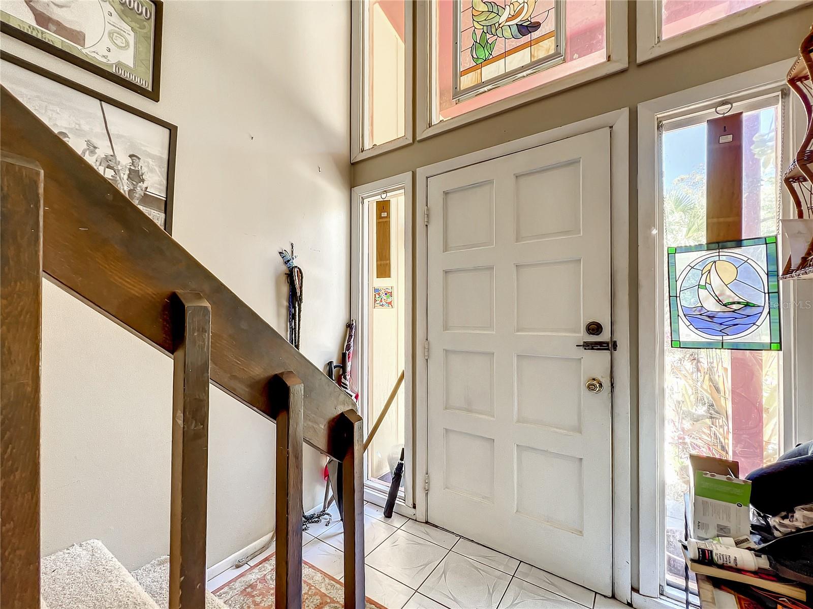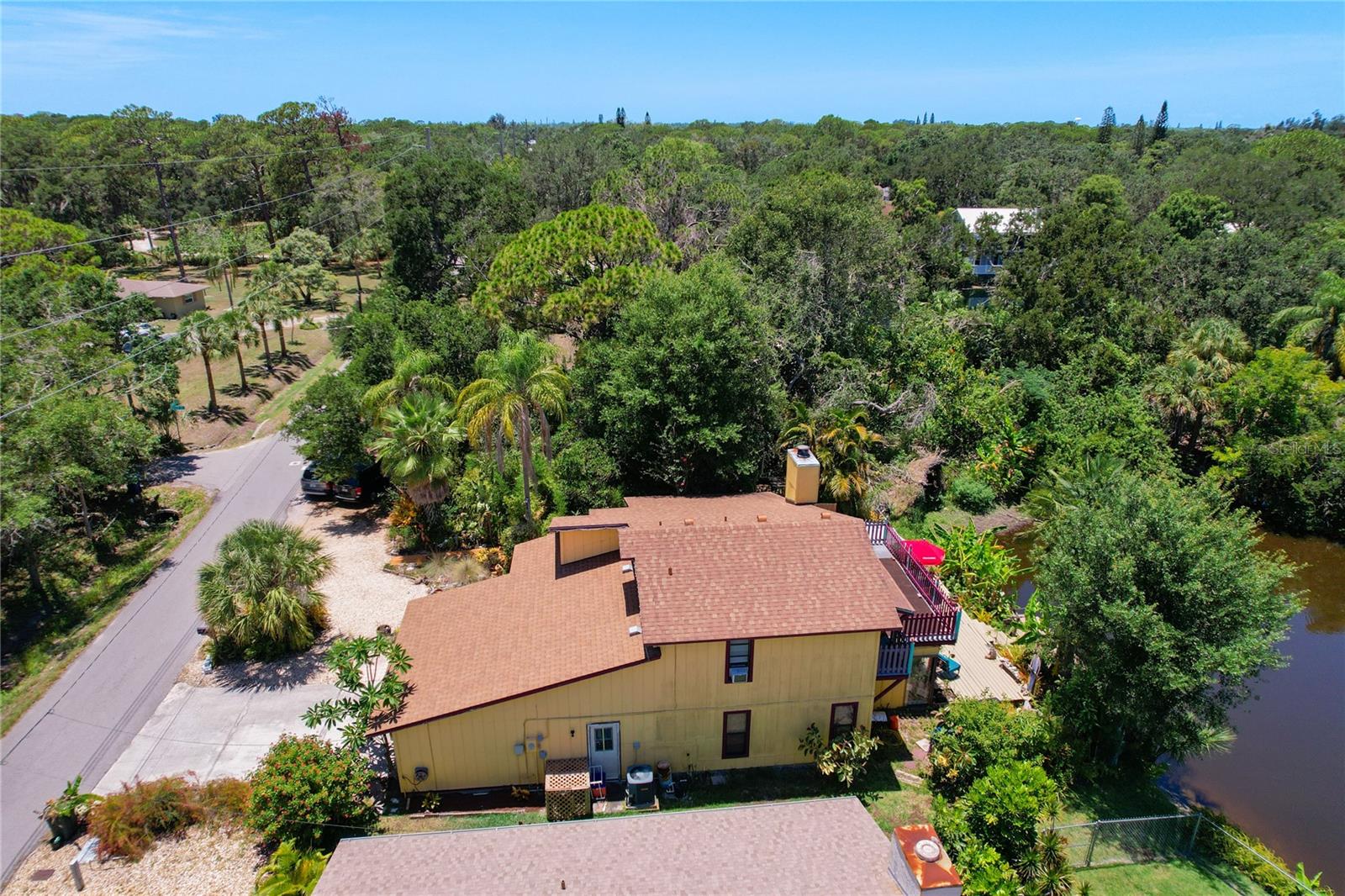 One or more photo(s) has been virtually staged. Outstanding Sarasota location for this truly unique lakefront home, complete with a small private dock. Nestled on a wooded, private lot, the setting offers a peaceful retreat that feels worlds away—yet is just minutes from everything Sarasota has to offer. Inside, generous living areas and soaring ceilings create an open, airy atmosphere ideal for both everyday living and entertaining. There is ample space for gatherings, along with a versatile bonus area perfect for a study, den, or gallery. The main-floor primary suite features a walk-in closet for added comfort and convenience. The two-car garage is currently configured as a one-car garage with additional flex space that could serve as a bedroom or office and can easily be converted back to a full two-car garage. Two spacious upstairs bedrooms share a conveniently located bathroom. A large enclosed, air-conditioned lanai with French doors opens to a serene back patio, offering tranquil lake views and abundant wildlife. This home radiates warmth and character, reflecting years of cherished family and friend gatherings. Located just one block from Bee Ridge Park, which offers basketball, volleyball, softball fields, and a shaded playground, and within a highly sought-after school district for elementary, middle, and high school. Sarasota Memorial Hospital is only three miles away, downtown Sarasota just five miles, and world-famous Siesta Key Beach approximately seven miles away—featuring exceptional dining, shopping, and cultural attractions. This property has never flooded and sits well above sea level. Most furnishings have been removed. Home is in process of being emptied. Can be sold as is or broom clean.