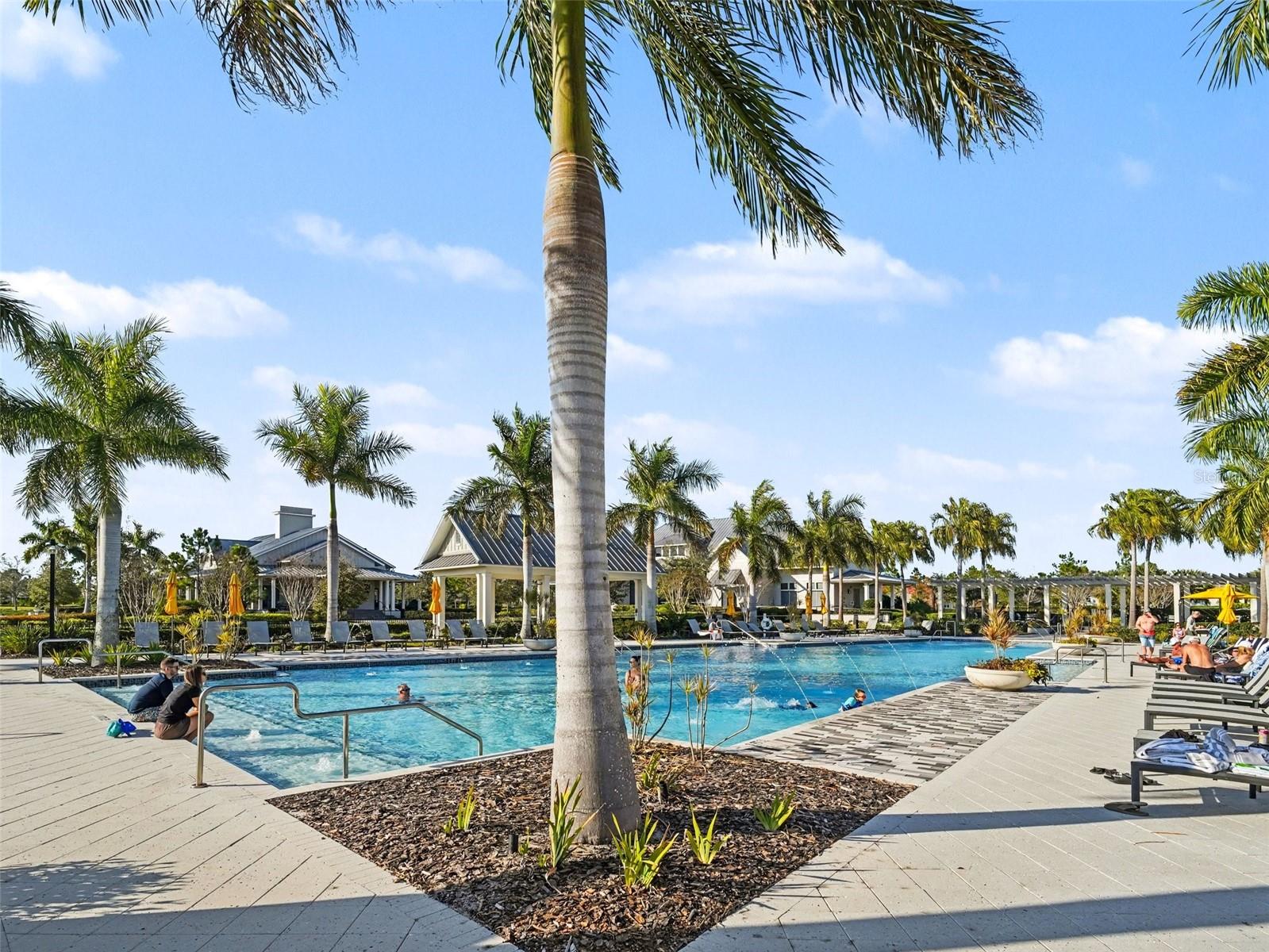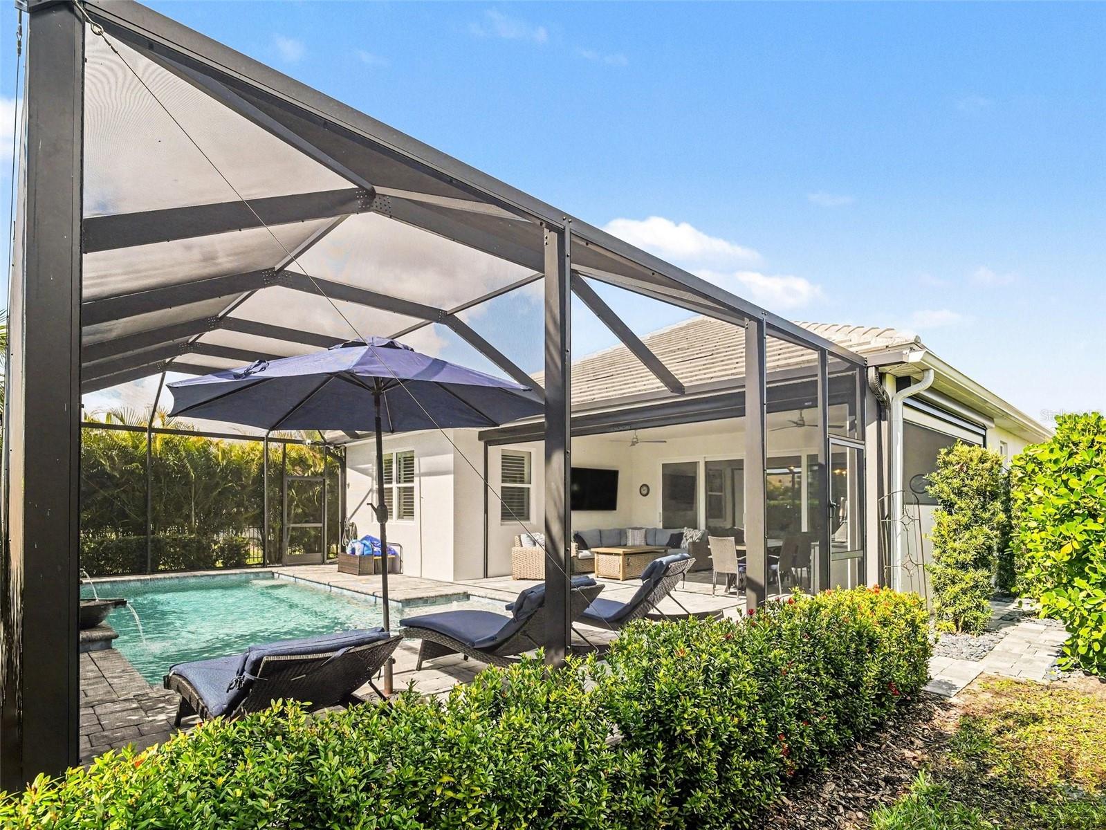 Light, breezy coastal charm meets thoughtful design in this beautifully EXPANDED Halyard model with BEAUTIFUL POOL in Lakehouse Cove at Waterside. Offering 3 bedrooms, 2 baths, PLUS a spacious den/office, this impeccably maintained home blends refined finishes with effortless Florida living. From the moment you arrive, the manicured landscaping, paver driveway, and inviting front porch create beautiful curb appeal and a polished coastal presence. Inside, natural light fills the open-concept layout. Beautiful TILE FLOORING runs throughout the entire home — no carpet anywhere — creating a seamless, low-maintenance living environment. Plantation shutters, tray ceilings, designer lighting, and ceiling fans complement the soft coastal palette and enhance the home’s light, airy feel. The open great room flows seamlessly into the dining area and gourmet kitchen, creating an ideal layout for both everyday living and entertaining. The GOURMET KITCHEN is both stylish and highly functional, featuring quartz countertops, a gas cooktop with exterior venting, wine refrigerator, and a large center island with seating. An EXPANDED COUNTER AND CABINETRY AREA provides exceptional additional storage and workspace — ideal for a coffee bar, serving station, or butler’s pantry setup — making entertaining effortless. The primary suite offers a peaceful retreat with a generous walk-in closet with custom organizers and a beautifully appointed bath featuring dual vanities and a spacious walk-in shower. Two additional guest bedrooms provide comfort and privacy (with pocket door separation), while the SPACIOUS DEN/OFFICE offers flexibility for working from home, hobbies, or additional guest space. Step outside to enjoy true Florida indoor-outdoor living. The covered lanai is equipped with REMOTE-CONTROLLED CATEGORY 5 HURRICANE SCREENS, allowing you to enclose and protect the space at the touch of a button. The OUTDOOR KITCHEN and bar area complete with a kegerator overlook the STUNNING POOL with two water features, creating a resort-inspired setting perfect for relaxing or entertaining. A PRIVATE OUTDOOR SHOWER adds convenience after a swim or day at the beach. Additional highlights include:REMOTE CONTROLLED SHADES at the front door and sliders, EXPANDED GARADE with additional width, WHOLE-HOUSE GENERATOR and security system for added peace of mind. This home offers clean coastal design, practical upgrades, and a bright, breezy atmosphere in one of Waterside’s most desirable communities. Residents of Lakehouse Cove enjoy a lakeside clubhouse, resort-style pool and spa, fitness center, pickleball courts, dog parks, INTERNET IS INCLUDED in HOA fee, scenic walking trails, and water taxi access to Waterside Place for dining, shopping, and community events — all just minutes from UTC, Lakewood Ranch Main Street, Sarasota Polo Club, and the Gulf beaches. Coastal. Refined. Effortless. A beautifully upgraded retreat designed for easy Florida living.