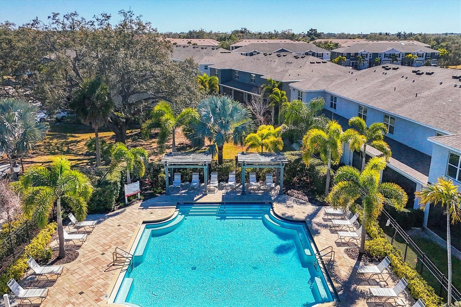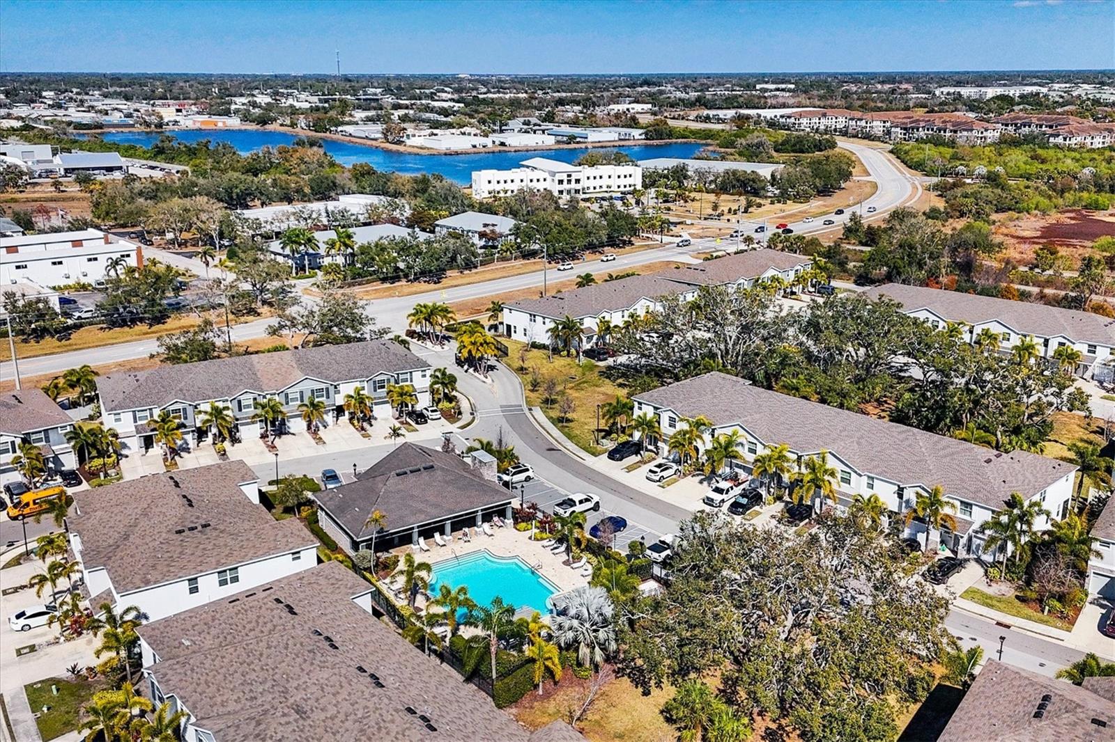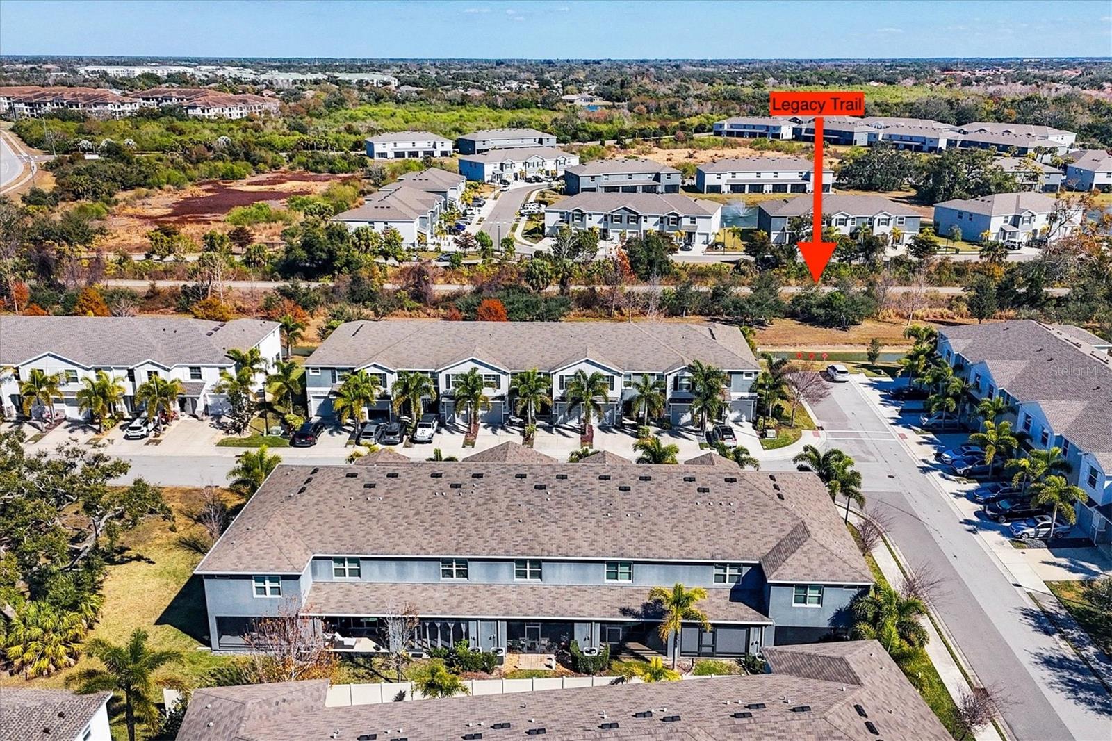 Welcome to 8651 Stargazer Street a move-in ready, open-concept townhome located in a pet-friendly gated community just steps from the Legacy Trail and only minutes from Siesta Key Beach and all that Sarasota has to offer. Located in Flood Zone X (low-risk) and upgraded with Renewal by Andersen hurricane windows for added peace of mind, this home blends comfort and convenience. As you arrive, you’ll appreciate the two-car driveway, one-car garage, and covered front porch entry. Inside, tile flooring spans the entire first floor, enhancing the bright and open layout. The kitchen is beautifully appointed with stainless steel appliances, granite countertops, wood cabinetry, a complimenting backsplash, pendant lighting, and a large walk-in pantry. The dining area includes a walk-in storage closet, while the spacious living room overlooks the screened lanai. This area being the perfect spot to enjoy your morning coffee or unwind in the evening. For your convenience a half bath completes the first level. Upstairs, brand-new carpet runs throughout the stairway and second floor (excluding wet areas and the primary suite). The primary bedroom features engineered hardwood flooring, two walk-in closets, and an ensuite bathroom with two sinks and a generously sized walk-in shower. The guest bathroom offers a relaxing soaking tub. All three bedrooms include ceiling fans, and the second-floor laundry closet is equipped with a side-by-side washer and dryer plus additional storage space. The one car garage provides a spot to keep your car out of the Florida sun and store your beach chairs and other Florida necessities. When it’s time to enjoy the community, take a short stroll to the resort-style pool and covered cabana area. The nearby Legacy Trail offers miles of scenic paths for walking, running, biking, or connecting with friends. Just minutes away from the community are shopping, dining, and everyday conveniences. The monthly HOA fee of $350 includes exterior ground maintenance, water and sewer, community amenities, and the security of gated access. No CDD fee. Owners may lease their properties on a 7-month minimum lease, and up to three pets are permitted per residence. Recommended builder improvements to the ledger board have been completed. Don’t miss this opportunity to own a move-in ready home in one of Sarasota’s most desirable and convenient locations. Schedule your showing today!