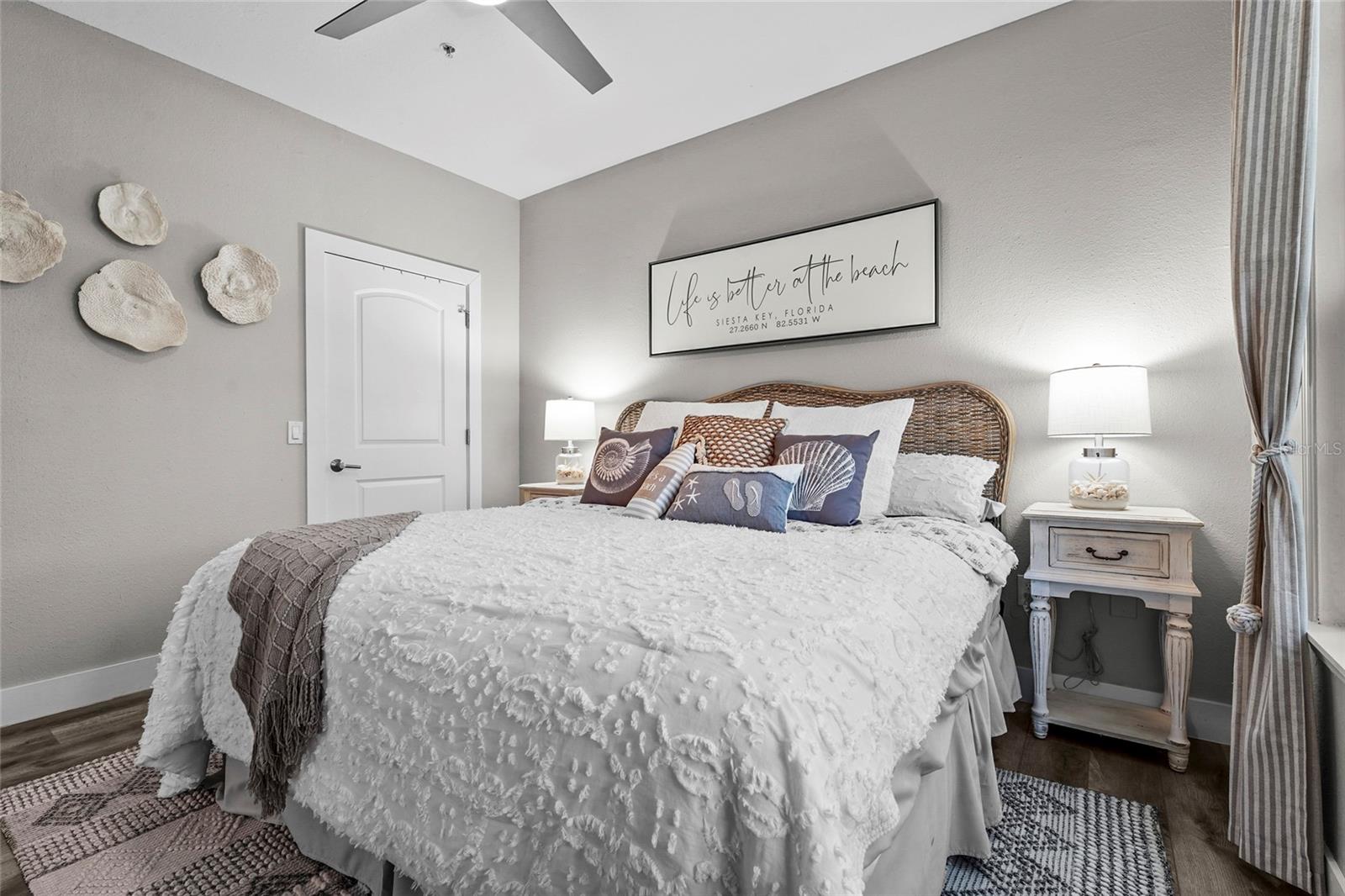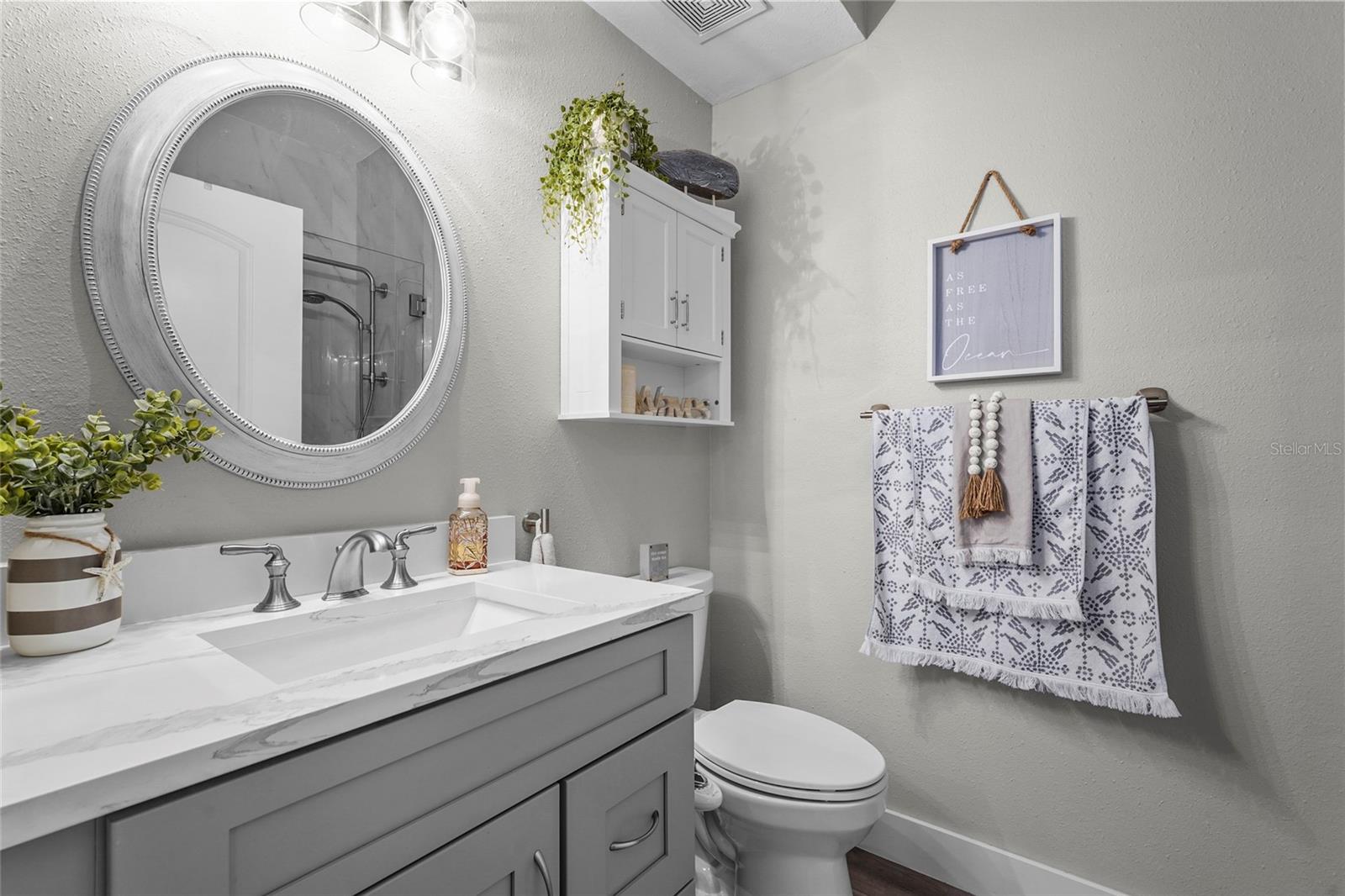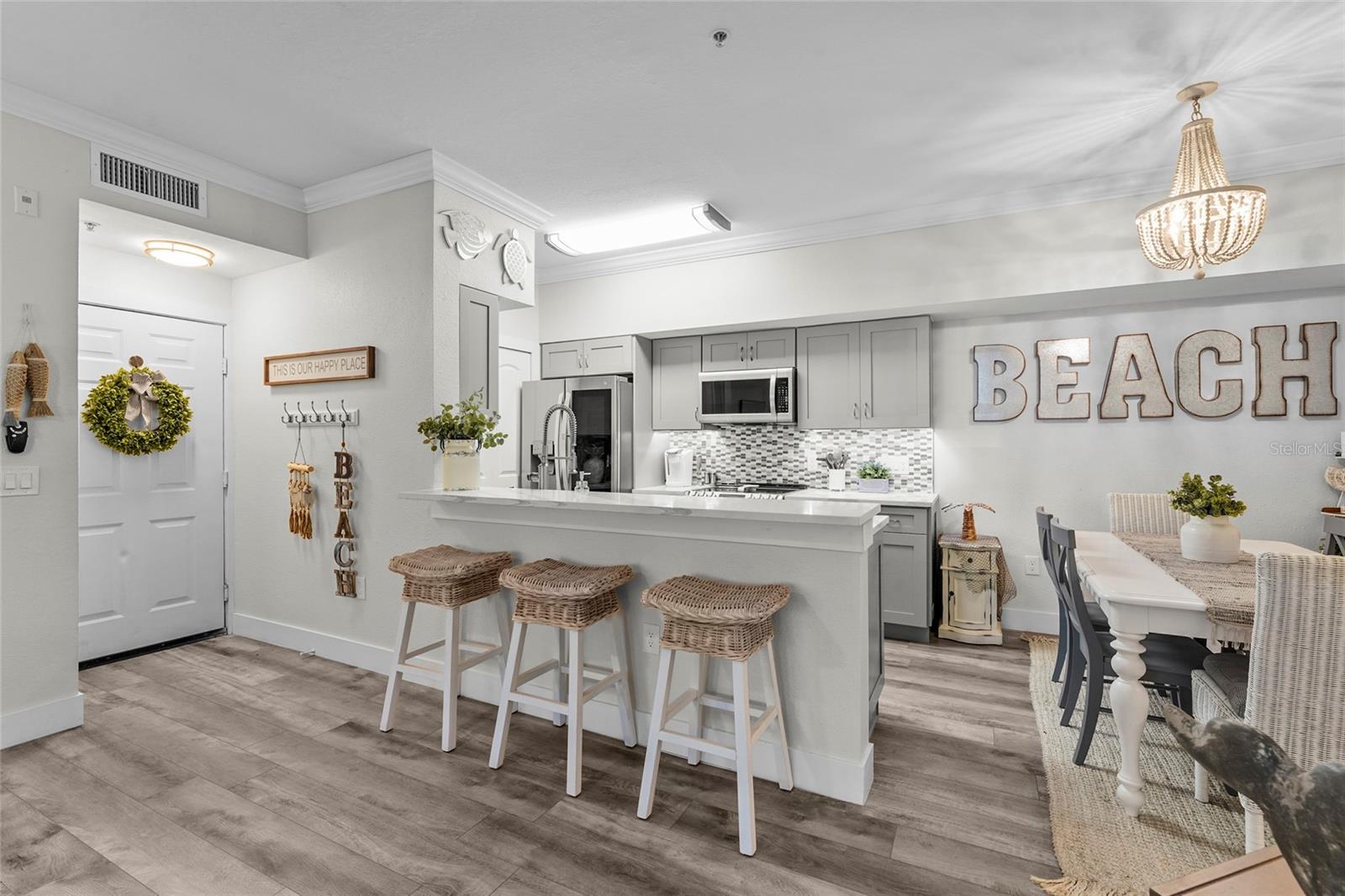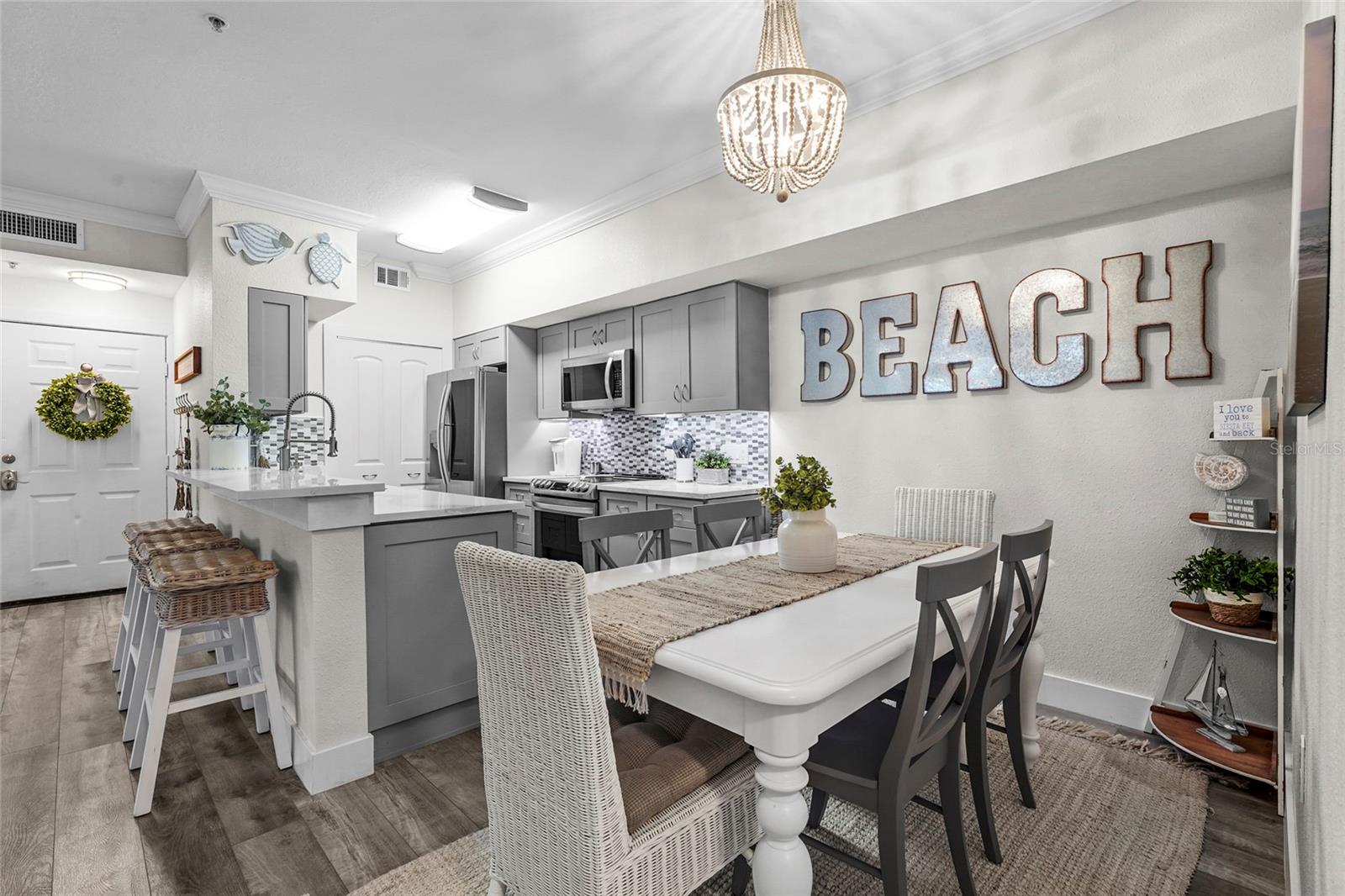 Welcome to Bella Villino at Palmer Ranch. This completely updated two-bedroom, two-bathroom condominium offered TURNKEY features gleaming quartz countertops and rich wood cabinetry with soft-close precision to the luxury vinyl flooring that flows seamlessly throughout. Newer stainless steel appliances, while both bathrooms showcase stunning marble-tiled showers. The primary suite's ensuite bathroom features a built-in wireless Bluetooth speaker. A brand-new air conditioning system and hot water heater installed in 2025. Theis unit includes a one car garage AND a covered assigned parking space. Amenities offer a pool and spa, racquetball and tennis courts, a clubhouse complete with billiards and a business center. Picnic areas, gas grills, and dedicated dog-walking stations round out this extraordinary community, all maintained by an attentive onsite management team. The location is nothing short of extraordinary. Stroll to nearby Potter Park, grab essentials at the neighboring supermarket, or venture minutes away to the legendary shores of Siesta Key. With convenient access to the Legacy Trail, downtown Sarasota's cultural treasures, and major thoroughfares.
