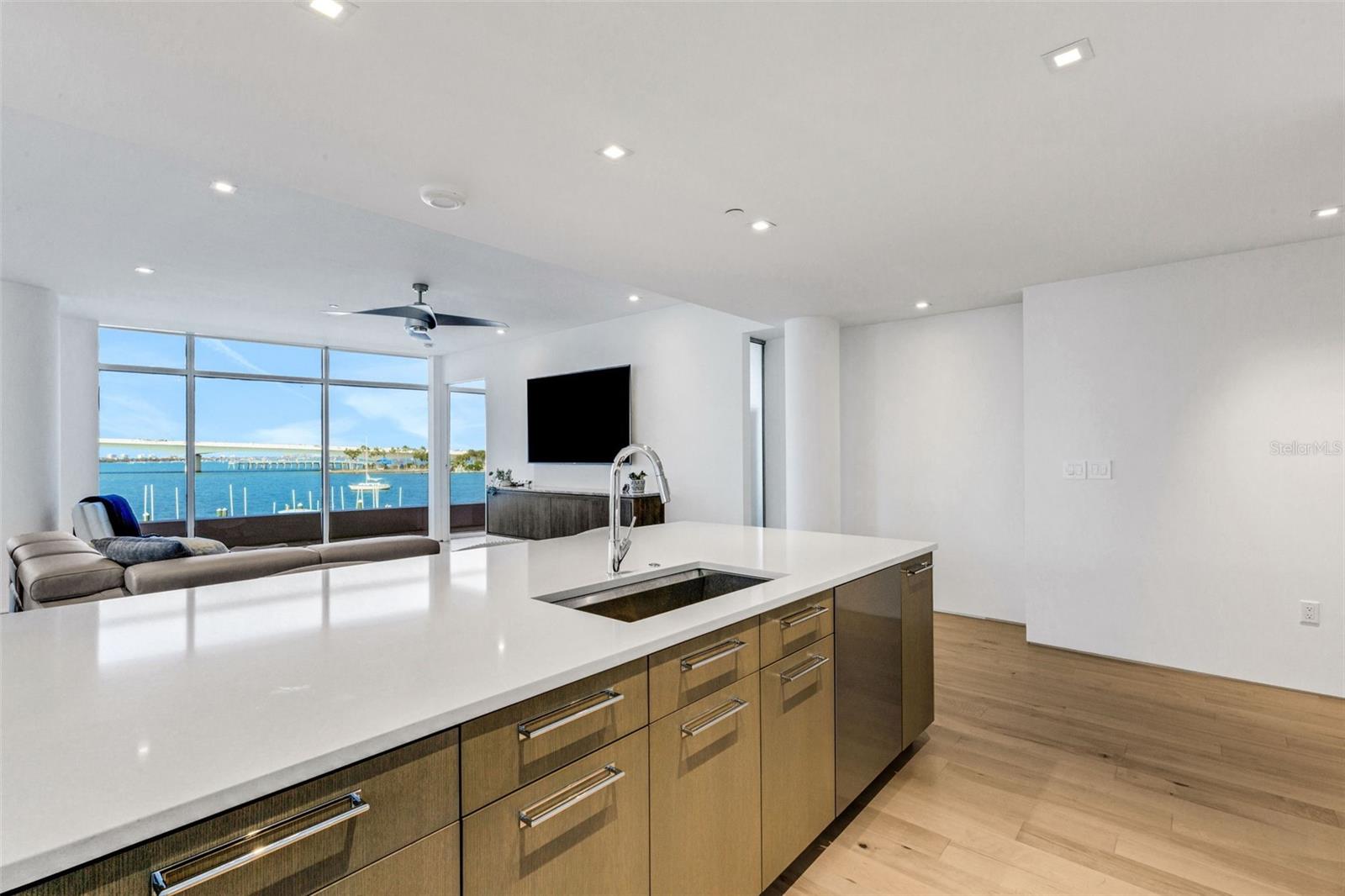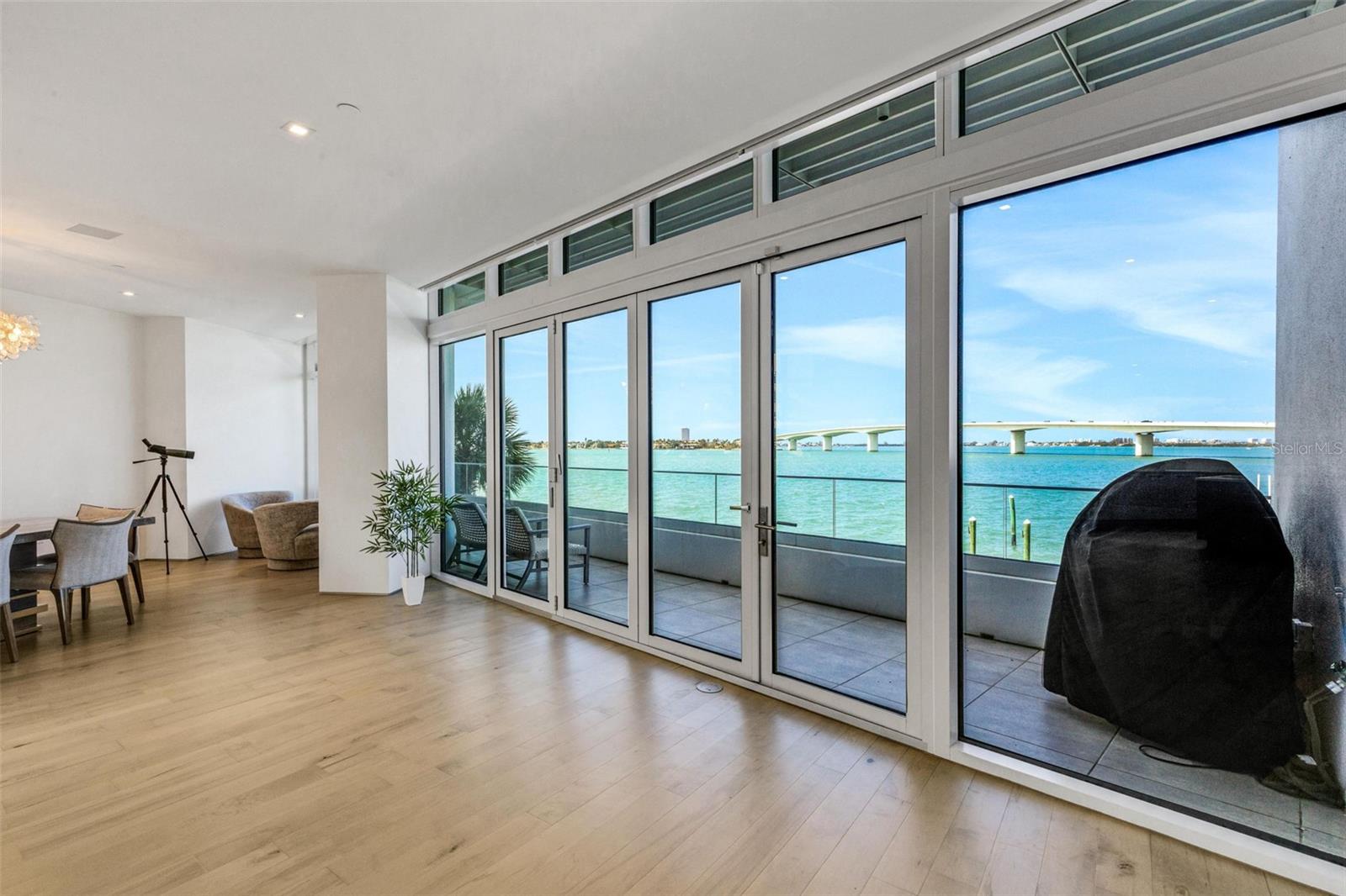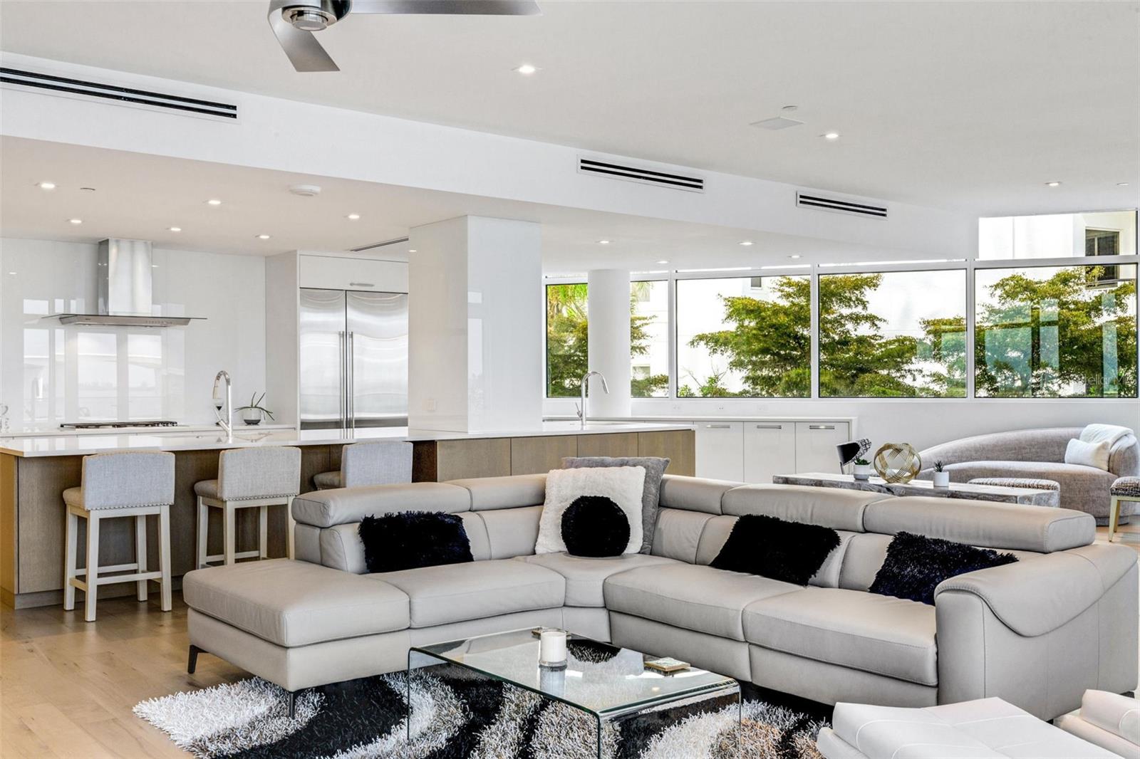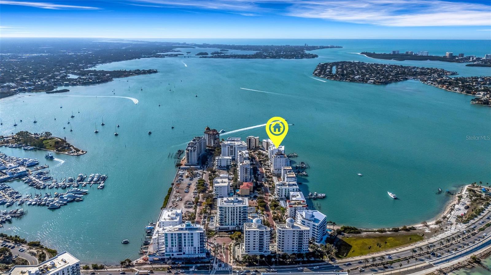 AQUA — an ultra-exclusive boutique waterfront building of just seven residences — offers one of the most coveted luxury living opportunities in downtown Sarasota. Designed by renowned architect Guy Peterson, this exceptional 3,590 sq ft second-floor residence showcases unobstructed Sarasota Bay views and includes a private boat dock with 16,000 lb lift. Private elevator entry opens to expansive living spaces framed by a dramatic wall of windows and impact-rated accordion glass doors leading to a spacious waterfront terrace with natural gas for grilling. The chef’s kitchen features abundant storage, a large dual-sink island, natural gas range, and premium Wolf, Sub-Zero, and Miele appliances. The luxurious primary suite offers floor-to-ceiling water views, custom closet, and spa-inspired bath with soaking tub. Two additional en-suite bedrooms provide generous space and privacy. Owners enjoy gated entry, a private 2-car garage, concierge-staffed lobby, and an impressive collection of amenities including fitness center, yoga room, sauna, wine storage, executive meeting space, and a stunning rooftop terrace with panoramic bay, gulf, and skyline views. Ideally located on Golden Gate Point, just moments from downtown dining, arts, and marinas while offering a quiet residential setting.