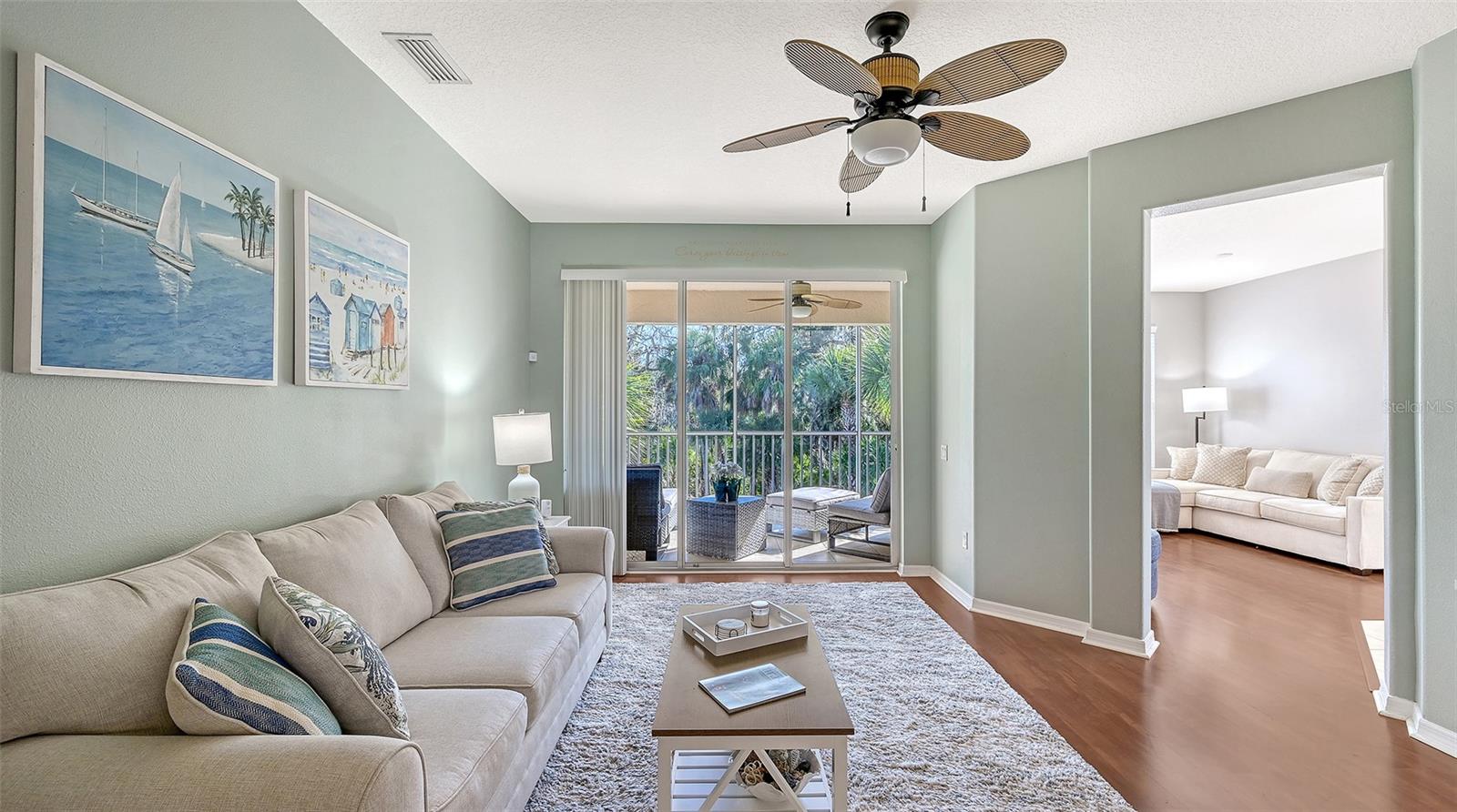 Located in the highly desirable Palmer Ranch area and less than five miles to the world-famous beaches of Siesta Key, this spacious 3BR/2BA second-floor condo offers 2,045 sq ft and the largest floorplan in Arielle with peaceful southern preserve views from the screened lanai, living room, and gathering room. A private two-car garage with extra storage and interior staircase entry (plus convenient side entrance for guests) welcomes you into an open, light-filled layout featuring dual living areas, formal dining space, and a well-designed kitchen with ample cabinetry, counter space, café dining area, and adjoining gathering room. The generous primary suite includes a soaking tub, separate shower, dual vanities, private water closet, and dual walk-in closets, while the second suite offers a charming window bench seat and private access to a full bath; the third bedroom with double doors and closet functions beautifully as a study or flex space. Main living areas feature laminate flooring, bedrooms offer newer plush carpet, and tile accents the baths, entry, kitchen, and café area. Recent updates include AC (2018), washer, dryer, refrigerator, range, dishwasher, microwave, stainless steel kitchen sink, entry light fixture, all faucets and plumbing fixtures throughout, and updated door hardware, knobs, locks, and hinges. Arielle is a gated community with paver driveways and sidewalks, heated pool, gas grills, cable TV, and central mailboxes, with water and basic cable included in the HOA; the community pool is just a short walk away, and residents enjoy easy access to shopping, dining, YMCA, I-75, and the Legacy Trail’s miles of biking and walking paths. Furnished and ready for immediate occupancy!