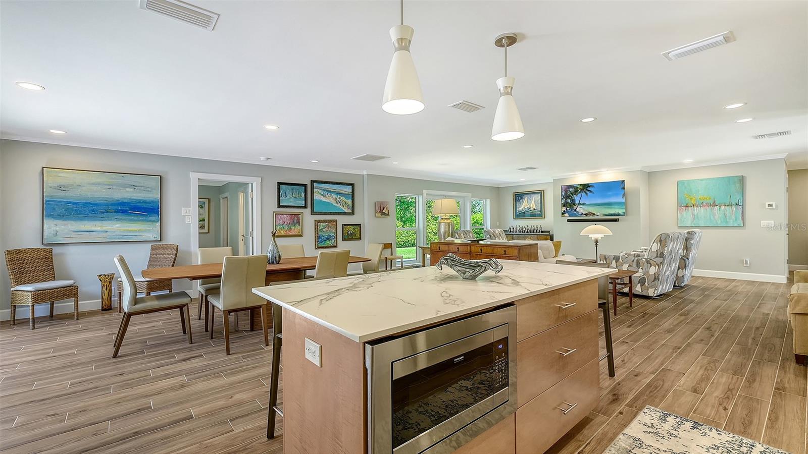 Positioned in highly desirable Oyster Bay Estates in the West of Trail area, this beautifully rebuilt 4-bedroom, 3.5-bath home sits on a high-and-dry spacious 1/3-acre lot in flood zone X where no flood insurance is required. Completely gutted and rebuilt from the studs in 2021 this residence is like new. The property includes a newly-built 484 sq ft detached guest house/ADU with private entrance. Lush, mature landscaping provides privacy and curb appeal to this lovely home. Relaxing Florida living is ensured with a covered luxury outdoor living space including an outdoor kitchen with grill, cooktop, refrigerator and sink ideal for entertaining and family life. Also part of the outdoor living space is the inviting heated saltwater pool and spa with travertine tile deck and new pool cage. The new open-concept kitchen boasts Dekton countertops, a light-wood island with built-in drawers, a gas range and closet pantry. All the bedrooms include ensuite bathrooms. The primary suite offers a custom walk-in closet and spa-style bath with dual vanities, quartz countertops, large walk-in shower, and Toto water closet. The A/C system was replaced in 2025 and provides individual thermostats in each bedroom for comfort. Other new features include wood-look tile flooring throughout, impact windows and doors, new roof, replaced PVC plumbing drains, updated electrical with new panel, sprayed insulation, smooth finished walls & ceilings, tankless water heater, natural gas hookup, new well and irrigation system, and $100,000 in upgraded landscaping. The oversized 2-car garage features epoxy flooring and an impact garage door. Surveillance cameras and security lighting is included for your well-being. Set back from the road, this home offers a quiet and private ambiance. Residents in Oyster Bay enjoy walking their dogs through the lovely treed neighborhood, biking to tennis, dining & the marina at the Field Club, and kids play or ride to Red Rock Park down the street. The home is in an excellent location just minutes to Siesta Key and downtown Sarasota, and walking distance to schools, Trader Joe’s, Publix, restaurants, and cafes. This is a fabulous opportunity!