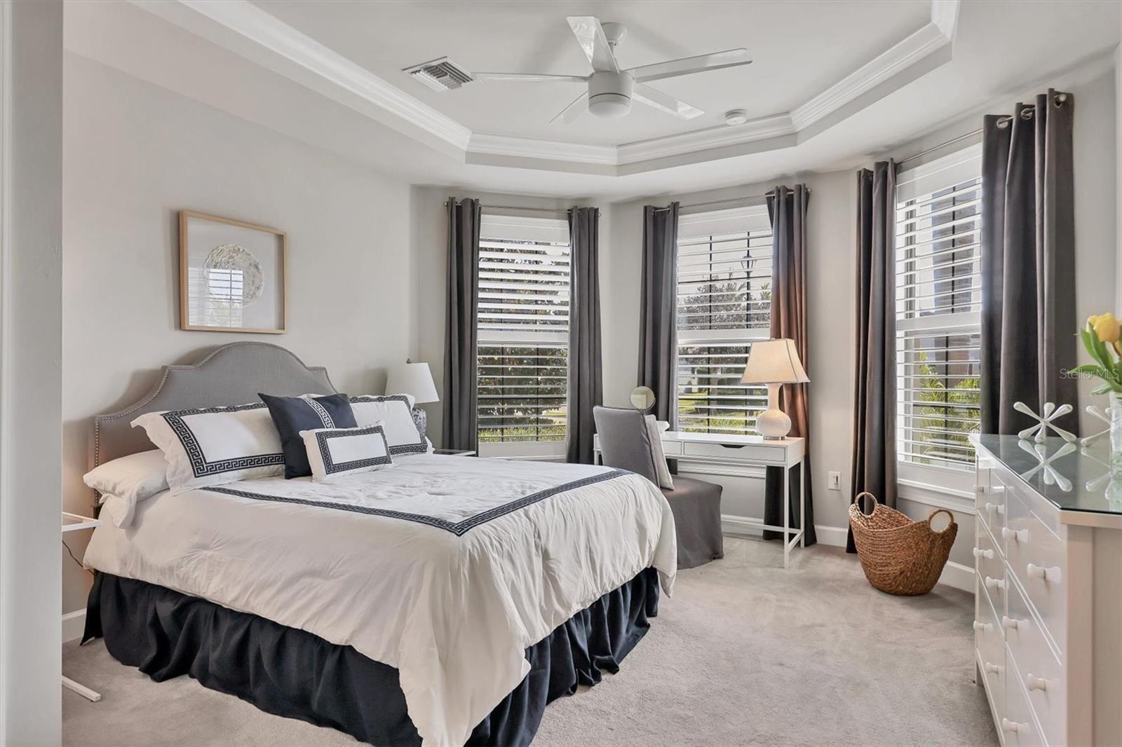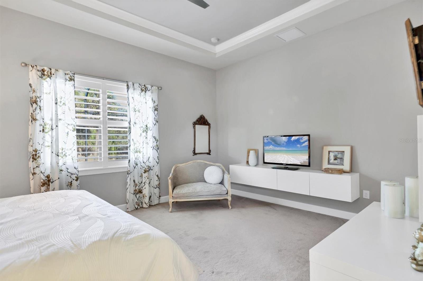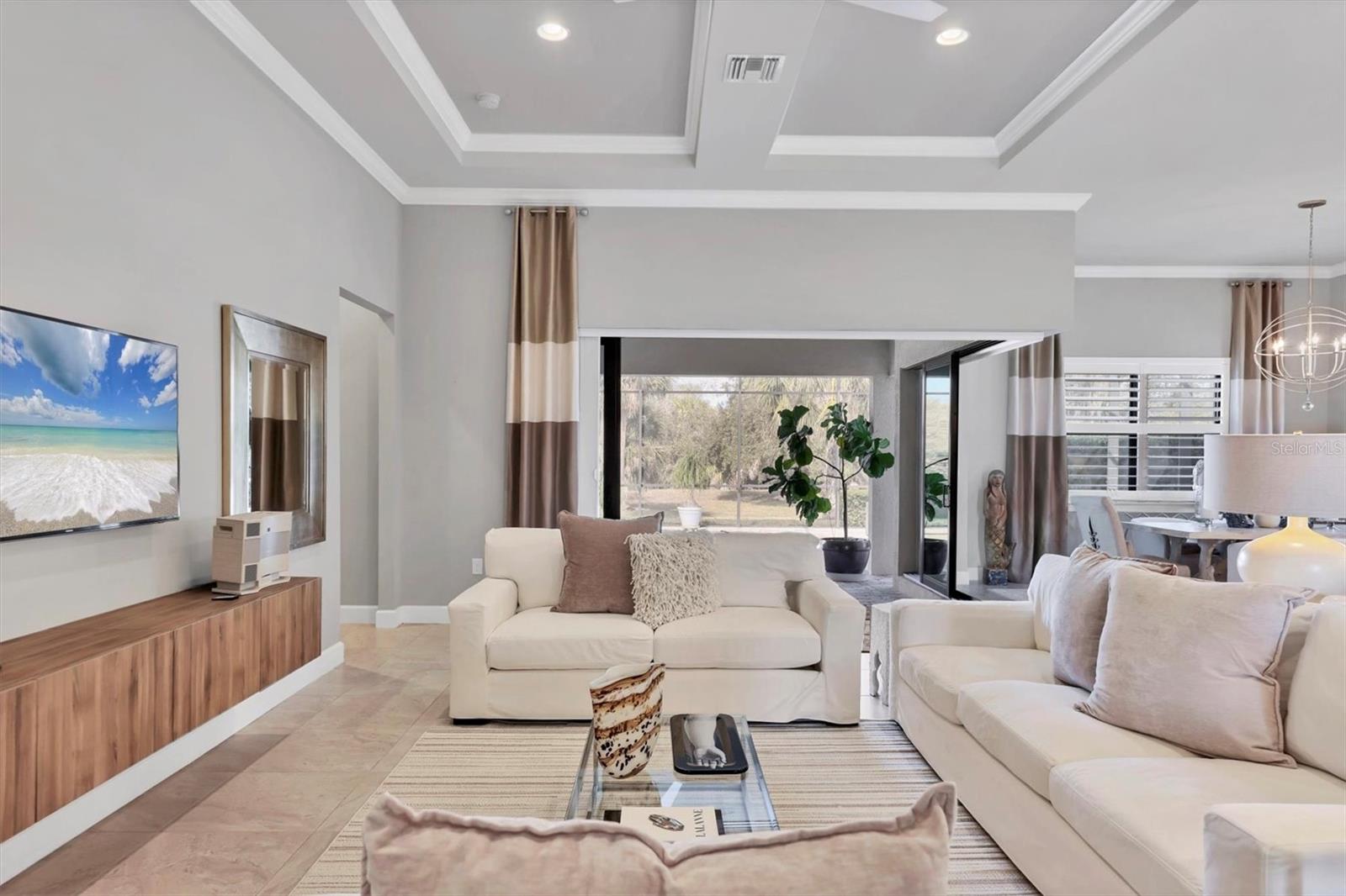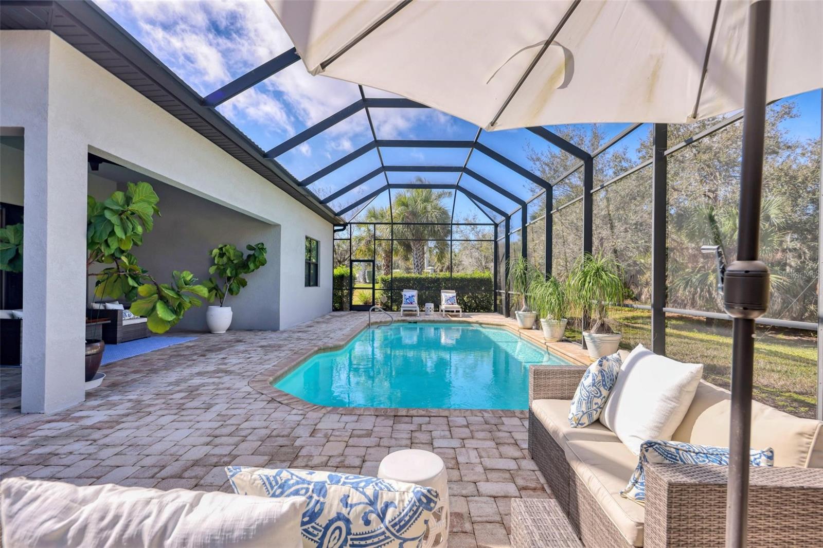 On a premium cul-de-sac lot, next to a large open lot of greenspace, this upgraded Pinnacle shows true pride of ownership! Loaded with features including zero-corner glass sliders, hurricane impact windows, high ceilings, crown moldings, tray and coffered ceilings, bump-out bay window, plantation shutters, custom California Closet built-ins and more. The gourmet kitchen with a natural gas cooktop has an oversized quartz island and stainless steel KitchenAid appliances. Elegant exterior living space with a totally private custom pool is enclosed in an oversized screen cage with expansive dining and sunbathing spaces. An extended three-car garage could accommodate all your toys. Hammock Preserve sits on 80 acres of beautiful land in Palmer Ranch. Residents enjoy an active lifestyle in the expansive Clubhouse with a Community Room for scheduled events, Library and Meeting Rooms, Fitness Center, Catering Kitchen and Bahama Bar, Heated Lap Pool and Spa, Fire Pit and 2 Poolside Grills. The furry members of your family will love meeting friends at the Dog Park; you’ll make your own friends playing Bocce, Tennis or Pickle Ball!