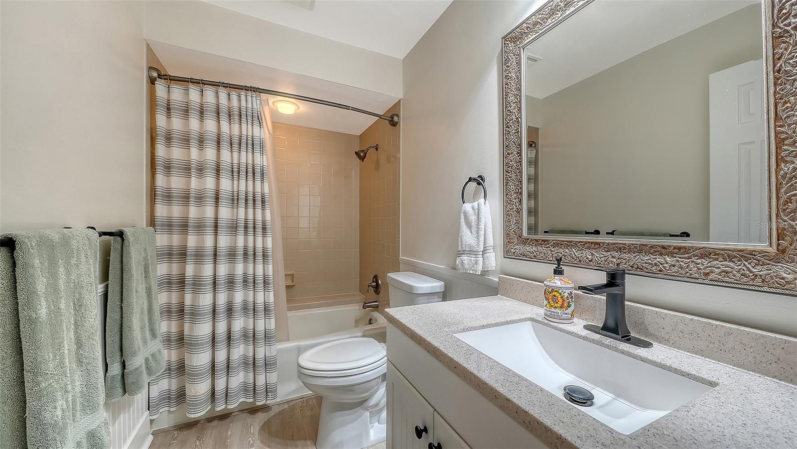 This exceptional home delivers the perfect blend of space, style, and comfort. Thoughtfully updated throughout with over $90K in quality improvements, this villa offers a surprising sense of space, comfort, and flow far beyond expectations. Located in the intimate and quiet enclave of Center Gate Village VI, a charming community of just 24 homes, residents enjoy a shared greenspace and sparkling community pool in a peaceful setting. Completely Move-in Ready, the remodeled chef’s kitchen is truly the heart of the home, featuring abundant cabinetry, additional built-in storage, a walk-in pantry, and a spacious breakfast bar perfect for casual dining and entertaining. Whether hosting friends or enjoying a quiet morning coffee, this kitchen was designed for both function and gathering. Major Improvements include, Remodeled Master Bathroom, a NEW ROOF (2022), HVAC (2016), Water Heater (2017), Hurricane Windows (2017), and New French Doors that enhance natural light and seamless indoor-outdoor living from the lanai. Freshly painted throughout, the home is enhanced by luxury vinyl flooring that brings warmth, durability, and a seamless modern finish to every space. Additional highlights include a spacious garage with a full wall of custom storage cabinets and a built-in workbench, ideal for hobbies, organization, and extra storage. Location is hard to beat. Just minutes to I-75, downtown Lakewood Ranch, downtown Sarasota, and the world-renowned Gulf beaches, UTC Mall and the Sarasota Airport. This home offers convenience paired with an exceptional lifestyle. If you are seeking, Low-maintenance living. Thoughtful renovations. A peaceful setting. This is more than a Villa, it's a home that feels right the moment you walk in.