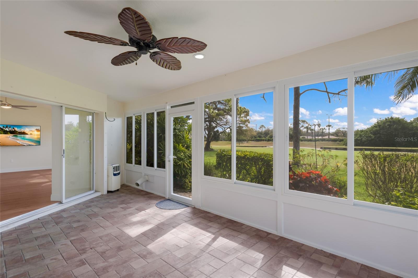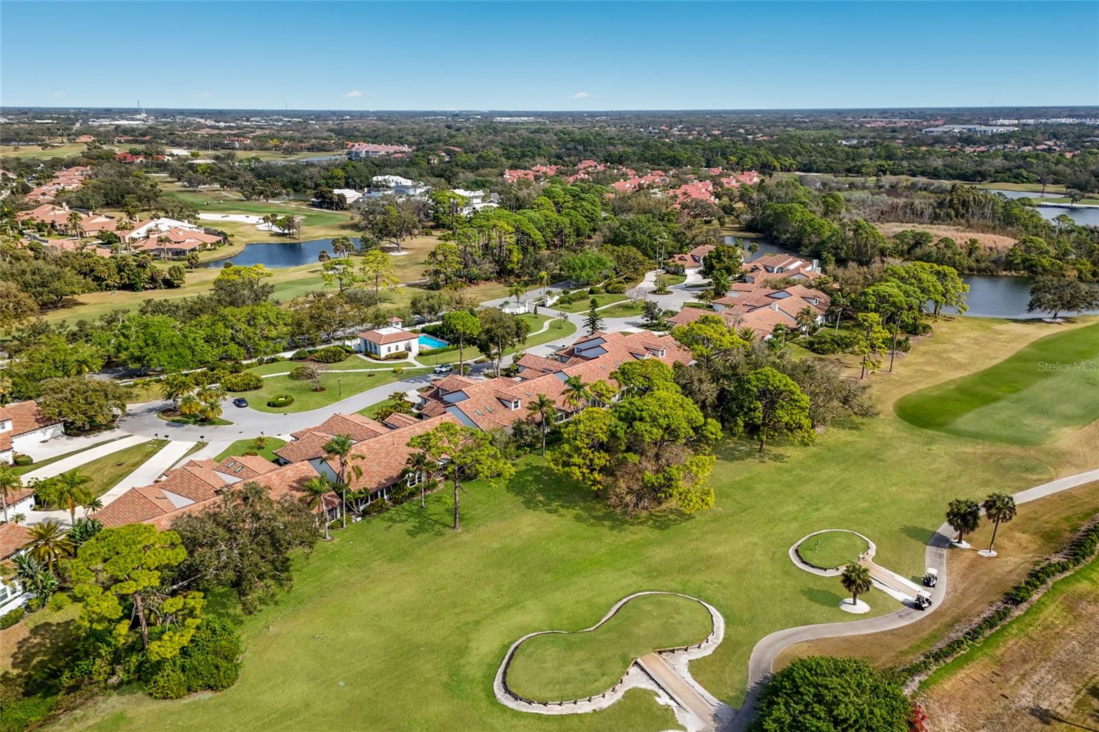Nestled in the sought-after gated community of Prestancia at Villa Palmeras, this Mediterranean-style villa offers over 2,400 square feet of living space, complete with a courtyard entry, cathedral ceilings, and golf course views. This 2-bedroom, 2-bath plus den and Florida room home, with a 2-car garage, showcases a spacious kitchen with Corian counters, pantries, and ample storage. New frigerator, stove, dishwasher and microwave (2024). The master suite features bay windows, oversized walk-in closets, and an updated master bathroom. The home also boasts updated floors. Enjoy two community pools and maintenance-free living with a beautiful barrel tile roof, a new AC (2024), and repiping. Prestancia boasts two championship golf courses (TPC Stadium Course) with optional membership. HOA fees cover dwelling insurance, basic cable, security, pest control, exterior maintenance, roof, landscaping, and reserves. Experience the best of Palmer Ranch living!