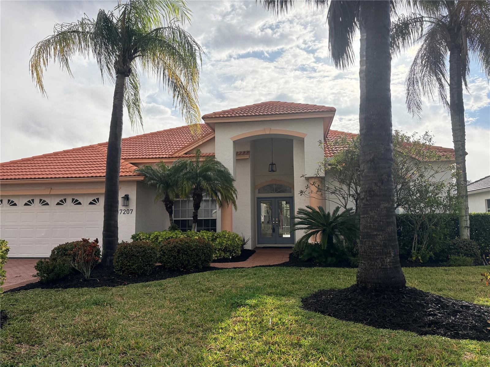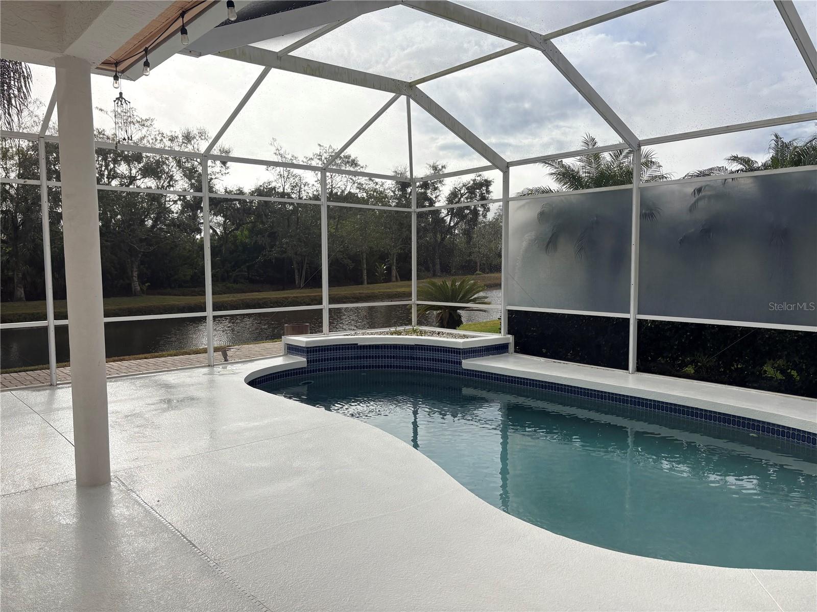 Nicely updated, open plan pool home located in the beautiful, deed restricted neighborhood of "The Trails". This home features real hardwood & ceramic tile floors, recently updated baths, newer appliances, ceiling storage racks in "OVERSIZED GARAGE" and cozy fireplace. Bonus room in front can be used as home office or "4TH BEDROOM" (has wood murphy bed in room). The back yard features a pond view backed with trees so plenty of privacy. The pool area features a paver wrap around deck to fish off of and plenty of roofed area for furniture. The front area features an oversized paver driveway and a professionally landscaped yard. "The Trails" amenities include paver sidewalks everywhere, a community pool, tennis court/pickleball court overlooking a large lake, common area maintenance and all this with very "LOW HOA FEES". HVAC replaced in 2020, hot water heater replaced 2025, baths & kitchen updated 2024.