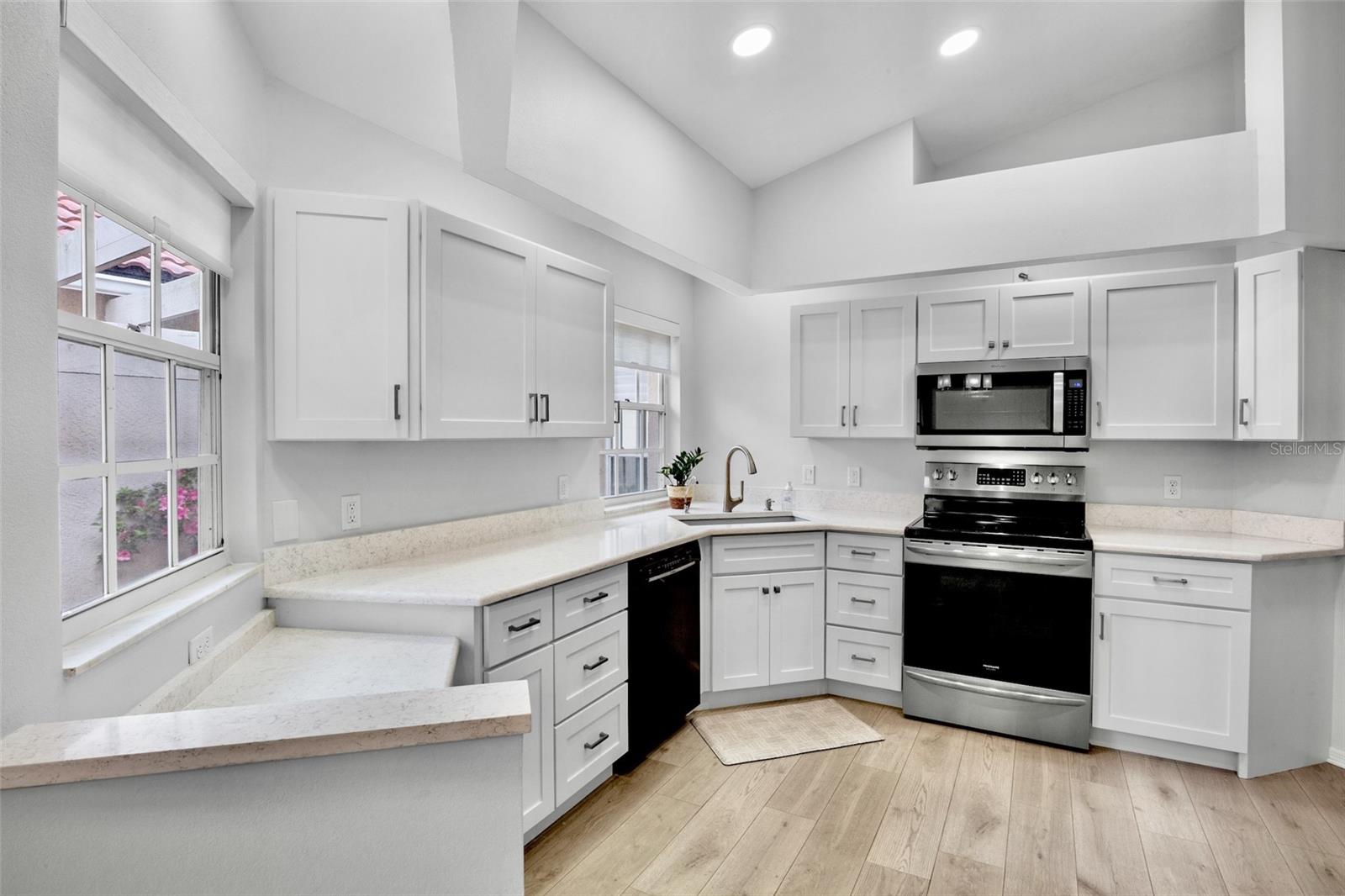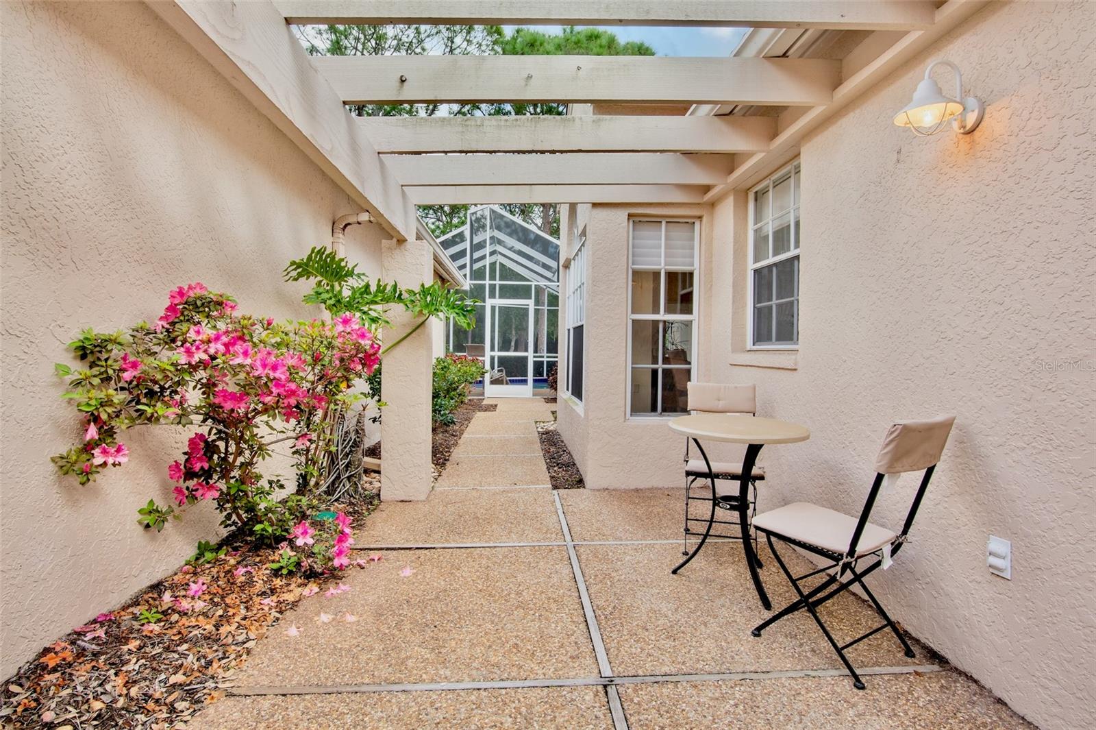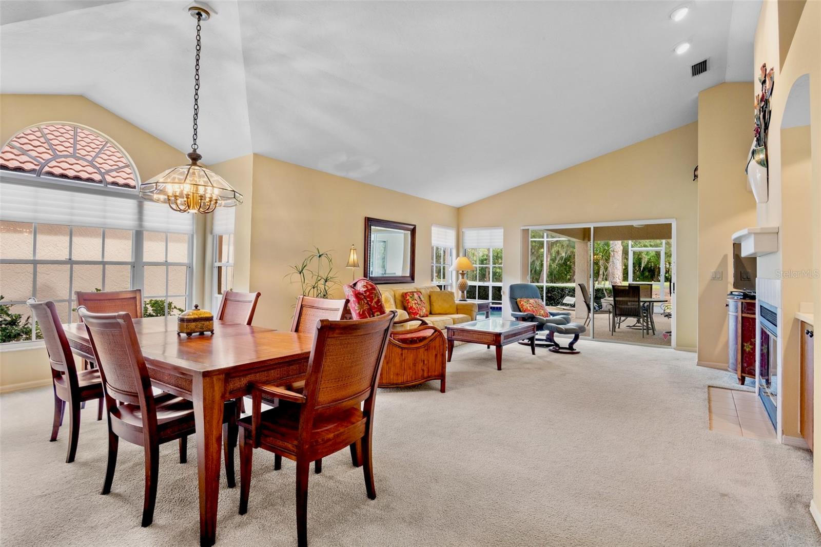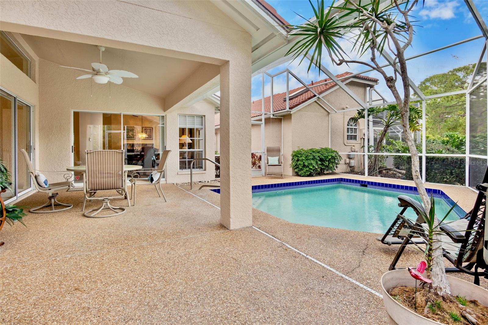 Easy living with a golf course view. This residence boasts vaulted ceilings and a spacious floor plan. Enjoy your morning coffee in the updated kitchen. Gleaming stainless appliances, quartz countertops and numerous cabinets make this a highly functional space. Just off the kitchen is a private patio with bistro set. The restful owners suite looks out to the pool and has an expansive ensuite that includes a large walk in closet , a soaking tub and an updated standing shower. The additional bedrooms provide ample space for your family and guests. The open living and dining room looks out onto the private pool and golf course. Enjoy the afternoon in your own pool after a day at the beach. Lyndhurst association maintains the grounds and building exterior including the tile roof that was installed in 2012. This home has great storage options including a two car garage with room for your bicycles and beach toys.The Meadows is a resort lifestyle in the best location in Sarasota. Get out in the sunshine and enjoy 1,650 park-like acres which includes 14 miles of walking and biking trails. Meadow residents Renaissance Access Plan which offers access to The Meadows Country Club facilities which include: Fitness, Jr. Olympic Pool, Dining, Community Sponsored Events, Pickleball, Tennis. Conveniently located to downtown Sarasota, award-winning beaches, arts and culture, Benderson Park recreation lake, MoteSEA Aquarium, the future Sarasota Orchestra. The Mall at UTC with extensive shopping and dining options is minutes away. This home comes furnished and move in ready.