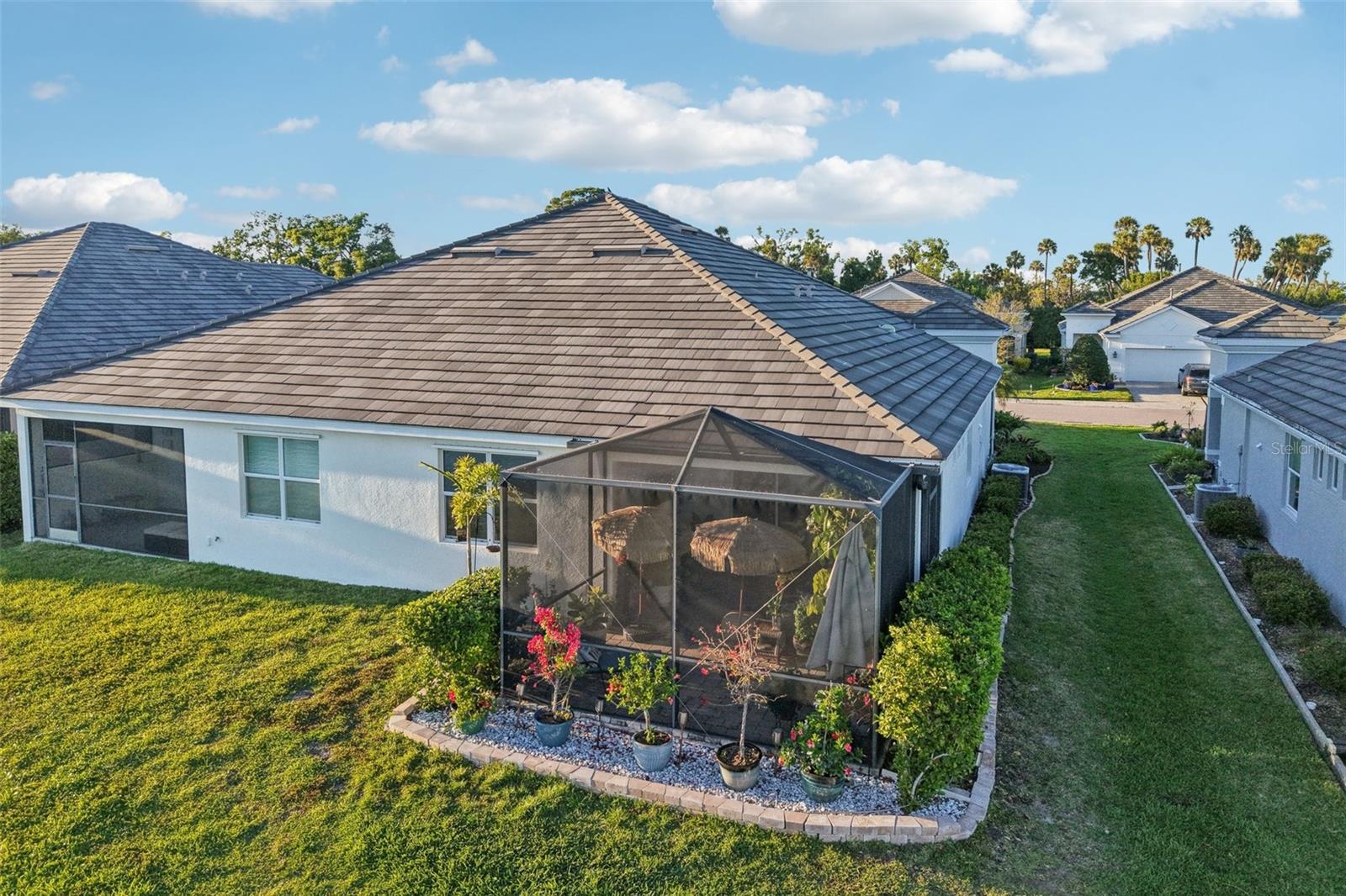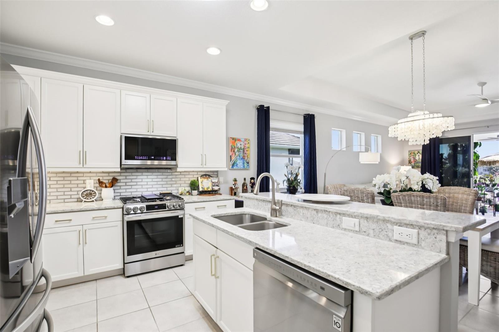 Experience "just another day in paradise" in this stunning Medallion Home, situated on one of the development’s most coveted PREMIUM lots—a $60,000 upgrade that ensures a level of privacy and scenic beauty rarely found in University Village. This isn't your typical "straight-shot" villa; a dedicated foyer welcomes you into a layout that feels like a spacious detached house, featuring 17" tile, Caesarstone counters, and a high-end NEW LG appliance suite, including a brand-new $2,500 refrigerator and gas range. Fresh 4-week-old exterior paint. There are 2 bedrooms and 2 baths, but the real bonus is the den with privacy doors that are perfect for a quiet home office, guest space, or hobbies. Den has a built-in closet. Natural light pours through a kitchen solar tube, while the extended lanai serves as a private, tropical sanctuary where you can watch the sunrise and sunset amidst a butterfly-filled garden. Perfect for those relocating from the North, this location is unbeatable: you are less than 15 minutes from the beach, 4 miles from the bay breezes, and just a short drive to the luxury shopping at UTC, the dining at St. Armands Circle, and the world-famous sands of Siesta Key. Maintenance-free living, all ages, only $925 HOA fee paid quarterly, dog-friendly, active community, and the peace of mind of being on the Sarasota/Manatee power grid make this motivated-seller gem the ultimate Florida retreat.