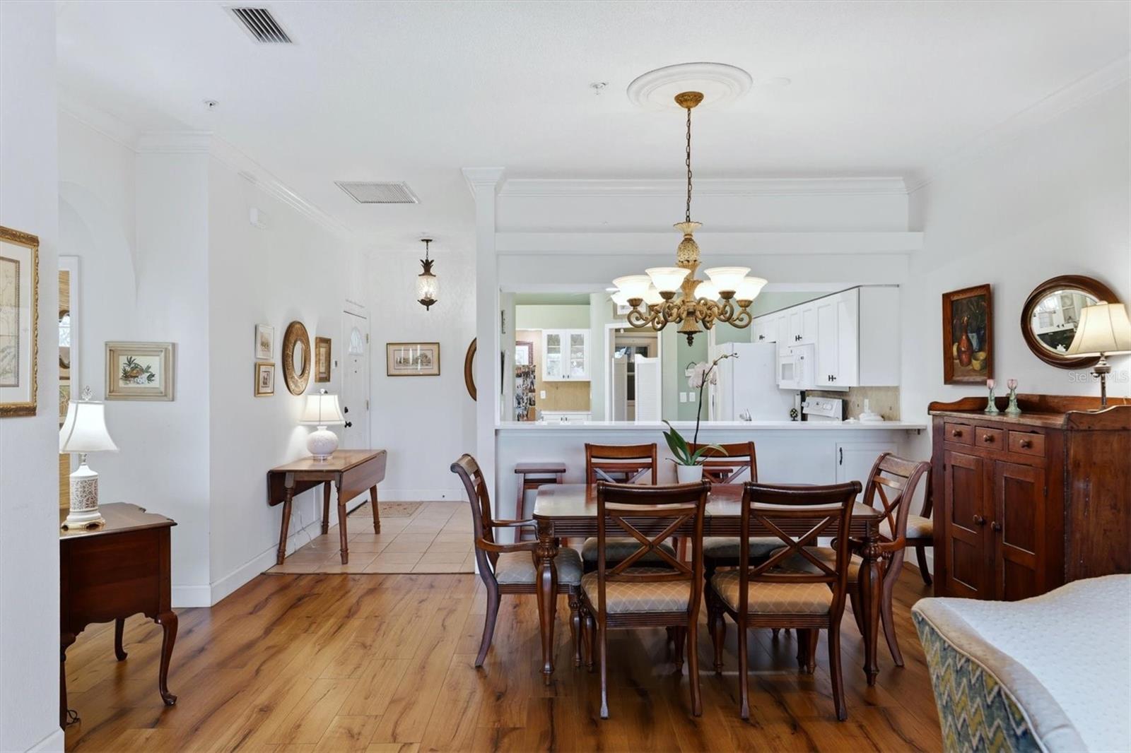 Welcome to Florida Living at its finest in Heritage Oaks Golf & Country Club! Enjoy a maintenance-free lifestyle in this Buttonwood model showcasing 2 bedrooms, 2 baths, a spacious den, extended lanai and offered TURN-KEY furnished! Be impressed with the elegant updates and the love and care this home enjoys... The bright kitchen, with dinette and eat-on bar boast granite counters, tiled backsplash, and updated cabinets. Gorgeous wide plank LVP flooring, 5 1/2 inch baseboards and classic crown molding are throughout most of this charming home! Primary bedroom has additional bay window, sliding glass door to lanai and ensuite bath with updated "no door" tiled shower, raised quartz dual sink vanity and roomy walk-in closet. Take in the expansive view of the 12th hole, water and abundant nature on the screened-in and tiled lanai... your own private oasis with no builds behind you! For extra piece of mind a remote hurricane shutter is in place as well. The added skylight, gives soft natural lighting to the den.. a great spot for extra guests to stay and an office or craft room! 2nd full bath is also updated with new tub, tiled shower and raised stone vanity. Laundry room has more storage cabinets, and the 2 car garage has plenty of room for your golf cart, beach toys and extra cabinets were added to keep it all organized! If you love golf, tennis and nature... then Heritage Oaks is calling you to your new RESORT-STYLE home! It's top notch amenities include an Audubon certified community, an 18 hole championship private golf course, Clay Hydro-Grid lighted tennis courts, 5 heated pools, well-equipped fitness center with full time director, professionally staffed and well-stocked pro-shop, full service restaurant and event space, dining terrace, renowned 19th hole bar, catering kitchen, and a calendar of events to stay as active as you like! The location can't be beat, minutes away from all Sarasota has to offer.. beaches, the arts/theater scene, shopping, top rated hospitals, parks, and local attractions. Heritage Oaks is private, gated and has 24 hour security, is fiscally sound and well managed...Rentals and pets are welcomed..Come see what Florida Living is meant to be!