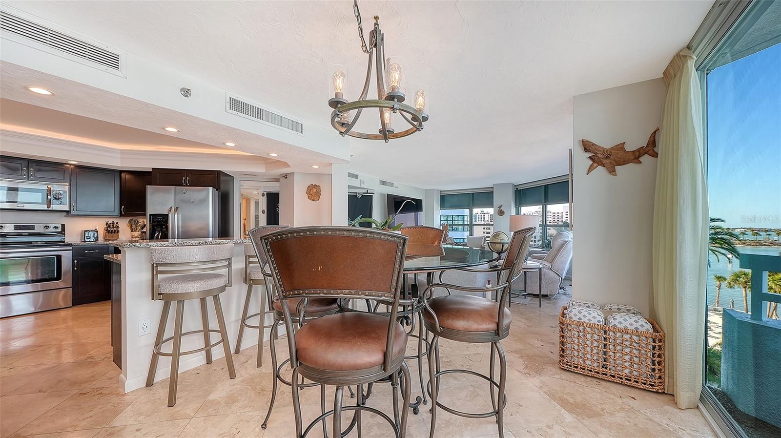 EXPERIENCE REMARKABLE DOWNTOWN SARASOTA LIVING AT IT'S BEST! Spectacular unobstructed views of the Gulf and Sarasota Bay from every room in this spacious 2 bedroom 2 bath, 6th floor condo. Light and bright with an open floor plan which is great for entertaining and a balcony to enjoy the beautiful blue skies, water and colorful sunsets. The kitchen has wood cabinets, granite counters, stainless appliances and great views The primary bedroom has a walk in closet and private balcony where you can enjoy morning coffee. The ensuite bath has dual sinks, lots of storage and a walk in shower. The guest bedroom is a generous size and there is a second full bath with tub and shower. Separate storage area on the 1st floor and community mail area. Concierge Service, Parking garage, EV station, Security Gatehouse 24 hours & Night Security. Enjoy the resort style pools, tennis courts, pickleball courts, newly refinished fitness center, sauna and private marina with boat slips. There is a social club room and library. This location is fabulous, very close to the Van Wetzel live theater as well as other theaters and the Sarasota Orchestra. There is a variety of fine dining restaurants for everyone, festivals and wonderful music and a farmers market. A short walk to Bay Front Park or a short drive to St. Armands circle with upscale shops, restaurants and beautiful Lido Beach.