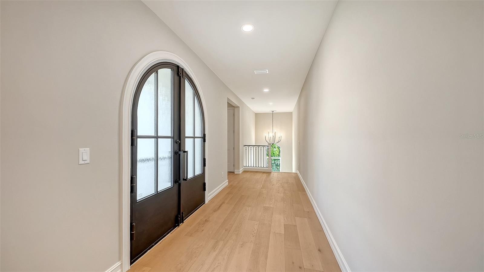 One or more photo(s) has been virtually staged. West of trail, 2026 Custom Build, Exquisite Modern Mediterranean estate with a seamless blend of classic architecture and contemporary finishes. This exceptional 5-bedroom, 4-bathroom residence is thoughtfully designed for both everyday living and effortless entertaining. The main level features a luxurious first-floor primary suite with a walk-in closet and spa-inspired bathroom with dual vanities, along with two first-floor guest bedrooms and a private office. Wide-plank oak hardwood floors, custom built-ins and maple wood cabinetry with inset doors , and a warm, inviting electric fireplace enhance the home’s elegant yet comfortable ambiance. A fully integrated surround sound system extends throughout the living room, kitchen, and outdoor entertaining areas. The chef’s kitchen is beautifully appointed with premium Viking appliances, Taj Mahal quartzite countertops, custom cabinetry, elevated fixtures and designer lighting, along with a stylish bar featuring Cristallo quartzite and a beverage center—perfect for hosting and entertaining. The second level offers a spacious bonus room ideal for a media lounge or game room, along with two additional bedrooms and a gallery-style hallway with an open balcony, adding architectural interest and natural light. Additional highlights include natural gas, a gas-on-demand water heater, enhanced exterior insulation for energy efficiency, a concrete tile roof, irrigation system, and abundant storage throughout. Architecturally, the home embraces classic Mediterranean elements with a modern sensibility. Arched doorways, windows, and passageways create a sense of flow and understated grandeur, while intricate wrought iron detailing and extensive millwork add depth and craftsmanship. Statement chandeliers and curated designer lighting elevate each space, enhancing the home’s refined aesthetic. A detached guest home, complete with a private bedroom, full bathroom, and living area, offers ideal accommodations for guests or extended stays. Outdoors, a custom-designed oversized pool showcases timeless Mediterranean blue tile, complemented by elegant fire bowls and a cascading waterfall spa—creating a true resort-style setting. The property is complete with a 2-car attached garage in the main home, 2 car covered parking under the guesthouse, and an additional two-car garage, offering both functionality and flexibility. Ideally situated in Southside Village, this residence offers a highly walkable lifestyle just moments from Southside Elementary, Morton's Gourmet Market, local restaurants, and boutique shopping.