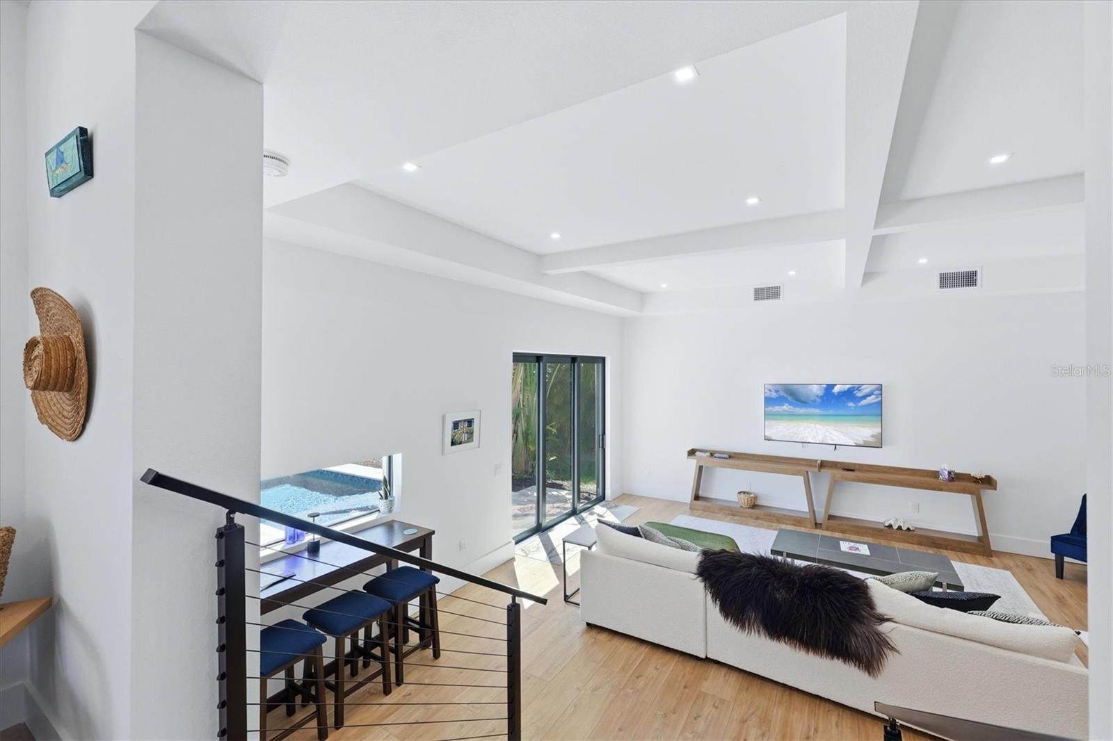 Welcome to 2538 Trinidad Street in Sarasota, located in the Philippi Cove community. This single-family residence offers 3,152 square feet of interior living space with four bedrooms and four baths, thoughtfully remodeled and updated in 2025 to reflect modern systems, materials and functional design. The main living area features an open layout with high ceilings and expansive sliding glass doors that provide direct access to the outdoor living space and pool area. Impact-rated glass and doors are installed throughout, contributing to structural integrity and storm protection. The dining area is integrated within the main living space, creating a cohesive environment for both everyday living and entertaining. The kitchen is designed with a focus on utility and scale, featuring Thor stainless steel appliances, including a 36-inch electric range, wall ovens and microwave. Additional elements include a wine and beverage refrigerator, butler’s pantry and a large center island that accommodates food preparation, storage and seating Additional interior spaces include a dedicated media or office room with an electric fireplace and wet bar, providing separation for work or leisure. The foyer introduces the home with a built-in wet bar or coffee bar, adding functionality at the entry point. The residence includes two sets of washer and dryer, with one located on the first floor and an additional set on the second floor for convenience and multi-level living. Outdoor living is centered around a saltwater pool completed in 2025, with direct connectivity from the interior living spaces. The property also includes a front patio and a fenced yard, offering defined outdoor areas. Solar panels are installed and fully paid, contributing to long-term energy efficiency. A metal roof installed in 2008 provides additional durability. The property includes a large parking area that accommodates multiple vehicles. Located within proximity to Riverview High School and close to downtown Sarasota and Siesta Key, the property offers convenient access to dining, cultural amenities, and Gulf Coast beaches. Offered turnkey, furnished with designer furniture, the residence excludes artwork and personal items. This property presents a combination of updated interiors, integrated indoor and outdoor living and functional design within the Philippi Cove area of Sarasota.