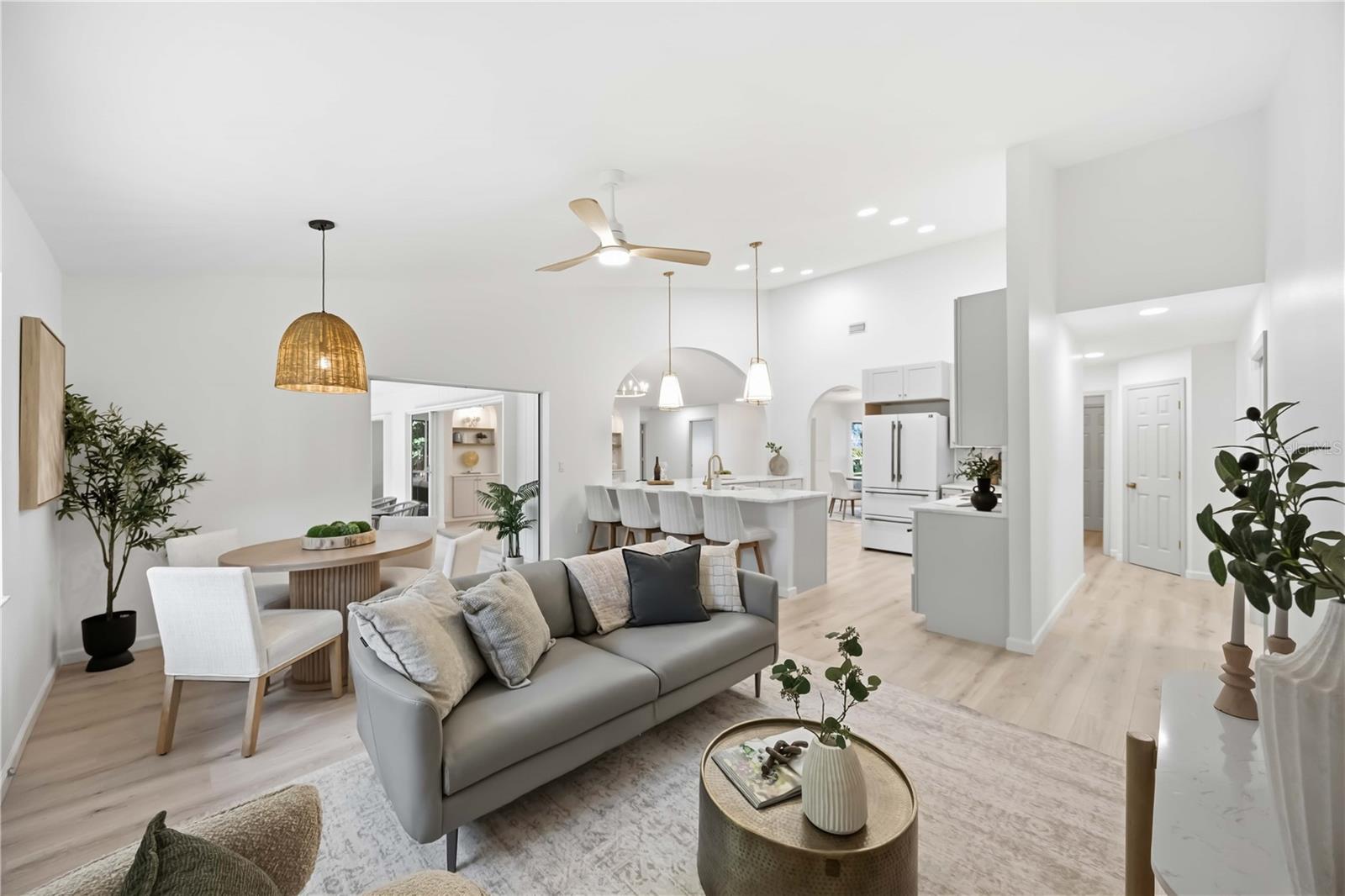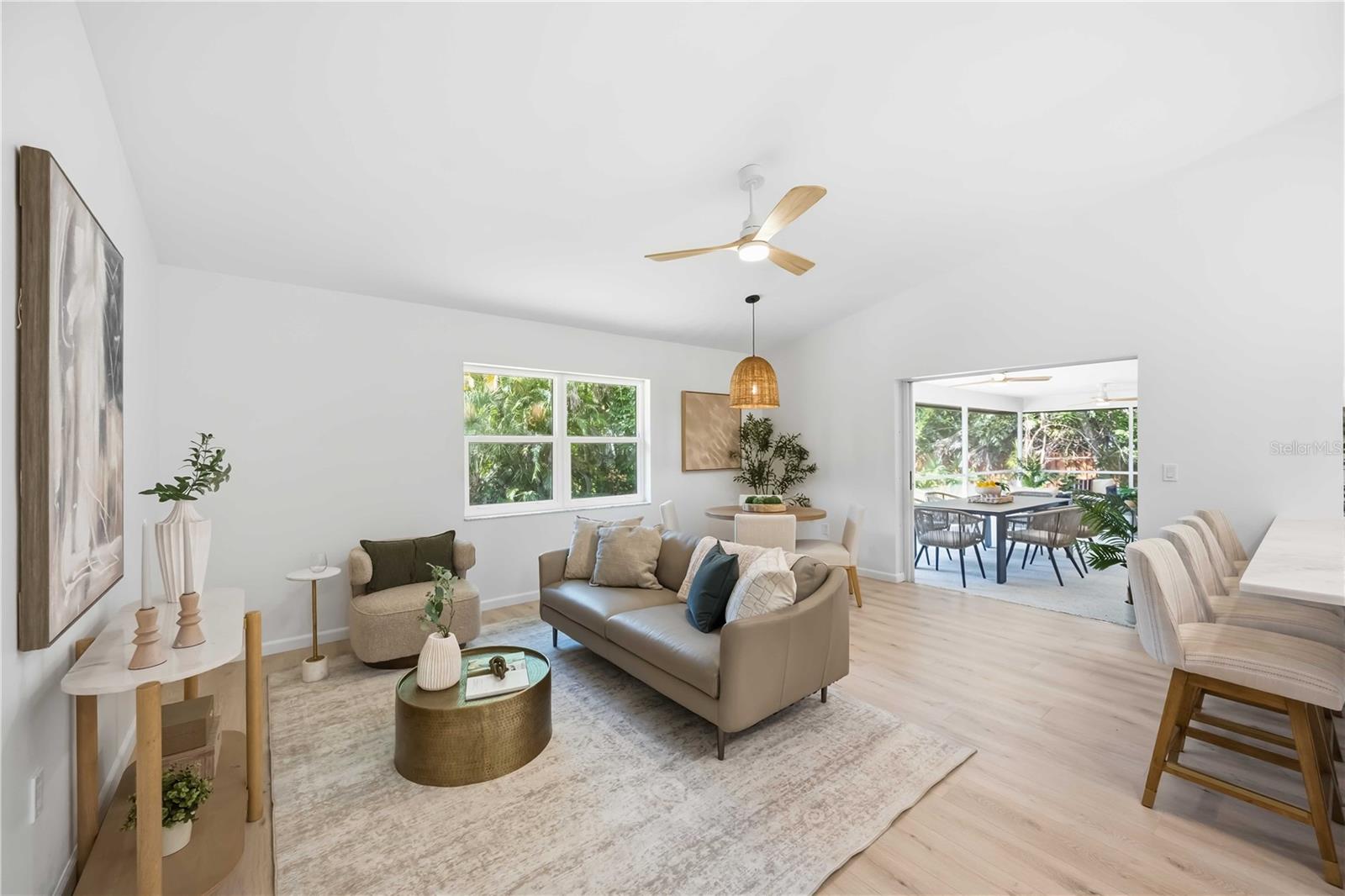 Don’t miss this rare opportunity to own a BEAUTIFULLY RENOVATED AND PROFESSIONALLY DESIGNED HOME in the highly desirable Lakes Estates community of Sarasota. Ideally situated on a quiet street, this home offers stunning curb appeal, thoughtful design, and an exceptional blend of modern upgrades and timeless character. From the moment you arrive, you’ll be impressed by the attention to detail, high-end finishes, and inviting indoor/outdoor living spaces that make this property truly special.This spacious 2,253 sq ft home features 3 BEDROOMS, 2 BATHROOMS, and a 2-CAR GARAGE (with a BONUS 4TH BEDROOM not reflected in county records). At the heart of the home is an ALL NEW HIGH-END KITCHEN featuring MARBLE COUNTERTOPS AND BACKSPLASH, NEW DESIGNER APPLIANCES, a CUSTOM RANGE HOOD, breakfast nook, soft-close cabinetry, and HIGH-END DESIGNER LIGHTING AND FIXTURES—perfect for both everyday living and entertaining. Just off the kitchen, you’ll find an OVERSIZED LAUNDRY ROOM WITH CUSTOM CABINETS and a utility sink, providing both convenience and ample storage. The home’s SPLIT FLOOR PLAN offers privacy, with the master suite located off the great room, with two bedrooms and a bath tucked away on the opposite side of the home. The ALL NEW SPA-LIKE MASTER SUITE is a true retreat, featuring a CUSTOM GLASS-ENCLOSED SHOWER, DUAL SINKS, sleek cabinetry, designer lighting and fixtures, skylight, and a LARGE WALK-IN CLOSET WITH BUILT-IN STORAGE. Enjoy direct access to the lanai through a POCKET SLIDING DOOR, as well as a unique private outdoor seating area accessible from the master bath—perfect for quiet mornings or evening relaxation. The GREAT ROOM showcases VAULTED CEILINGS WITH AN EXPOSED BEAM, creating a bright and open atmosphere. A stunning ELECTRIC FIREPLACE WITH CUSTOM STONE FACADE AND WOOD MANTLE serves as the focal point, flanked by MATCHING ARCHED BUILT-IN BOOKSHELVES with custom cabinetry and marble countertops. Seamlessly blend indoor and outdoor living with TWO SETS OF OVERSIZED POCKET SLIDING DOORS that open to the covered and fully screened lanai—ideal for entertaining or enjoying Florida’s beautiful weather year-round. The LARGE, OPEN BACKYARD offers plenty of room to design your dream pool and outdoor oasis, while the front yard features NEW SOD and mature landscaping that enhances the home’s curb appeal. Additional upgrades include NEW FLOORS, NEW LIGHTING, CUSTOM TILE, and FRESH PAINT (interior and exterior), along with a FIVE ZONE IRRIGATION SYSTEM, NEW WINDOWS (2026), NEW ROOF (2023), AC (2012), and a 2-CAR GARAGE WITH NEW EPOXY FLOOR COATING. Residents enjoy access to community amenities including a CLUBHOUSE, FITNESS CENTER, POOL, AND TENNIS COURTS. Conveniently located just a short drive to downtown Sarasota, top-rated schools, dining, shopping, and the area’s WORLD-FAMOUS GULF BEACHES, this home offers the perfect combination of comfort, style, and location. Don’t miss your chance to own this MOVE-IN READY, ONE-OF-A-KIND PROPERTY in one of Sarasota’s most convenient and sought-after areas. Schedule your private showing today!