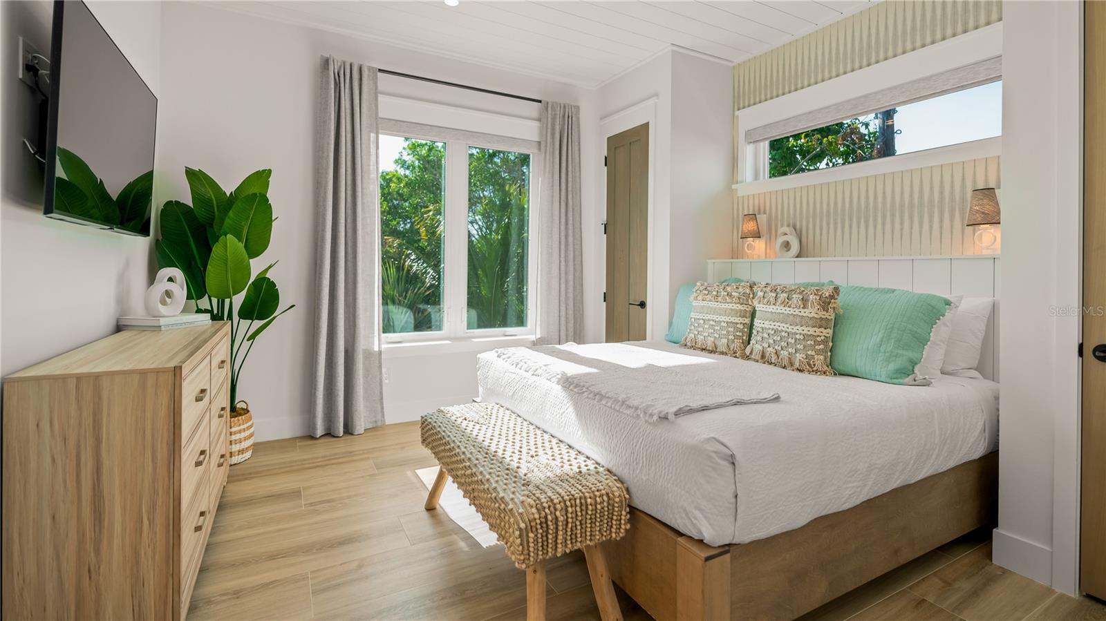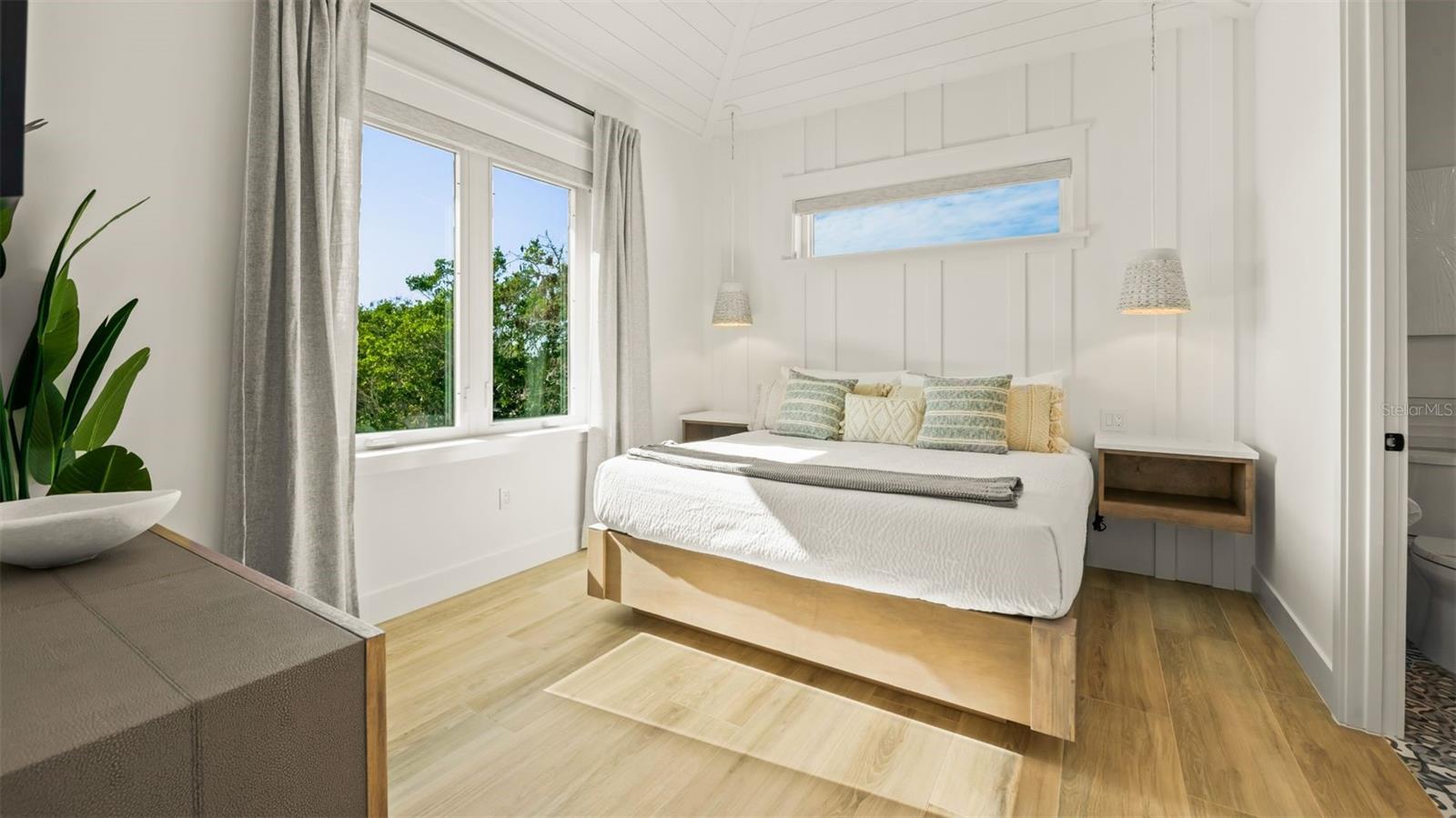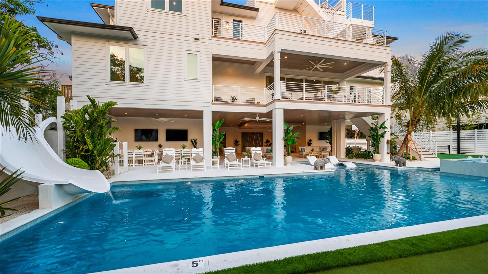 There is only one — Siesta Sun Sets. Set against the quiet backdrop of Sabal Lake, with glimpses of the Gulf beyond, this residence unfolds with a sense of irresistible intention. Influenced by West Indies architecture, the design blends expansive indoor-outdoor living with natural textures, layered spaces, and a palette that mirrors its surroundings — soothing, sun-washed, and enduring. Across more than 4,000 square feet, the home offers seven incredible en-suite bedrooms and multiple living areas designed for both gathering and restful retreat. The great room anchors the experience, where kitchen, dining, and living spaces open outward to twin balconies — one overlooking the extensive grounds, the other framed by mature oaks, offering a quiet contrast of shade and light. Above, a private club level introduces a more intimate setting — a theater-style lounge, additional suites, and access to the rooftop deck. It is here, at the highest point of the home, that the name reveals itself. As day transitions to evening and the Gulf reflects gold, the softening sky reveals stunning sunsets, becoming the backdrop against which you count your blessings. Below, the grounds are equally considered. A multi-sport court — rare in both scale and versatility — sits alongside a resort-style pool and 360-degree spillover spa, creating a setting as seductive as it is serene. Covered outdoor living spaces extend the home’s presence, offering multiple areas for dining, gathering, and quiet retreat, all within a private, fully enclosed landscape. Siesta Sun Sets is not defined by any one feature, but by the way it brings them together — water, light, elevation, and space — into a residence that feels both grounded and removed, exclusive and secluded. A masterwork of resilient engineering and high-end coastal construction, this estate is architecturally primed to withstand coastal elements while serving as a premier venue for grand-scale entertaining and lucrative seasonal retreats. More than a home, Siesta Sun Sets is part of an exclusive Vunique collection with a proven history of strong rental performance — each residence one-of-one, purpose-built to balance bold design and bespoke experience. Here, ownership transcends address; it becomes a mark of belonging to something beautifully uncommon.