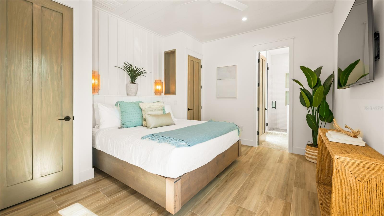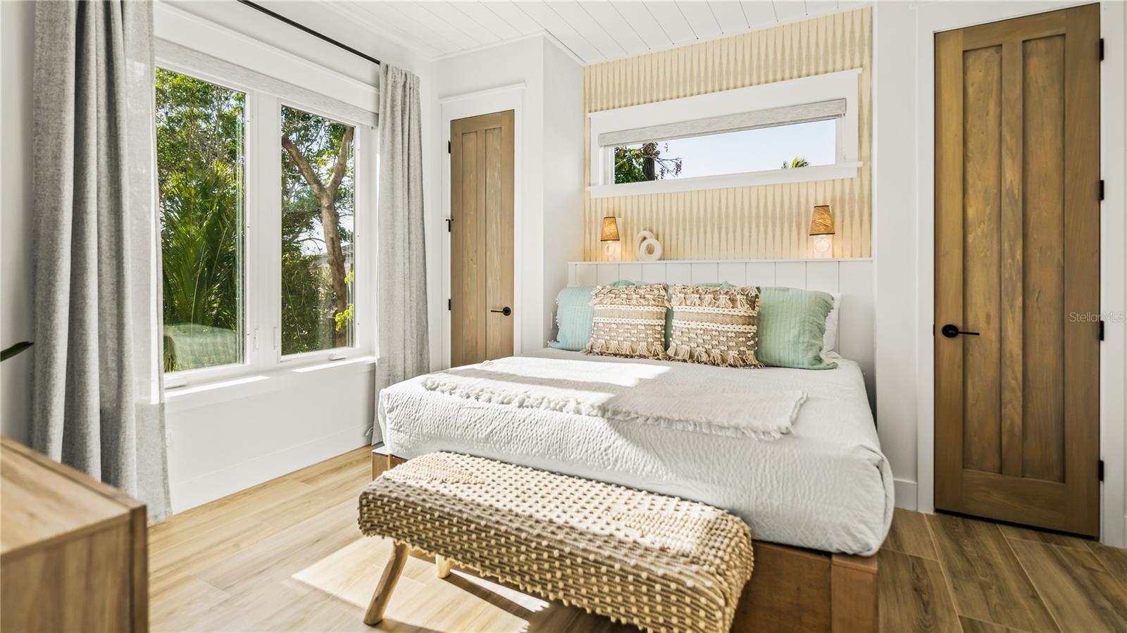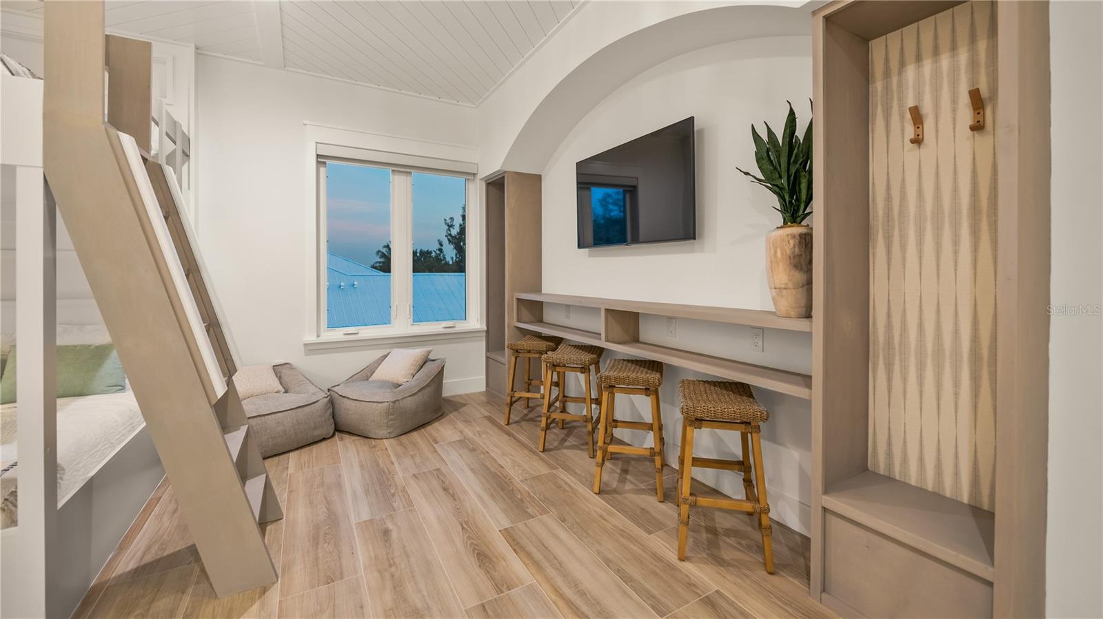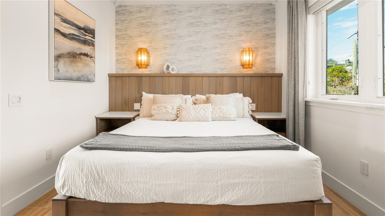 There is only one — Siesta Sun Sets. Set against the quiet backdrop of Sabal Lake, with glimpses of the Gulf beyond, this residence unfolds with a sense of irresistible intention. Influenced by West Indies architecture, the design blends expansive indoor-outdoor living with natural textures, layered spaces, and a palette that mirrors its surroundings — soothing, sun-washed, and enduring. Across more than 4,000 square feet, the home offers seven incredible en-suite bedrooms and multiple living areas designed for both gathering and restful retreat. The great room anchors the experience, where kitchen, dining, and living spaces open outward to twin balconies — one overlooking the extensive grounds, the other framed by mature oaks, offering a quiet contrast of shade and light. Above, a private club level introduces a more intimate setting — a theater-style lounge, additional suites, and access to the rooftop deck. It is here, at the highest point of the home, that the name reveals itself. As day transitions to evening and the Gulf reflects gold, the softening sky reveals stunning sunsets, becoming the backdrop against which you count your blessings. Below, the grounds are equally considered. A multi-sport court — rare in both scale and versatility — sits alongside a resort-style pool and 360-degree spillover spa, creating a setting as seductive as it is serene. Covered outdoor living spaces extend the home’s presence, offering multiple areas for dining, gathering, and quiet retreat, all within a private, fully enclosed landscape. Siesta Sun Sets is not defined by any one feature, but by the way it brings them together — water, light, elevation, and space — into a residence that feels both grounded and removed, exclusive and secluded. A masterwork of resilient engineering and high-end coastal construction, this estate is architecturally primed to withstand coastal elements while serving as a premier venue for grand-scale entertaining and lucrative seasonal retreats. More than a home, Siesta Sun Sets is part of an exclusive Vunique collection with a proven history of strong rental performance — each residence one-of-one, purpose-built to balance bold design and bespoke experience. Here, ownership transcends address; it becomes a mark of belonging to something beautifully uncommon.