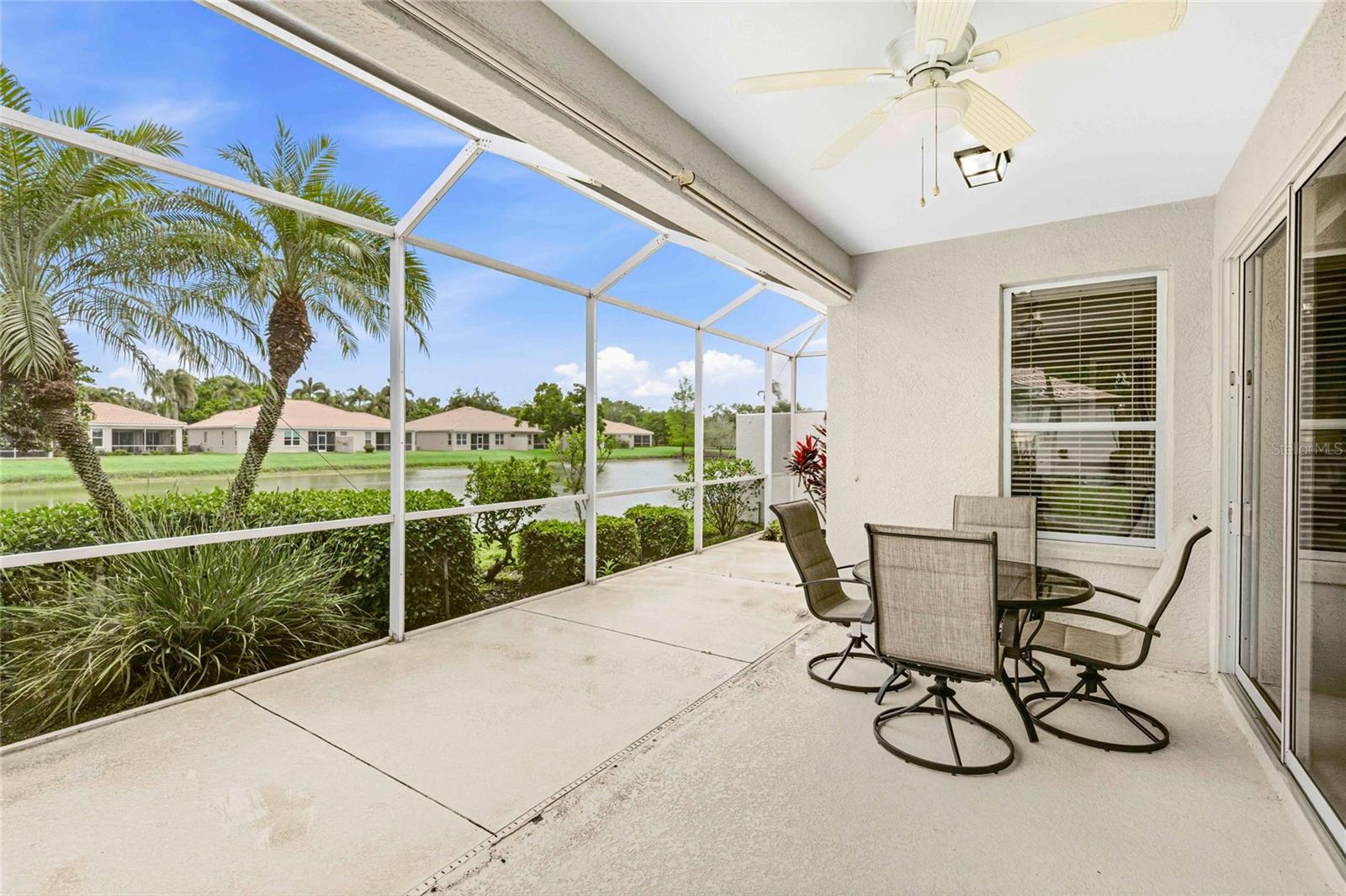 NEW ROOF (2026) on this END-UNIT villa with LAKE VIEWS view featuring 2 bedrooms plus a DEN, 2 bathrooms, and a 2-car garage, with 1,554 sq ft of living space. The kitchen offers granite countertops, and the home opens to a large EXTENDED SCREENED LANAI with beautiful LAKE VIEWS. Natural gas supplied to the home. TURNKEY FURNISHED, or seller will remove if buyer so chooses. MAINTENANCE-FREE (with a few exceptions). Lakeridge Falls is a 55+ gated community (24-hour guard) with a community HEATED pool, spa/hot tub, updated clubhouse with full fitness center, card room, bocce courts, a beachy area, lots of walking trails, and a full calendar of planned activities. Great location: Close to UTC Mall, restaurants, grocery stores, SRQ airport, downtown Sarasota, and the most beautiful beaches around.
