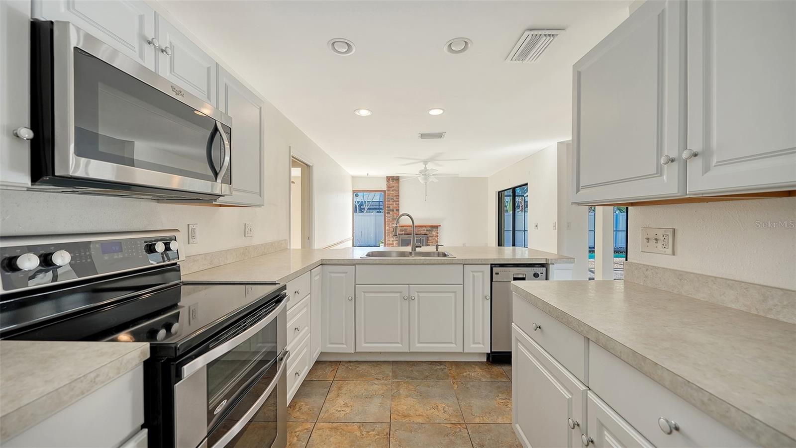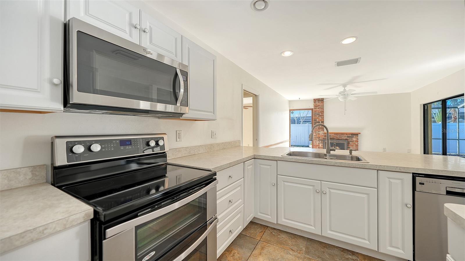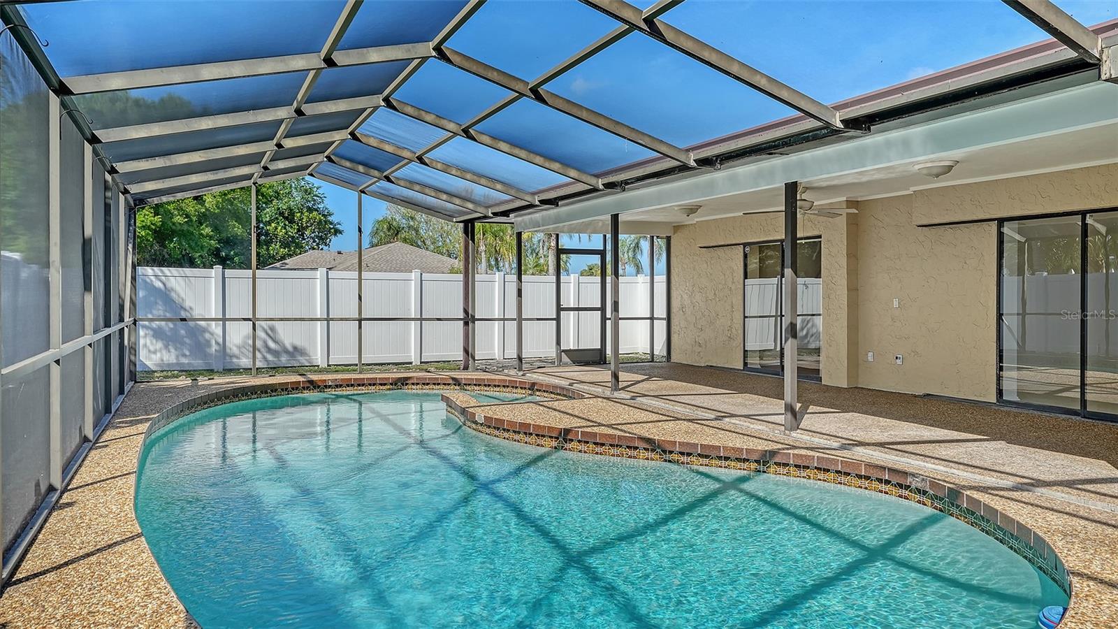Welcome to this pool home in Tamaron! This lovingly maintained 4-bedroom, 2.5-bath home offers a flexible split plan, ideal for a growing household, guests or work-from-home living. The kitchen and family room serve as the heart of the home, featuring a wood-burning fireplace, breakfast bar, newer kitchen appliances, and convenient interior laundry with newer front-loading washer and dryer. Step outside to a freeform pool with a covered lanai and generous overhang, perfect for entertaining, all within a fenced yard with room for pets or gardening, while a private front courtyard offers a quiet spot for morning coffee. Thoughtful updates include a full interior re-pipe (2014), A/C replacement (2014), and a roof installed in July 2010 with a secondary water barrier and 30-year dimensional shingles with enhanced fastening, along with a resurfaced pool and newer pump. An oversized garage accommodates larger vehicles, and the location is hard to beat—approximately 5 minutes to Publix and shopping, 10 minutes to I-75, 15–20 minutes to downtown Sarasota, and 20–25 minutes to Siesta Key and area beaches—making this a well-cared-for home ready for its next owner’s personal touches.