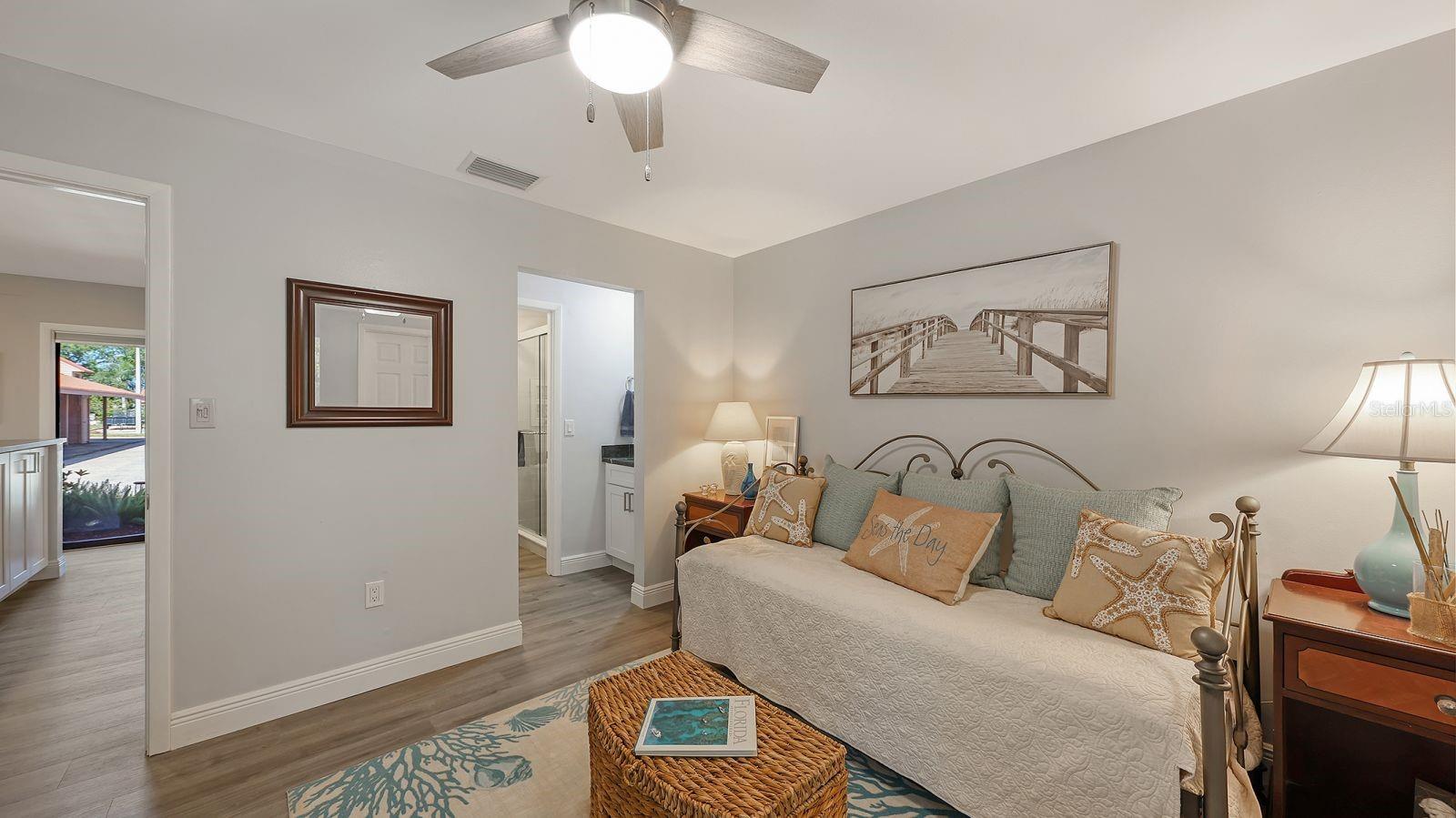 Welcome to your fully renovated slice of paradise in one of Sarasota's most desirable communities in Palmer Ranch! Terrific Value with all of the work done for you and ready for immediate occupancy! This immaculate condo offers an open concept floor plan with a vaulted ceiling in the Living Room with wooden beams. The beautiful furnishings in this condo are negotiable, and it has everything you could possibly need to live comfortably. The interior is tastefully painted and Seller has done many updates including the following: Air Conditioner 2023*Water Heater 2020*Metal Roof installed by the association 2012*Washer and Dryer 2026*Dishwasher 2023*Range 2023*Microwave 2023*Refrigerator 2020*Luxury Vinyl Flooring/Showers/Plumbing Fixtures/Baseboards/Paint/Electrical Switches/Kitchen Cabinetry/Granite Tops/Window Tinting/Blinds/Landscaping/Closet Shelving System/Interior Solid Wood Doors (all 2023 & 2024). Additionally, the sewer drain pipe was jetted and relined in 2023. Seller has maintained this condo and it has been barely lived in! There is an inviting Front Porch for seating and a Screened Lanai in the Back that overlooks a water view and many trees. You will love the peaceful setting and you will see wildlife galore! The split floor plan offers 2 bedroom suites with private bathrooms and each has a large walk-in-closet. The custom designed kitchen is done with quality and there is a breakfast bar near the dining room that is perfect for entertaining guests. Step outside and enjoy the maintenance-free living with low HOA fees that cover basic cable TV, trash removal, roof and exterior maintenance, exterior pest control and landscaping. Enjoy all this wonderful community has to provide to you with a sparkling community pool, tennis/pickleball courts, walking trails and captivating water views. Daily conveniences are just minutes away, with grocery shopping nearby as well as fitness centers and fine restaurants. World renowned Siesta Key Beaches are only 15 minutes away and cultural downtown Sarasota is 20 minutes away with fine dining, opera, movie theaters, Selby Gardens & more. You'll also appreciate your own carport space and there is plenty of guest parking. The location of this condo is way in the back so it is nice and quiet and has very little traffic. Make this updated gem yours, but don't wait ... this one won't last long! Hurry before it's gone!