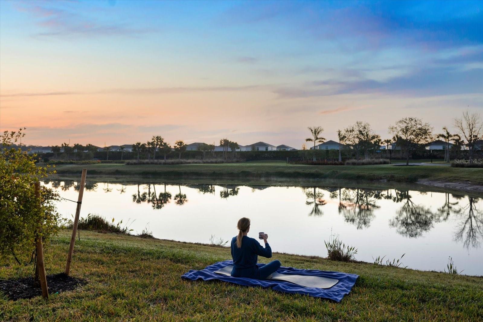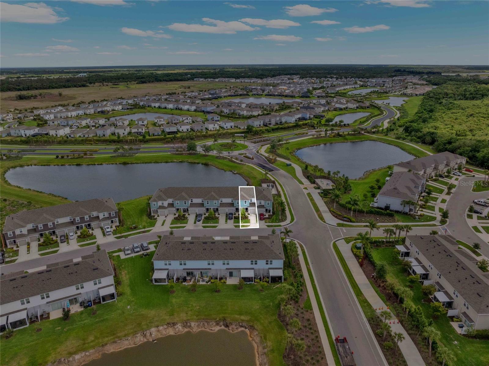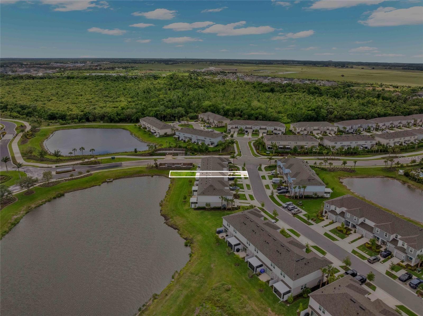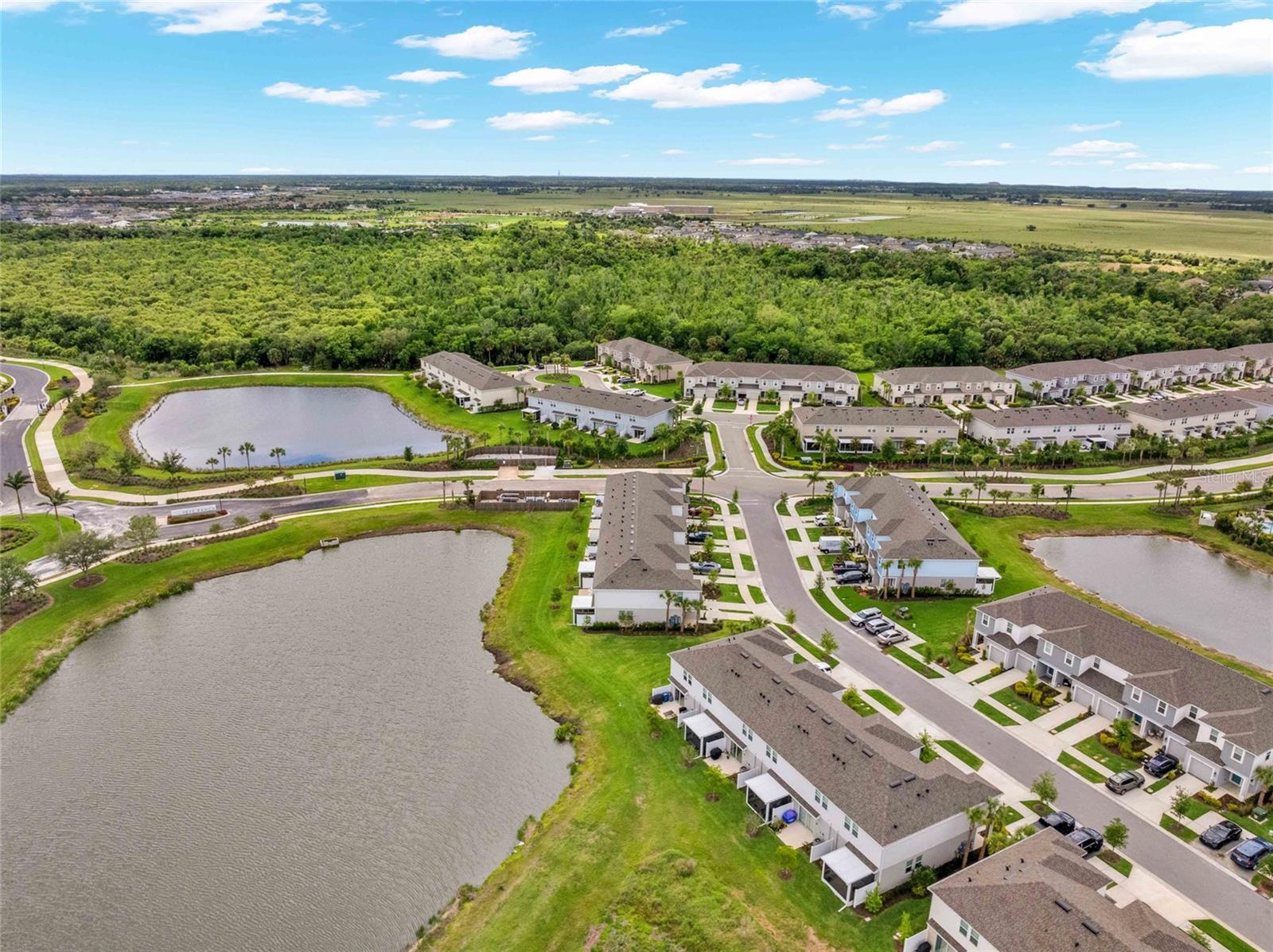Tucked within the natural beauty of Skye Ranch, this beautifully designed Jasmine floor plan offers peaceful lake views, soft morning sunrises, and a setting that feels calm and comfortable from the moment you arrive. Positioned within one of the more private sections of the community, this three bedroom, two and a half bath townhome enjoys a spacious, residential feel with open views and a quiet sense of separation from neighboring buildings. A private driveway and one car garage provide ease of access, while a covered front entry creates a welcoming space that can be enjoyed as a quiet spot to sit and unwind. This particular building is ideally located just inside the second entrance to Skye Ranch, where a scenic, winding approach sets a more relaxed and tucked away tone, with the home immediately positioned to the left for convenient access. Inside, the home opens to a light filled, open concept design that lives effortlessly. The kitchen anchors the space with an oversized quartz island, now enhanced with upgraded pendant lighting that adds both style and warmth, along with stainless steel appliances, a walk in pantry, and recessed lighting throughout. The living and dining areas flow seamlessly together, complemented by luxury vinyl flooring throughout the first level, a custom built in TV feature wall, and a refined shiplap entry detail. Hardwired ceiling fans have been thoughtfully installed, and the small but important details have already been completed, allowing the home to feel finished, comfortable, and move in ready. A convenient half bath is also located on the first level for guests. Glass doors lead to a private outdoor living space overlooking the lake, where the openness allows you to take in the light, breeze, and natural surroundings. With no direct view into other townhomes, the setting feels open and peaceful. Upstairs, the layout continues to live well with three bedrooms, two full baths, and a convenient laundry area. The primary suite enjoys a lovely second story water view and offers a relaxed retreat with dual sinks, a walk in closet, and a private bath. Two additional bedrooms provide flexibility for guests, family, or a home office. Skye Ranch is redefining what it means to live in Sarasota, with over 25 miles of scenic trails, preserved natural spaces, and a true connection to the outdoors. At the heart of the community is Turner Park, offering dog parks, sand volleyball, tennis and basketball courts, expansive open fields, and a vibrant space for recreation and connection. The brand new Skye Ranch Elementary School, located within the community, adds an incredible level of convenience and long term value. Perfectly positioned just off Clark Road and moments from I 75 at exit 205, this location offers seamless access to everything that makes Sarasota so desirable. A direct drive leads to Siesta Key and its world renowned beaches, while UTC, Waterside, dining, and shopping are all within easy reach. It is the best of both worlds, where newer construction, nature, and convenience come together in a way that simply works. Skye Ranch represents the new Sarasota. Thoughtful, connected, and designed for the way people want to live today.