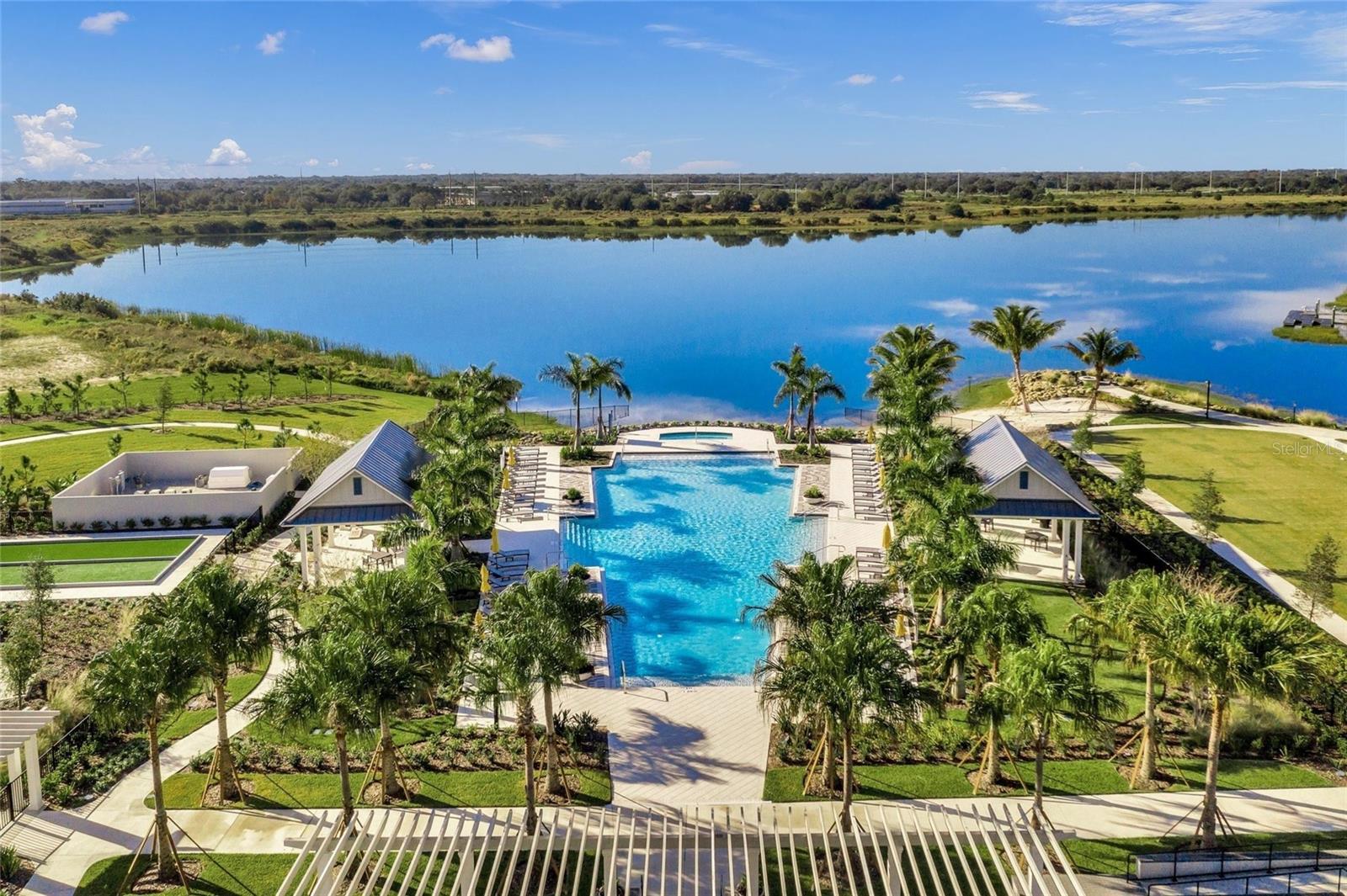 8160 Sternway Rd Sarasota, FL a 3-bedroom, 2-bath home offering approximately 1,764 SF with a 2-car garage, set on a premium lot with wide, peaceful water views. Offered furnished with furniture included as shown, this is a true turnkey, move-in ready opportunity. Located in Lakehouse Cove at Waterside with walking paths that lead directly to Waterside Place for dining, shopping, and entertainment. Inside, the open layout connects the kitchen, dining, and living areas with a clean, functional flow and natural light throughout. The kitchen features quartz countertops, stainless steel appliances, a gas range, ample cabinetry, and a center island with seating. 8' Sliding glass doors open to a covered lanai overlooking the water, creating an easy indoor-outdoor setup. The primary suite is privately positioned with a walk-in closet, dual vanities, and a walk-in shower. Two additional bedrooms gives flexibility for guests or a home office. Upgraded landscaping and architectural lighting add to the curb appeal, along with a fully built-out garage with added storage. Built in 2024 as the Mooring model by Homes by Towne, with HOA-maintained landscaping and exterior for easy ownership. Lakehouse Cove amenities include a clubhouse, pool, fitness center, pickleball courts, and walking trails, all just minutes from downtown Sarasota and the Gulf Coast beaches.