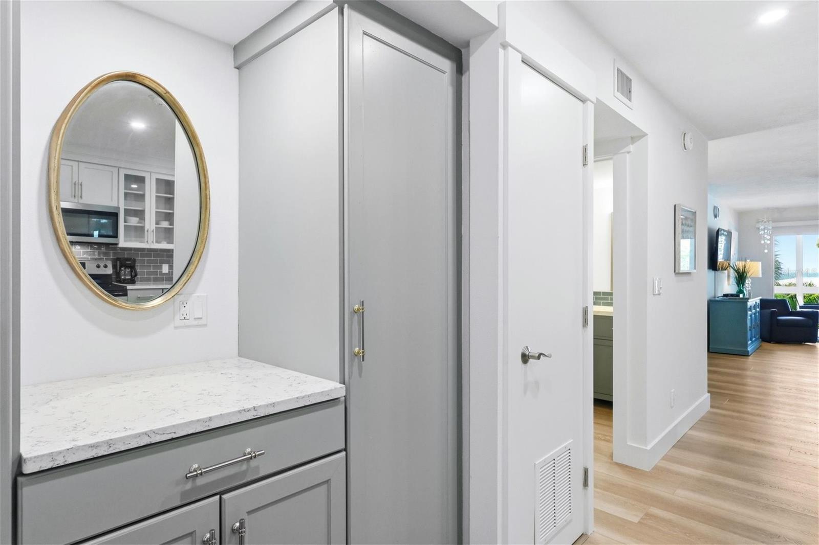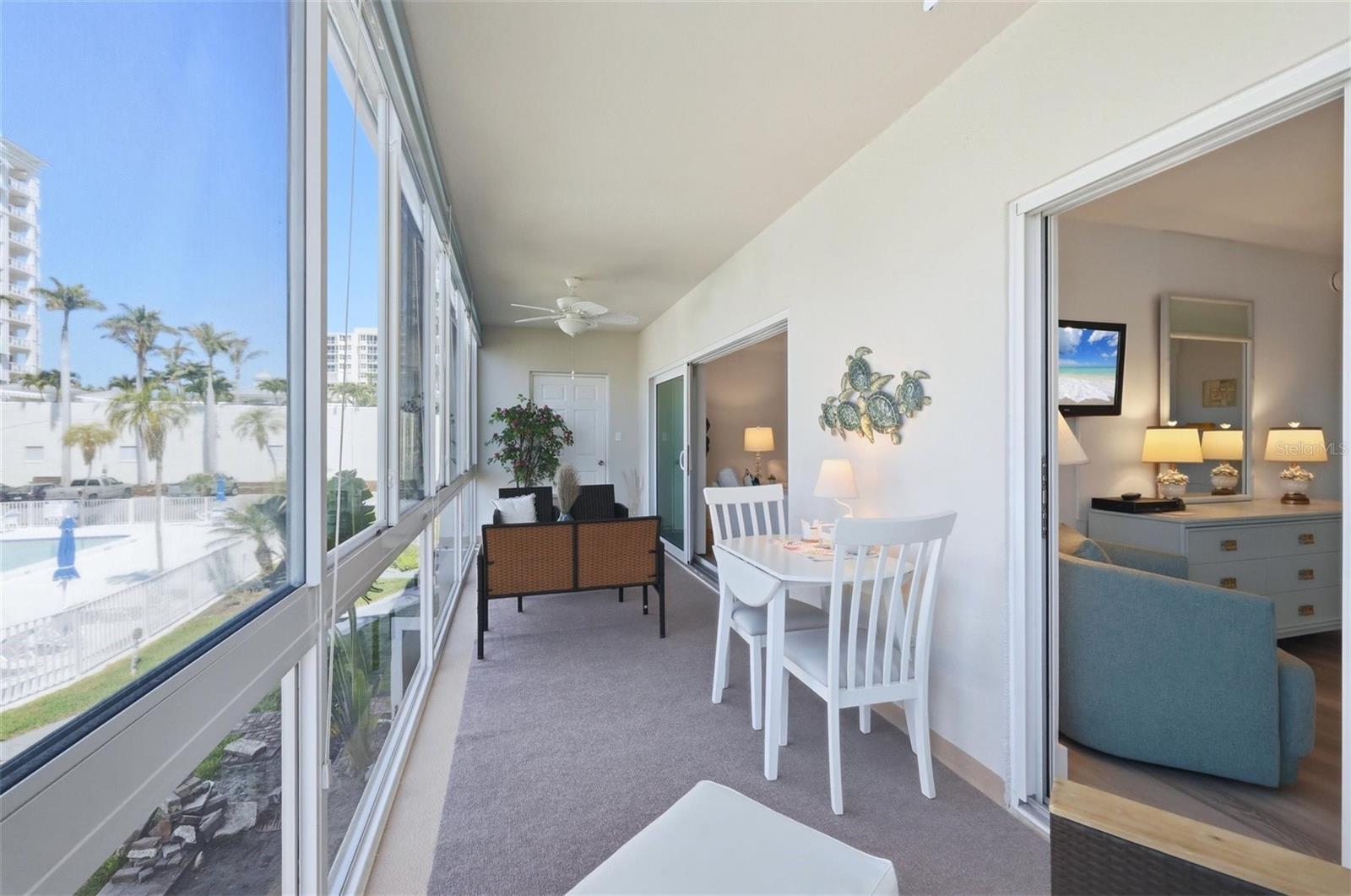 Fully remodeled beach condo offered at an incredible value. This beautifully updated unit features a completely redesigned kitchen with custom wood cabinetry, glass display doors, wine rack, quartz countertops, stainless steel appliances, subway tile backsplash, and breakfast bar. Both the guest and owner’s bathrooms have been fully renovated with modern finishes. Additional upgrades include luxury vinyl plank flooring throughout, new paint and trim, updated doors, and stylish fans and light fixtures. The unit welcomes you with a convenient dry bar at the entry and includes its own in-unit washer and dryer. Enjoy abundant natural light from impact-rated windows and a glass-enclosed lanai overlooking the pool, with a peek of the Gulf. Offered turnkey furnished, this condo is tastefully decorated and move-in ready. Ample storage with two dedicated spaces—one on the enclosed lanai and another in the association storage room—perfect for beach gear. Located in Lido Harbour South, an intimate 69-unit community with direct beach access, residents enjoy a heated pool, clubhouse, beach deck, and assigned covered parking. Ideally situated just minutes from St. Armands Circle and downtown Sarasota’s vibrant dining, shopping, and cultural scene. Adjacent to Ted Sperling Park, offering kayaking and paddleboarding through scenic mangrove tunnels, nature trails, and frequent wildlife sightings including dolphins, manatees, shorebirds, and occasional sea turtle nests. Schedule your private showing today!