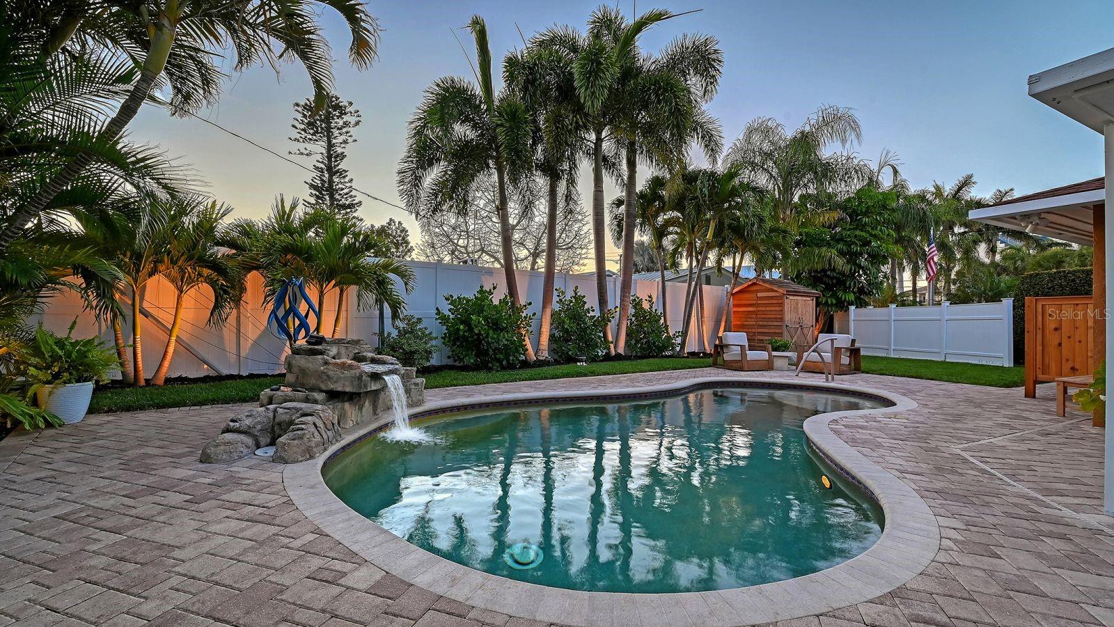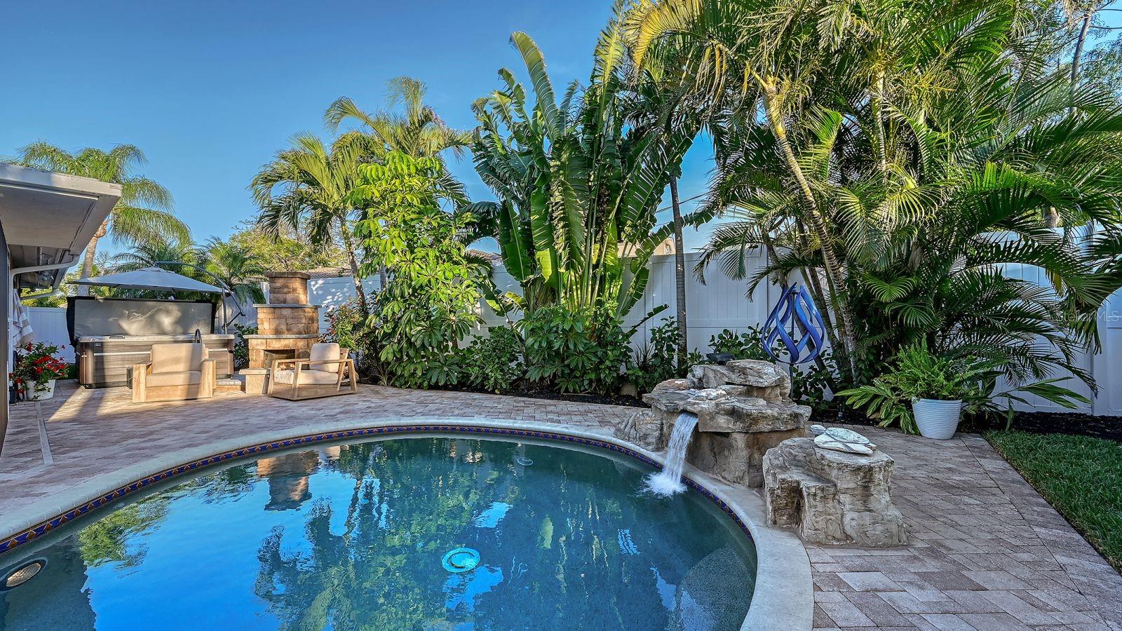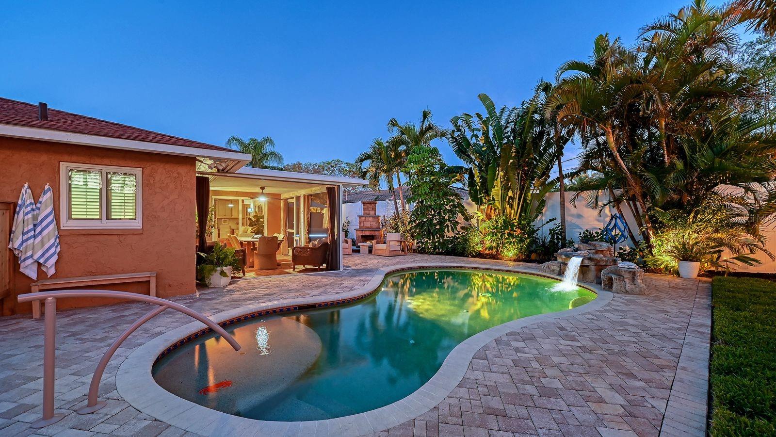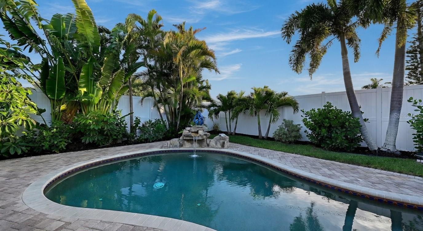 Just steps from the stunning Sarasota Bay, this impeccably appointed corner-lot sanctuary welcomes you into a world of peaceful elegance and resort-style sophistication. As you arrive via the graceful circular paver driveway, you are immediately greeted by the lush, professionally redesigned front gardens bursting with new palm trees, Japanese blueberry trees, bougainvillea, vibrant flowering shrubs, and striking landscape boulders — setting the tone for serene, high-end luxury that defines every inch of this home. The current owners spared no expense — they poured over $200K into a complete top-to-bottom transformation, elevating this property to an extraordinary level of refinement with the finest materials and uncompromising attention to every detail — a true showpiece. STANDOUT FEATURES • Impact-resistant hurricane-rated sliders and windows throughout (exceptional sound dampening and storm protection) • Whole-house generator • Well for irrigation • Sparkling in-ground saltwater pool with upgraded waterfall and lighting • Striking built-in brick outdoor fireplace — the perfect centerpiece for year-round entertaining and unforgettable evenings. 2025-2026 Upgrades of the Highest Order (over $200K invested) • New Trane HVAC system and thermostat • All-new luxury vinyl plank flooring and baseboards throughout • Gourmet kitchen with quartzite countertops, porcelain tile backsplash, soft-close cabinetry with pull-out drawers, new sink and faucet, and a premium Fulcor Milano dual-fuel range with stainless-steel appliances • Imported Italian crystal chandeliers — one dramatically illuminating the living room and another over the kitchen table • Extensive new lighting throughout including pendants, sconces, can lights, coach lights, and full landscape lighting • Primary suite transformation featuring a full walk-in closet (converted from the third bedroom and easily convertible back to a bedroom) with bespoke shelving, mirrors, and chandelier • Designer marble-tile shower, quartz countertops, and Toto toilet in the primary bath • Custom barn door to the primary suite • Fully remodeled guest bathroom with new tile, glass door, and Toto toilet • Garage upgrades: new high-velocity hurricane-rated garage door, epoxy flooring, custom cabinets, and painted ceiling/walls Resort-Style Backyard & Panoramic Lanai (the true heart of this sanctuary): • Brand-new hot tub on fresh pavers with LED lighting and umbrella • Expansive panoramic-style covered lanai with new marble posts and beam, Sunbrella curtains, ceiling fan, and painted ceiling — perfect for serene mornings or elegant evenings • Outdoor cedar shower • Custom cedar shed • Additional highlights include a state-of-the-art water filtration system, custom glass doorknobs, all-new interior doors and hardware • New 8 ft vinyl privacy fencing, professional landscaping with new palm trees, Japanese blueberry trees, bougainvillea, designer rocks, fresh sod, upgraded irrigation, two healthy fruit trees (lime and grapefruit), landscape lighting, and the owned 150-gallon propane tank. A short stroll from your doorstep leads to the beautiful Bayfront and a marina with convenient boat storage. Vibrant downtown Sarasota — with its world-class dining, shopping, arts, and easy access to I-75 — is just minutes away. This move-in-ready sanctuary blends the highest-order luxury appointments with a private resort backyard — the ultimate peaceful Florida lifestyle home.