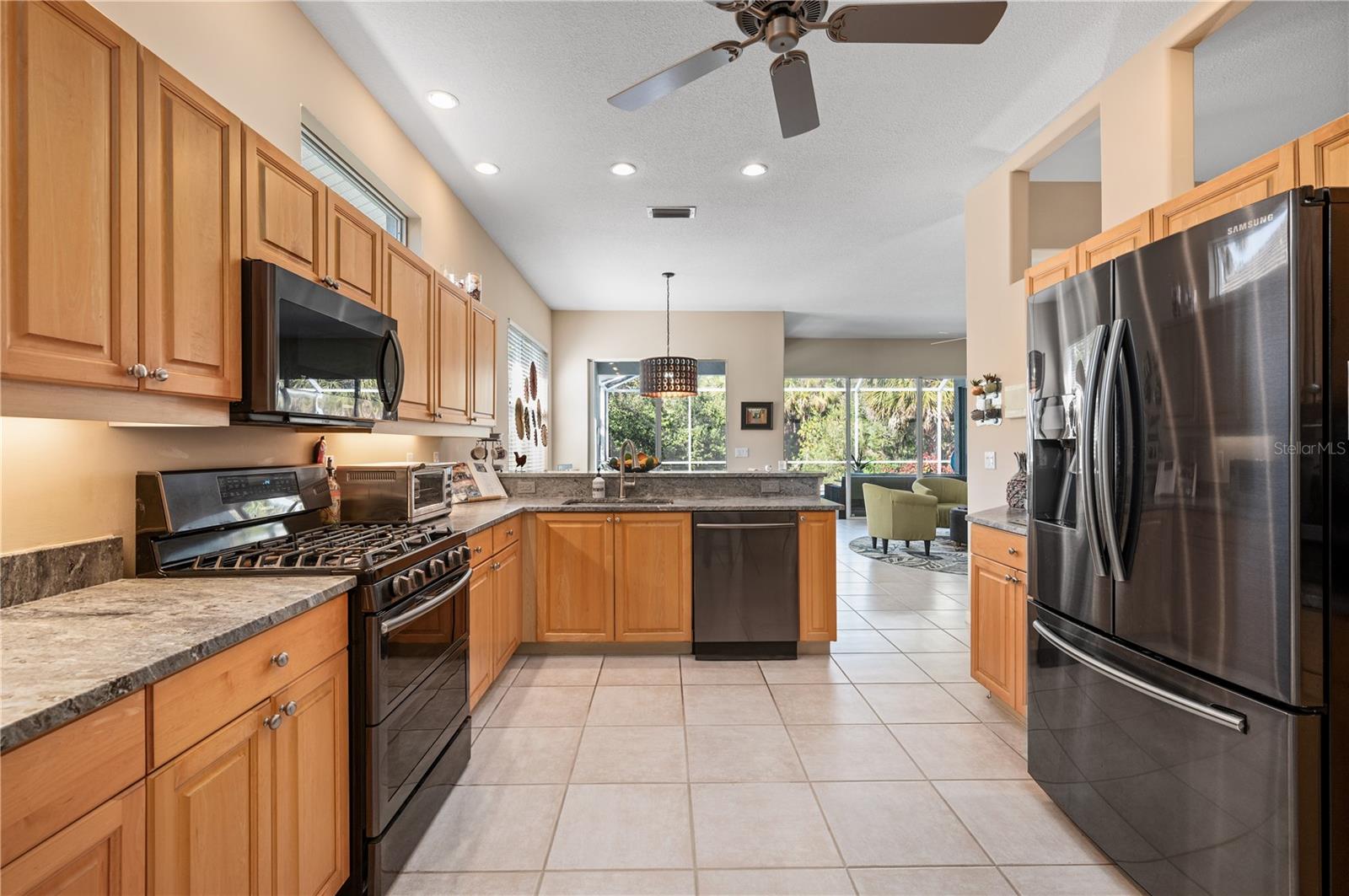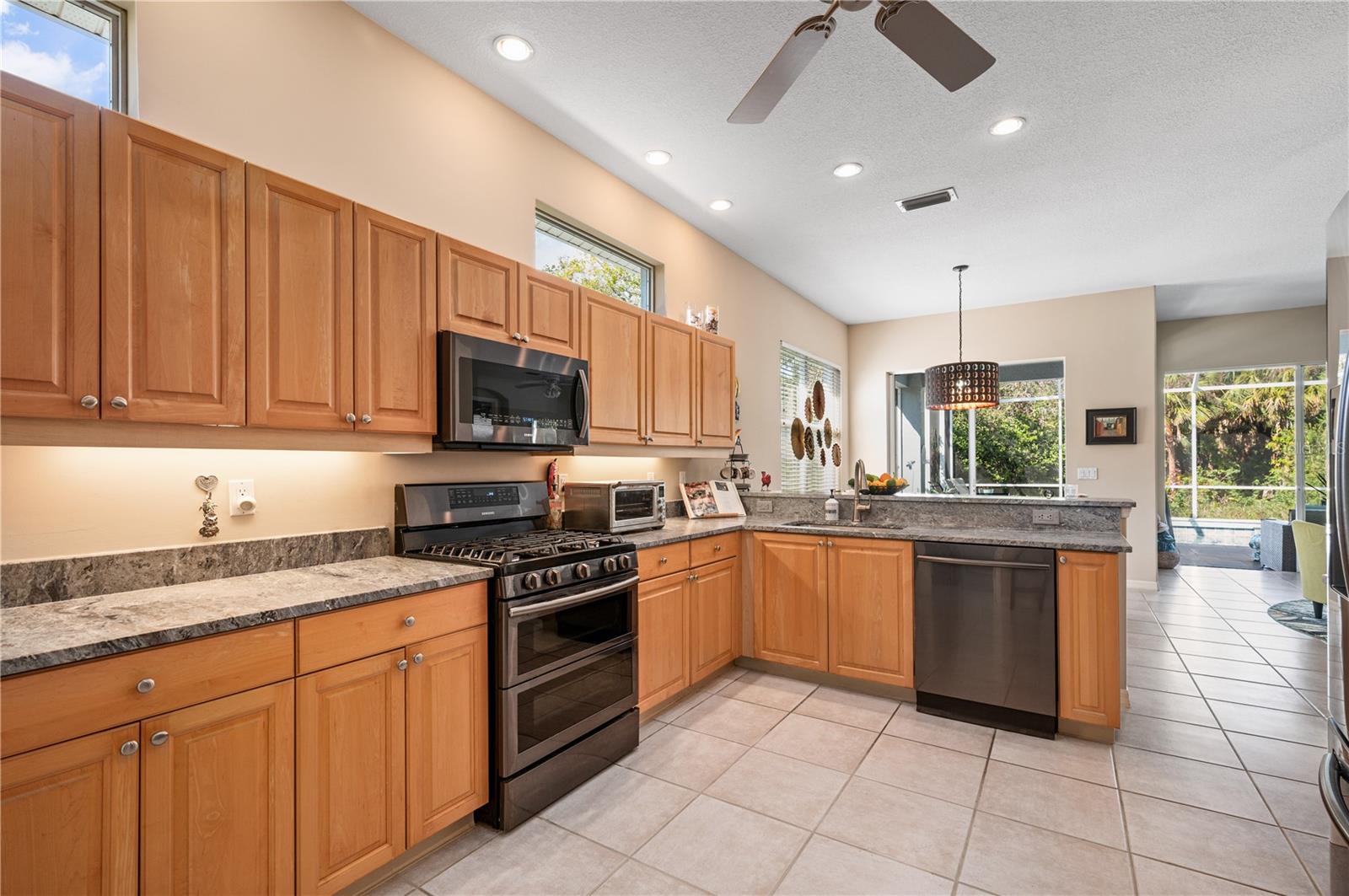 Sarasota’s Palmer Ranch was created years ago as a kind of sanctuary where residents could live, work, shop and play in harmony with nature. Over time it has grown to over 30 private communities that blend a host of lifestyle amenities while maintaining its environmental sensitivity. Turtle Rock is one of these very unique communities, and within the gates of this pristinely maintained community is Savannah, a private enclave that welcomes you with a warm embrace. As you drive the tree lined winding roads you will arrive at this meticulously maintained 3 bedroom, 2.5 bath, study/4th bedroom, with private pool, that masterfully blends subtle architectural details with the most sought after features found in today’s homes. Upon entry you are captivated with the open spaciousness of the home that is enhanced with ceilings soaring to almost 10 ft. in height. The epitome of the perfect entertaining home your guests will be captivated by this overall floorplan that transitions from the ambient warmth of the living room area with its bamboo wood flooring to the open concept of a family room with porcelain tile that expands the kitchen and dining areas, while capturing natural foliage backyard vistas and the pristine waters of your own private pool. The kitchen with its rich honey color wood cabinetry offers an abundance of storage space and is complimented with new granite counters featuring a leather finish than enhances the stones natural beauty. Graphite color appliances that include a natural gas range, compliment the endless amounts of counter space, perfect for displaying your favorite culinary dishes. Your visiting guests will enjoy the peaceful ambiance each bedroom suite has to offer, and for those in need of a home office or crafting room, the fourth bedroom with double French doors and built in storage cabinetry provides that multi-functional capability. The primary bedroom with en suite bath and relaxing garden tub captures both pool and backyard vistas and offers a perfect way to unwind in peaceful solitude at the end of a fun-filled day. One of the signature features of the home is the renovated private pool and lanai area that features exquisite marble tile that flows throughout and enhances the breathtaking view of the teal blue pool waters and the palette of floral fauna beyond. You couldn’t ask for a better way to enjoy poolside barbeques with friends or a romantic evening dinner under a starlit sky and soft ambient lighting. In addition to these refinements additional features and upgrades include, natural gas for the pool heater and Noritz insta-hot water system, new roof (2023), HVAC (2022), pool resurfaced with a beautiful PebbleTec finish, and marble tile installed on the lanai (2023), pool screen (2019) and more. Plus, no hurricane or flood damage from past storms. Take a walk or short bike ride to the lakefront community club house that hosts an array community and private events, or enjoy the cool waters of the large community pool. Other amenities include tennis and basketball courts, a children’s playground and a tree canopied walk-way and bridge that takes you to miles of pristine beauty the famed Legacy Trail has to offer. Within close proximity to a host of the area’s finest restaurants, shopping and the unparalleled gulf beaches, you couldn’t ask for a better place to call home and to enjoy the lifestyle Florida one day you envisioned yourself living.