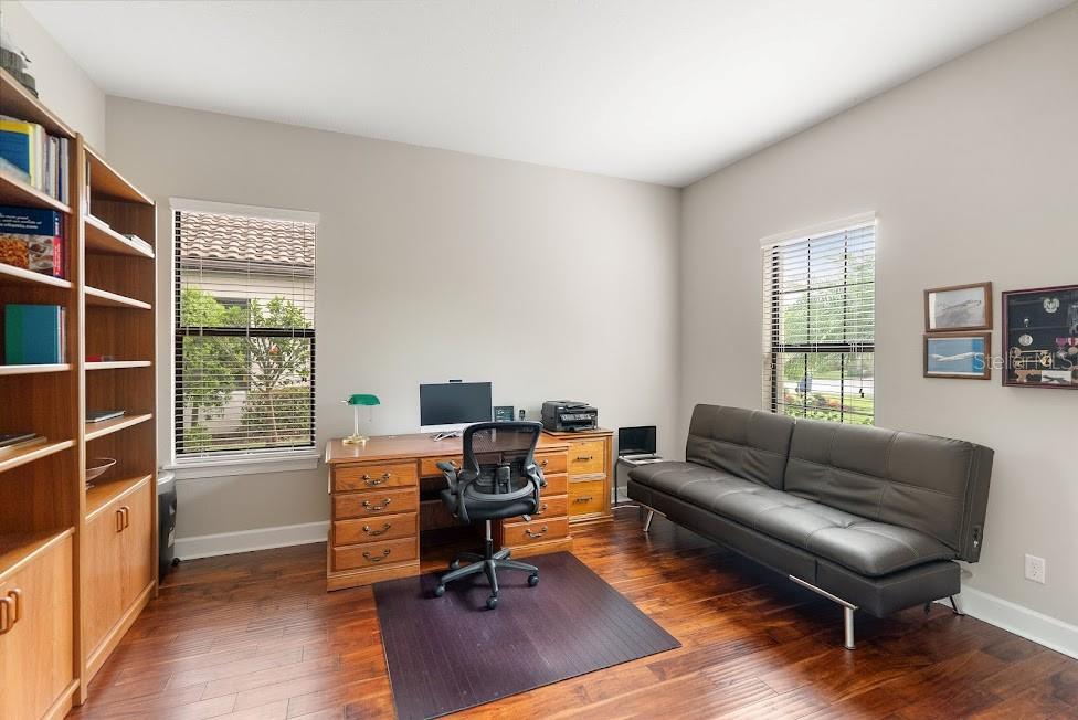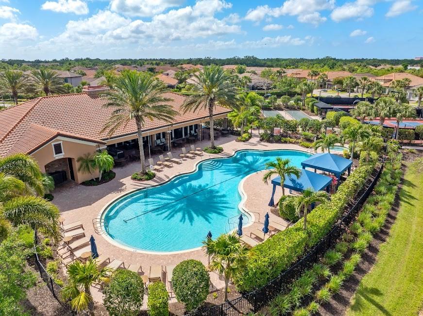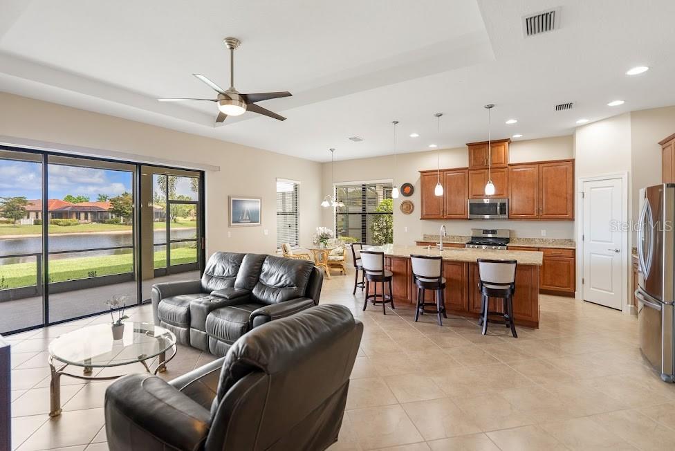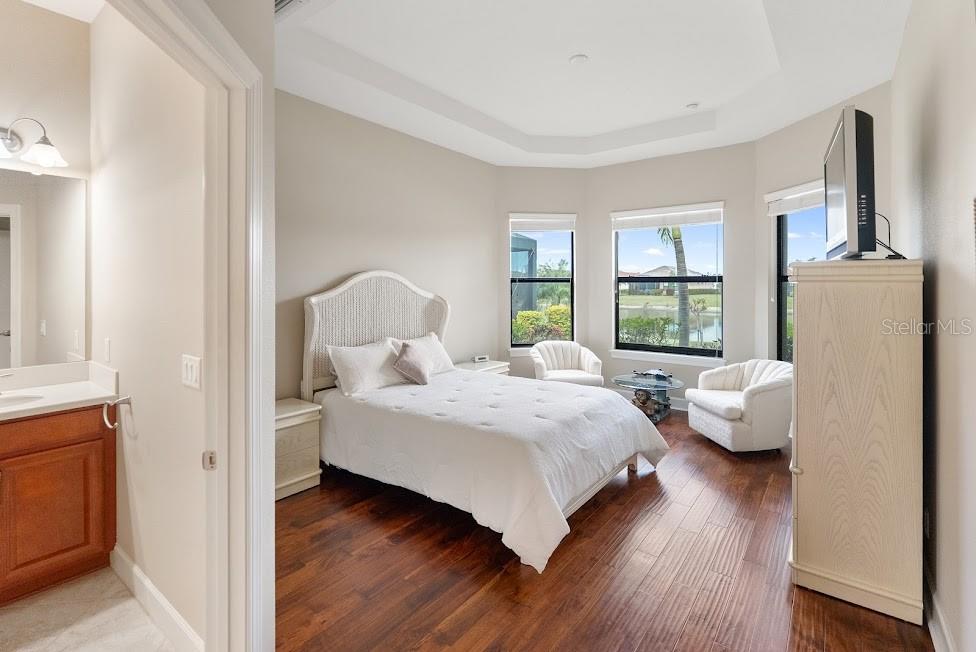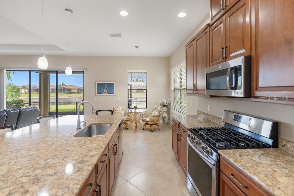 SIESTA KEY BEACH IS 4 MILES AWAY!!! NO FLOOD ZONE!! NO CDD FEE!! MOTIVATED SELLER!!!! Welcome to Cobblestone on Palmer Ranch! Experience resort-style living in this beautifully upgraded 2-bedroom with bonus room, 2.5-bathroom home with a spacious den and a 3-car garage. This thoughtfully designed home features a large, open great room ideal for entertaining, along with a separate formal dining room. The bonus room, enclosed with double pocket doors, offers versatile space perfect for a home office or guest area. Elegant touches include tray ceilings, crown moldings, and high-end finishes throughout. The gourmet kitchen boasts granite countertops, stainless steel appliances, a gas stove, and a walk-in pantry. The master suite is a true retreat, featuring a custom-designed walk-in closet and a spa-like master bath with double sinks and a walk-in shower. Additional highlights include an electric car charging station, a tankless water heater, and a water softener/purifier. Enjoy outdoor living on the screened back porch, where you can relax while overlooking a serene pond view—perfect for peaceful moments or entertaining guests. Cobblestone residents enjoy premium amenities, including a stylish clubhouse with a modern fitness center offering social rooms, a catering kitchen, and multipurpose activity areas. Outdoor spaces include a resort-style pool with lap lanes, a spa, shaded lounge chairs, poolside tables, covered cabanas, and a cozy fire pit. The community also features lighted tennis courts, pickleball and bocce ball courts, a dog park, and beautifully landscaped walking trails. Ideally located just a short walk from the Legacy Trail and minutes from shopping, dining, and the world-famous Siesta Key Beach is only 4 miles away, this home offers the perfect blend of comfort, convenience, and luxury.