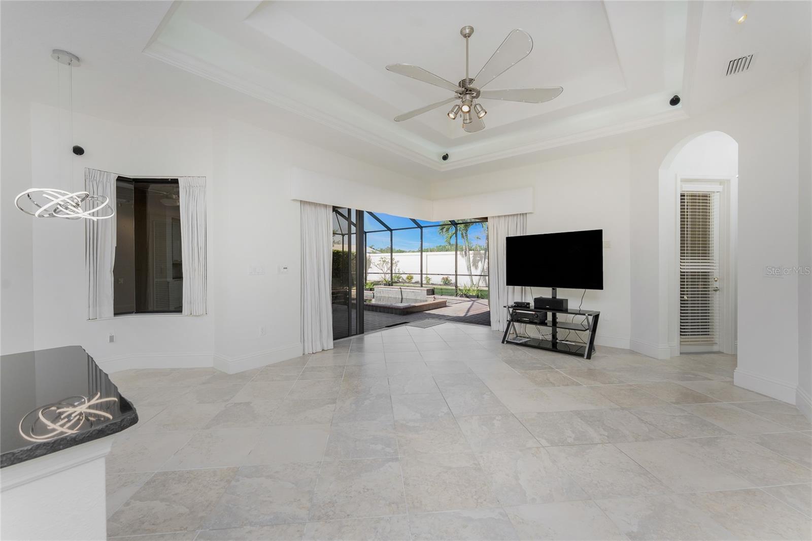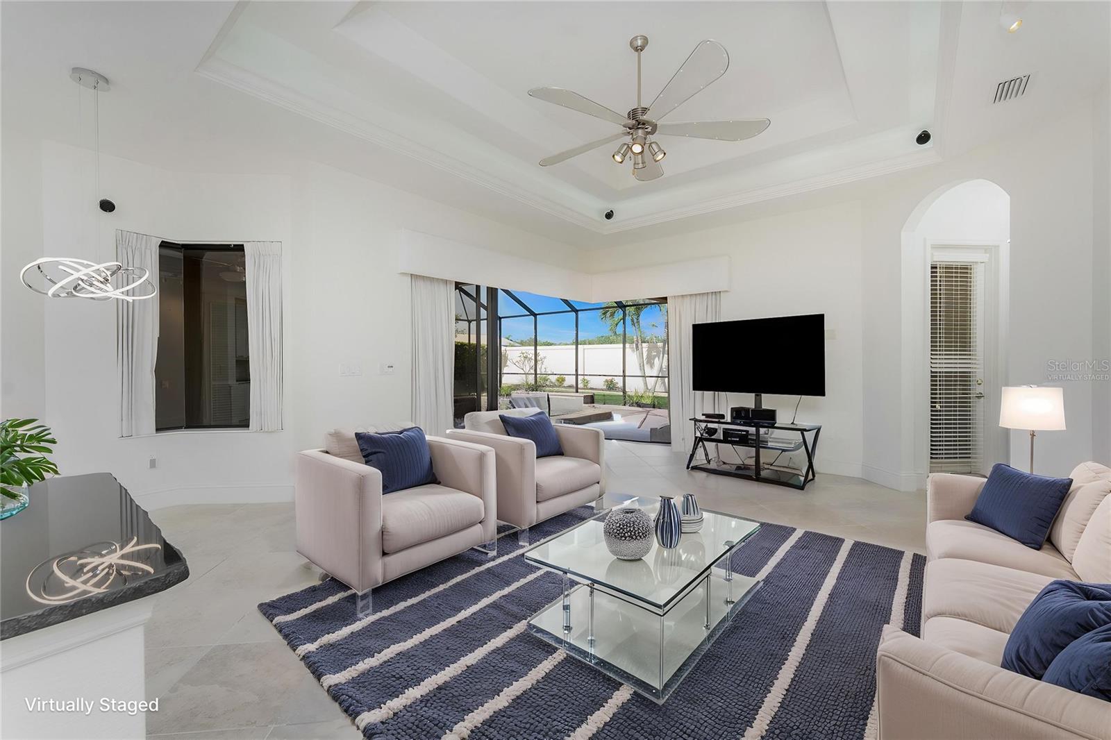 One or more photo(s) has been virtually staged. Welcome to Paradise in the beautiful, private, Gated Community of Tuscana. This move in ready home is immaculate, with gorgeous features and upgrades you'll notice the second you walk through the front door. Spacious Floor Plan includes 4 Bedrooms, 3 Full Baths, plus a Home Office. The Primary Bedroom has access to the Lanai, a luxurious Bath, and large walk-in closet. The Kitchen / Family Room combo features an Island with raw edge countertop, and zero corner pocket sliding doors that lead out to the Lanai and Lagoon Pool with a waterfall feature. This is Florida style living at it's absolute best! The Landscaping has been beautifully redesigned front and back, and custom landscape lighting. Pool Cage was re-screened and painted. Most of the appliances are new as well. Great Sarasota location, close to shopping, restaurants, entertainment, and beaches! Plus, the convenience of the I-75 corridor is just minutes away. All this, with a price improvement! This home is a must see, don't let this slice of paradise slip away!
