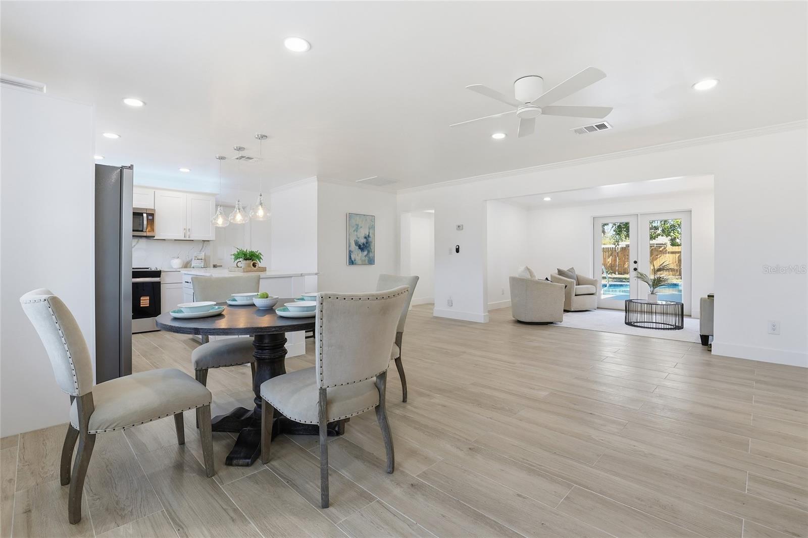 Welcome to this stunning, fully remodeled 3-bedroom, 2-bathroom home offering 1,669 square feet of thoughtfully designed living space. Renovated inside and out, this property provides true peace of mind with brand-new plumbing, electrical, A/C, roof, impact windows, and garage door—making it completely move-in ready with no deferred maintenance. Inside, you’ll find a bright, open-concept layout featuring wide-plank wood-look tile flooring, recessed lighting, crown molding, modern ceiling fans, and abundant natural light throughout. The beautifully updated kitchen serves as the heart of the home and showcases white shaker cabinetry, quartz countertops, a large center island with seating, stylish pendant lighting, and new stainless steel appliances, perfect for both everyday living and entertaining. The spacious primary suite offers a calm retreat with clean finishes and generous closet space, while the additional bedrooms are well-sized and thoughtfully designed with the same modern aesthetic. Bathrooms are fully updated with contemporary finishes, creating a spa-like feel. Step outside to your private backyard oasis, ideal for Florida living. Enjoy a resurfaced pool with all-new pool equipment, expansive paver patio, mature palm trees, and a fully fenced yard for privacy. The backyard is complete with a covered outdoor kitchen and grilling area, perfect for hosting gatherings, relaxing poolside, or enjoying year-round indoor-outdoor living. With every major system already replaced and a layout designed for both comfort and entertaining, this home truly has it all. Conveniently located near shopping, dining, beaches, and all that Sarasota has to offer, this is a rare opportunity to own a fully renovated pool home where everything has already been done.