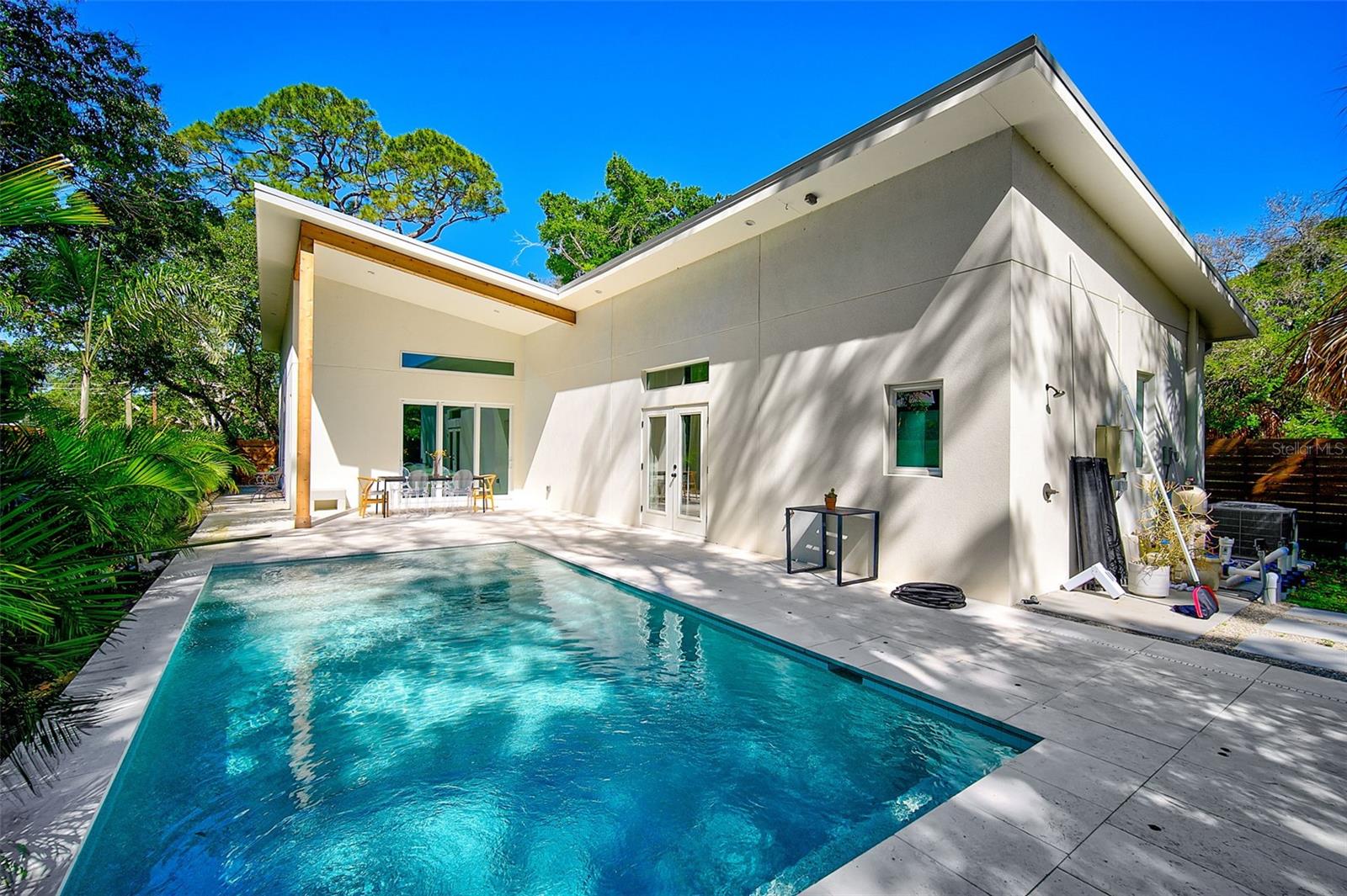 INDIAN BEACH/SAPPHIRE SHORES NEWLY BUILT HOME WITH POOL. What’s Special: This contemporary, recently constructed residence is centrally located within the historic Indian Beach/Sapphire Shores neighborhood. Home details: Closed attic insulation with Icynene spray foam • R-matte wall application on exterior of block walls • Reverse osmosis filtration system in kitchen • Electric car charger set up in the garage • Surge protection system throughout home • Generator prep package • Electric tankless water heater • Rift-cut white oak custom cabinets in kitchen • Custom terrazzo tile in bathrooms • Quartz countertops • 10-12-foot ceilings throughout • Florida-native plants. Neighborhood details: This area is known for its diverse homes, ranging from historic to modern, set amidst waterfront properties and lush tropical landscapes. Recognized by Sarasota Magazine as one of the most walkable neighborhoods in town, it boasts easily navigable streets and trails, close in proximity to attractions such as the Asolo Performing Arts Center, The John and Mable Ringling Museum of Art, Ca’d’zan, and Jungle Gardens. Nearby parks like Indian Beach Park and Sapphire Shores Park offer amenities like kayak launches and waterfront playgrounds. Situated just north of downtown Sarasota, the neighborhood provides convenient access to the Sarasota-Bradenton International Airport, a mere 5-minute drive away. Additionally, the University Town Center, renowned for its shopping and dining options, is a 10-minute drive from the area. Education: Bay Haven School of Basics Plus; Ringling College of Art and Design; New College of Florida.