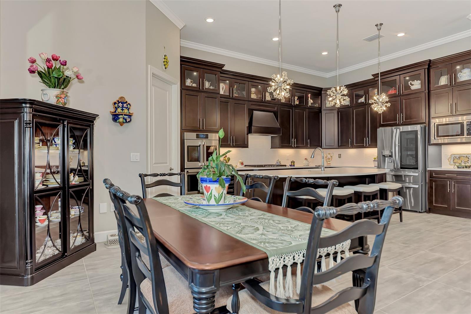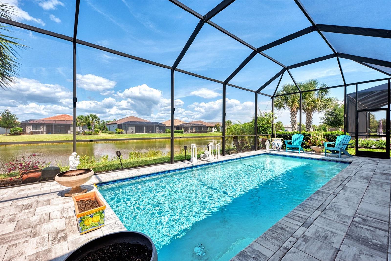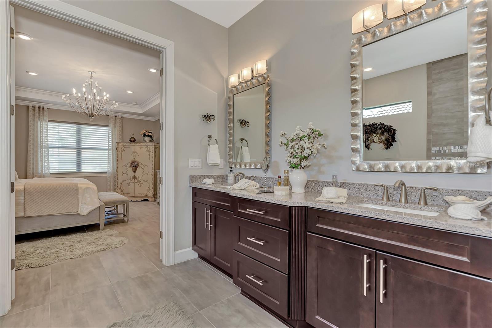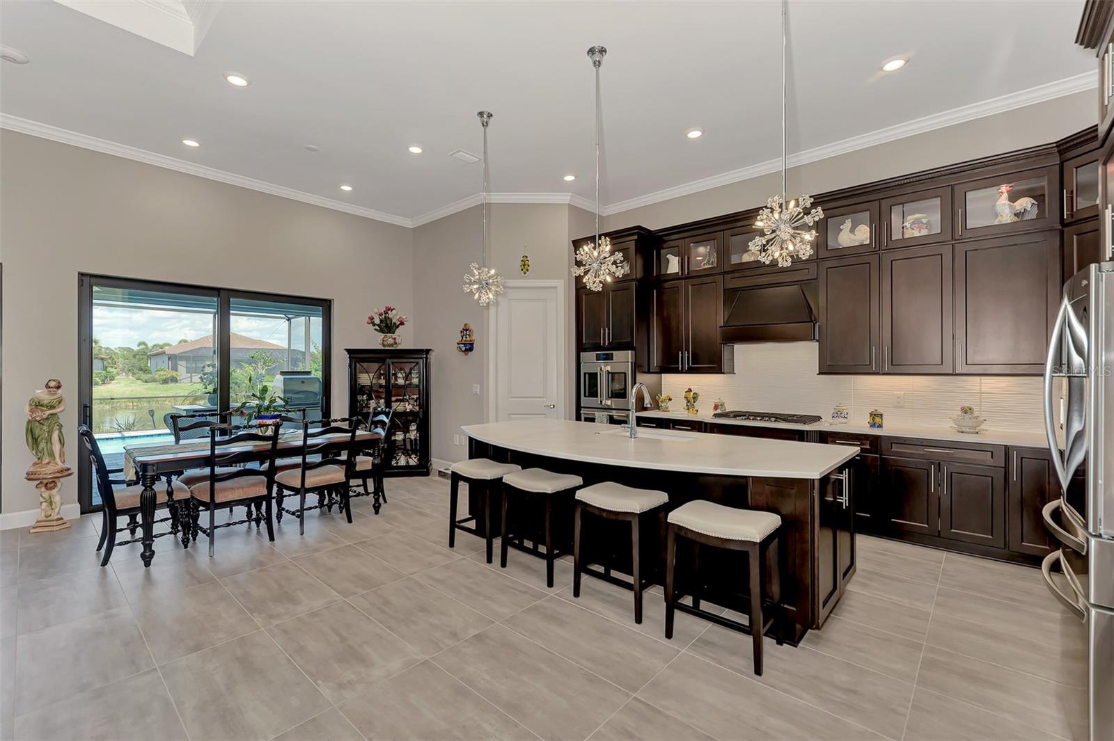 Welcome to this luxury home in Hammock Preserve at Palmer Ranch featuring 4 bedrooms, 4 baths, and office and extended 3 car garage. As you walk through the front French doors of this home you will be amazed by the soaring ceilings and the large living area that is open to the gourmet kitchen, and dining area. The gourmet kitchen features stacked kitchen cabinets with lighted glass door, pull out cabinet shelves, gas stove, French door oven, and an island that will easily seat 4 guests, and a custom pantry. From the living and dining area there is a great view of the lanai, featuring an outside dining area, as well as a sitting area, to relax and enjoy a dinner or refreshments. The large 22’ summer kitchen features polymer cabinets, granite counter, Lynx Pizza oven, an Alfresco power burner and more. Take a dip in the heated saltwater swimming pool. Tucked away to the back of the home is the primary bedroom with an ensuite bathroom, a garden tub, shower, dual vanities, and beautiful mirrors. To the front of the home are 2 guest bedrooms, 2 bathrooms, a flex room or office, and the laundry room. On the second floor there is laminate wood flooring, a loft that may be a home office, living, or game area. The 4th bedroom and bathroom are also on the 2nd level. There is beautiful lighting and chandeliers in this stylish home, impact windows, and a list of upgrades attached. Hammock Preserve offers a resort style community pool, clubhouse, pickle ball courts, bocce ball, fitness center, an outdoor lounge, and a dog park. Location can’t be beat as it is minutes to Nokomis and Venice Beaches, fine dining, shopping, Siesta Key Beach and downtown Sarasota. Make an appointment to view this exceptional home!