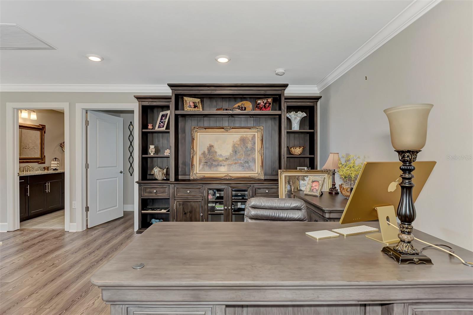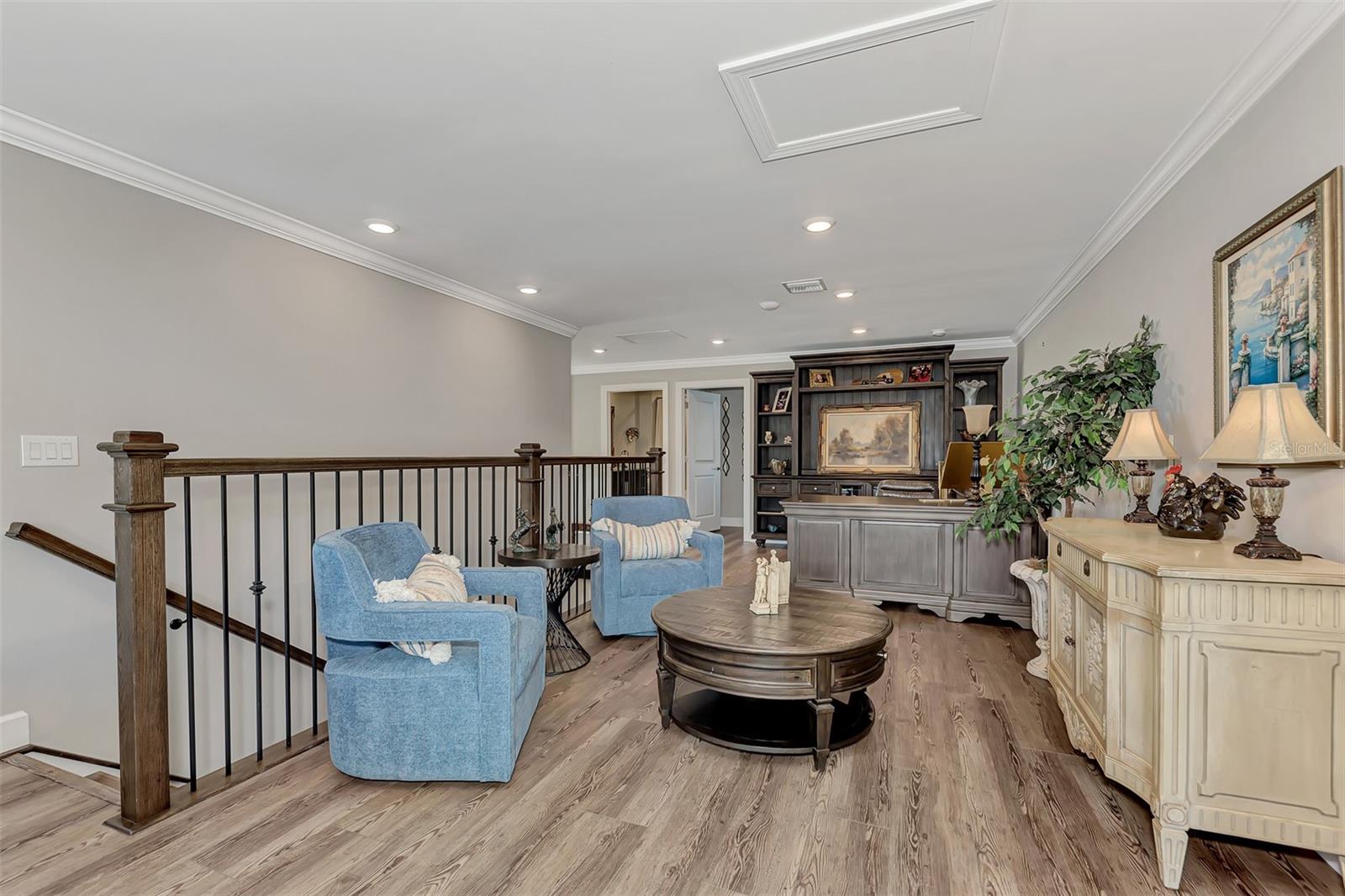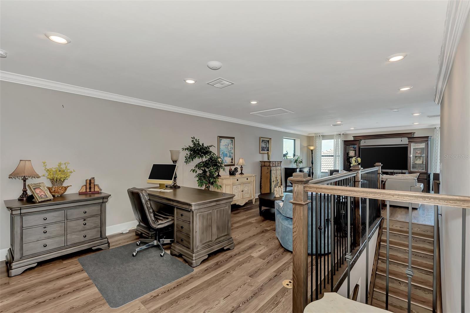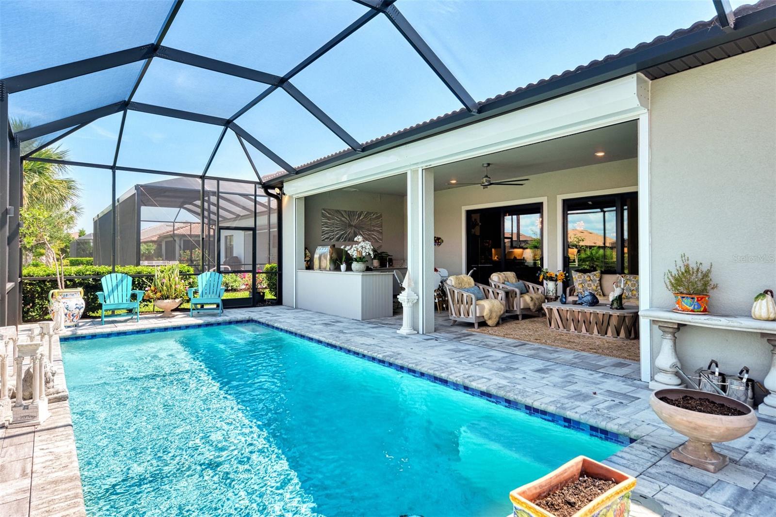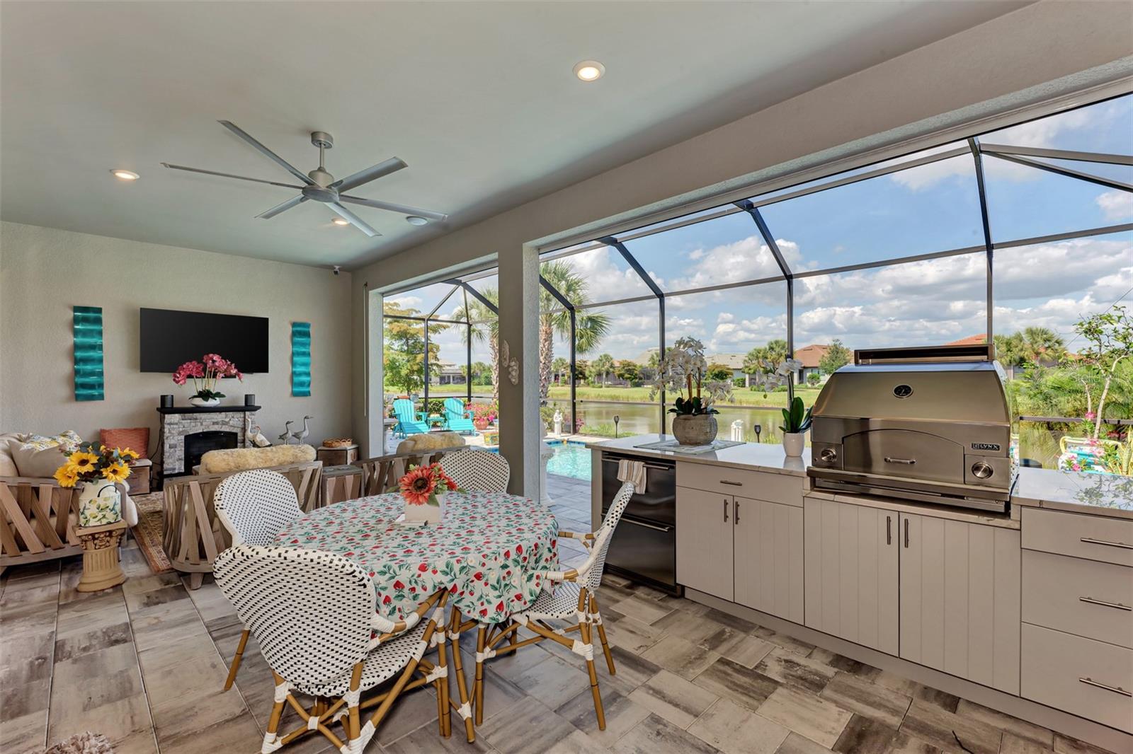 Welcome to this luxury home in Hammock Preserve at Palmer Ranch featuring 4 bedrooms, 4 baths, and office and extended 3 car garage. As you walk through the front French doors of this home you will be amazed by the soaring ceilings and the large living area that is open to the gourmet kitchen, and dining area. The gourmet kitchen features stacked kitchen cabinets with lighted glass door, pull out cabinet shelves, gas stove, French door oven, and an island that will easily seat 4 guests, and a custom pantry. From the living and dining area there is a great view of the lanai, featuring an outside dining area, as well as a sitting area, to relax and enjoy a dinner or refreshments. The large 22’ summer kitchen features polymer cabinets, granite counter, Lynx Pizza oven, an Alfresco power burner and more. Take a dip in the heated saltwater swimming pool. Tucked away to the back of the home is the primary bedroom with an ensuite bathroom, a garden tub, shower, dual vanities, and beautiful mirrors. To the front of the home are 2 guest bedrooms, 2 bathrooms, a flex room or office, and the laundry room. On the second floor there is laminate wood flooring, a loft that may be a home office, living, or game area. The 4th bedroom and bathroom are also on the 2nd level. There is beautiful lighting and chandeliers in this stylish home, impact windows, and a list of upgrades attached. Hammock Preserve offers a resort style community pool, clubhouse, pickle ball courts, bocce ball, fitness center, an outdoor lounge, and a dog park. Location can’t be beat as it is minutes to Nokomis and Venice Beaches, fine dining, shopping, Siesta Key Beach and downtown Sarasota. Make an appointment to view this exceptional home!