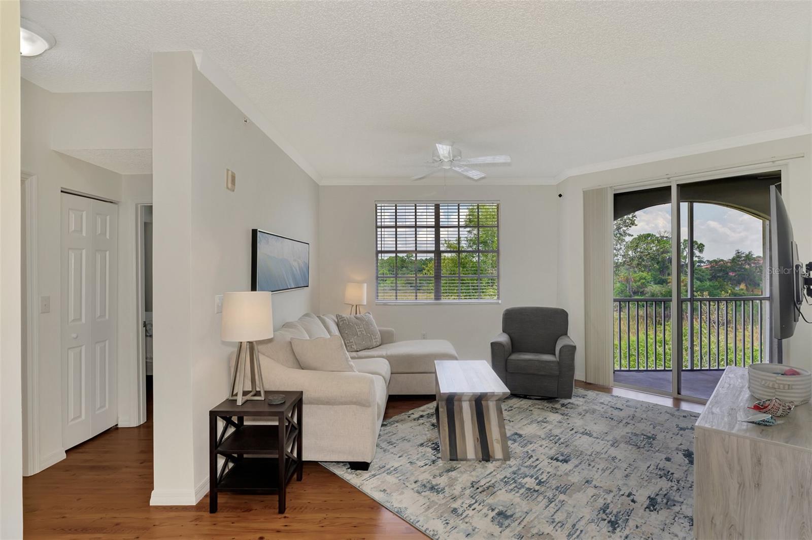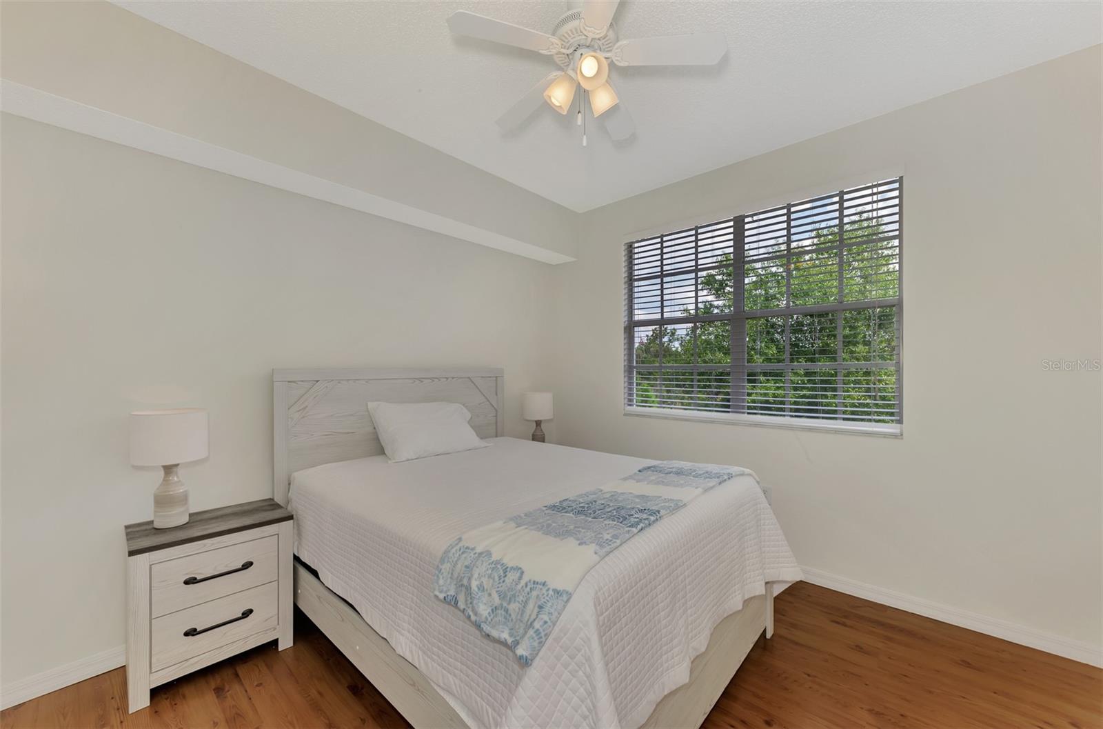Wonderful condo in a can't be beat location, directly behind Benderson Park and your key fob will let you in the back gate. The destination shopping at UTC mall along with it's wonderful outparcels shopping and dining to your heart's content. UTC boasts the future home of Mote Marine Science Education Aquarium along with the Tiger Woods Pop stroke family friendly golf and dining experience.Minutes to I-75. This lovely 2 bed 2 bath 3rd floor unit with no one above you and the view of serene woods with two bodies of water for your added privacy & relaxation. This condo has beautiful laminate floors throughout .Impeccably maintained with the added bonus of a complete new roof, which has just recently been completed. Las Palmas gated community is the epitome of resort style living, 2 beautiful pools tennis, pickleball, fitness center, grills: dog run, playground lots of mature trees, lakes with fountains and green space. The community also has a facility for storage for a boat or RV at a minimal annual fee subject to availability. Come and enjoy what easy Florida living ia all about!