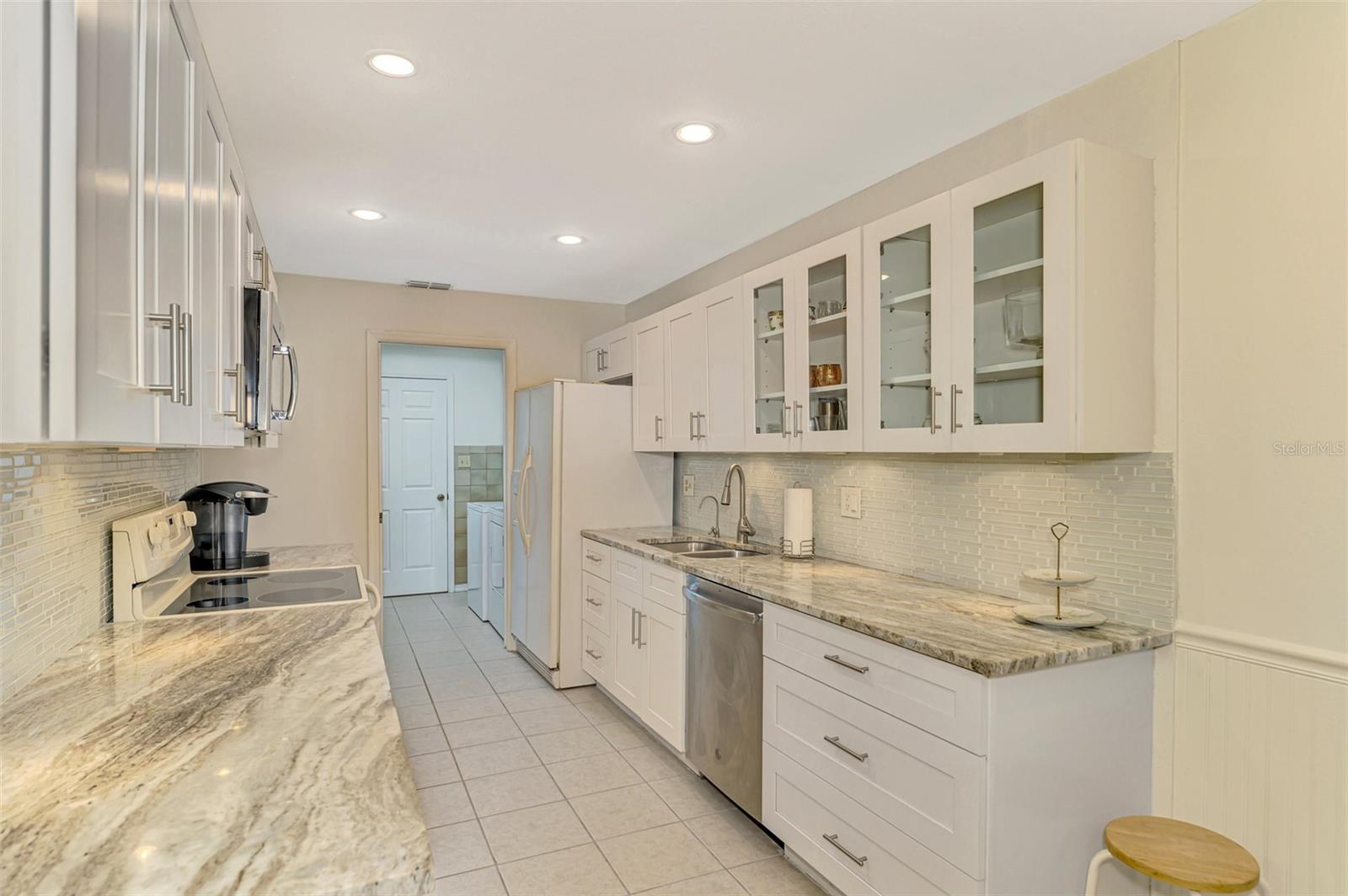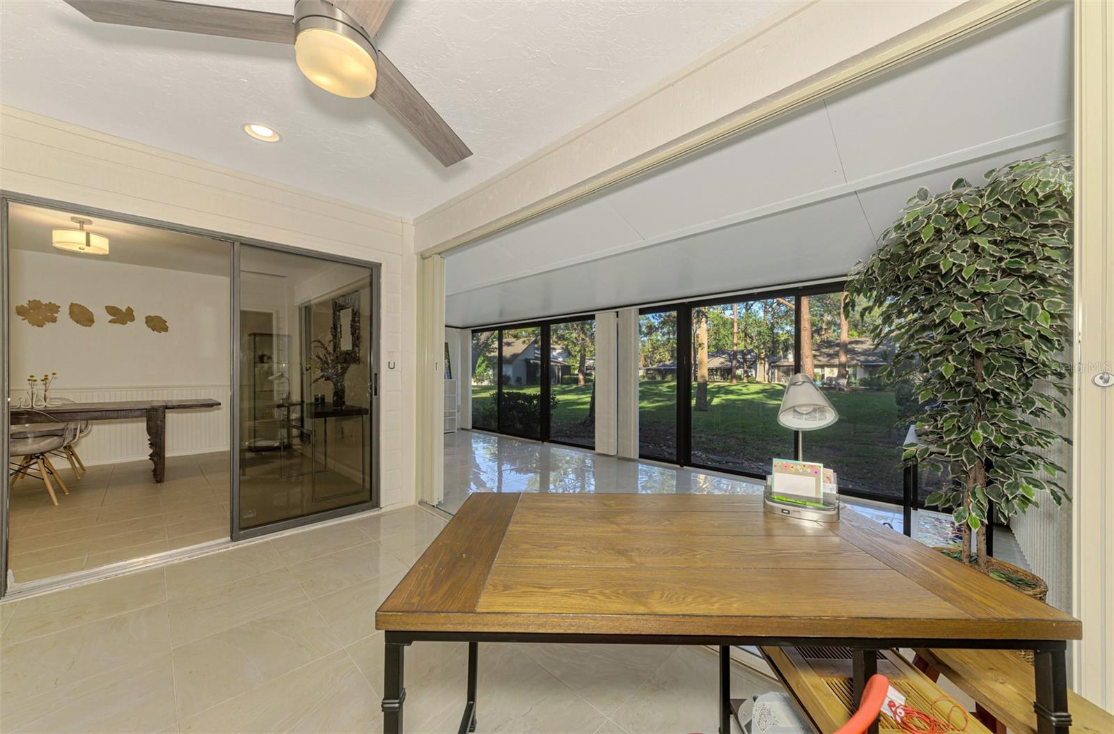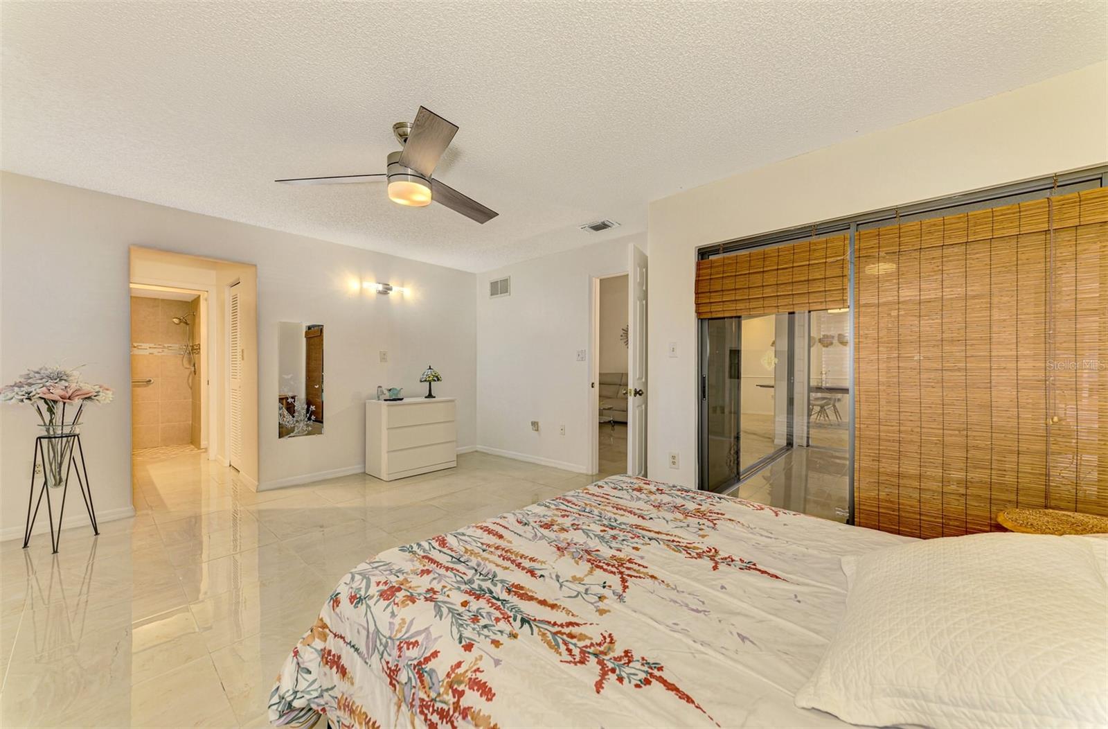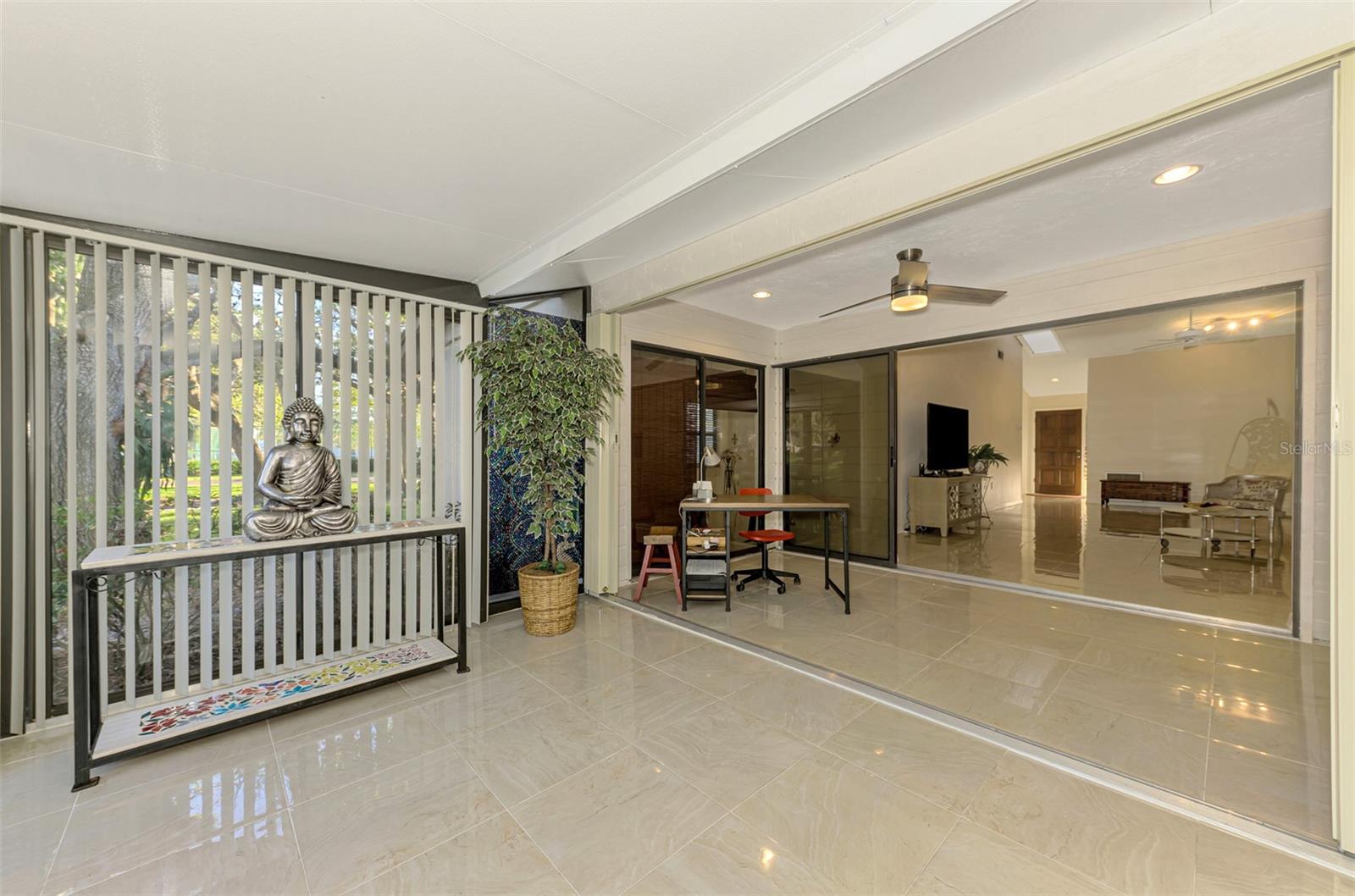 Discover your ideal maintenance-free villa! Nestled in a serene neighborhood adorned with mature trees and landscaping, this home offers a private oasis while remaining conveniently close to central Sarasota. Enjoy easy access to restaurants, downtown entertainment, Siesta Key Beach, shopping, and medical facilities. This charming 2-bedroom, 2-bath updated unit boasts ample space for family and friends, featuring a bonus room off enclosed lanai perfect for work, crafts, dining, or simply relaxing while taking in views of the lush surroundings. Highlights include vaulted ceilings, glazed tile floors, a modern kitchen with skylight, newer bathrooms, and a walk-in closet in the master suite, as well as the 2nd bedroom. Recent updates include a new paver driveway and front porch (2024), roof (2021), and AC (2016). You'll also appreciate the spacious laundry room with cabinetry, folding area, and mop sink, along with the insulated 2-car attached garage featuring a new door mechanism. The neighborhood pool and tennis courts are just around the corner. Don’t miss out—come explore this delightful community and envision your new home!