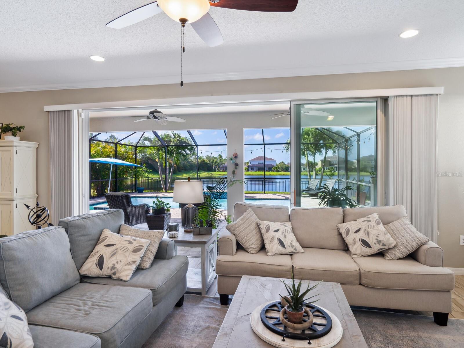 Welcome home to this stunning Eden model nestled on a beautifully landscaped lot with gorgeous lake views in one of the most sought after family friendly communities of Arbor Lakes on Palmer Ranch. This exceptional 4-bed, 3.5 bath with a flex room, office and loft area offers 3,487 sqft of luxurious living space, completed w/ an impressive $100,000 of upgrades. In addition to the upgrades throughout, the backyard is highlighted w/ a custom heated 14x28 saltwater pool w/ a sundeck entrance and a sitting area perfect for entertaining, this home truly is an entertainer's paradise! Located in a community known for its highly rated schools, this home has been rezoned for the new state-of-the-art Skye Ranch School K-8 and is only 15 minutes to Pine View School for the gifted, offering exceptional educational opportunities. Once you enter the home you will be greeted with a beautifully laid out and stunning wood plank tile flooring that leads you straight to the heart of the home featuring a Gourmet Chef's kitchen with sliders opening up to the relaxing enclosed pool area. The kitchen features 42' cabinetry, a beautiful large kitchen island, stainless steel appliances, a built-in oven and microwave, under-cabinet lighting, a tile backsplash, and a convenient pantry w/ a designated eat-in kitchen space. The high ceilings and custom built-in fireplace w/ mantle on the media wall in the great room creates a cozy yet luxurious ambiance, perfect for hosting guests or enjoying a quiet evening at home. The downstairs has a designated dining room, flex space and office which makes working from home convenient w/ ample space. As you walk up the beautiful and timeless hardwood staircase to the second level you will find a generous sized loft area perfect for a children's playroom or additional living space. The second level includes a beautiful primary bedroom w/ an ensuite bathroom, 2 bedrooms w/ a Jack and Jill bath updated w/ vanity, mirror and shower doors and a guest bedroom with its own ensuite bath. The primary suite has been thoughtfully designed with a classic second level porch perfect for morning coffee or afternoon reading, en-suite bathroom with a soaking tub, walk-in shower, his and hers sinks and walk-in closets. After a long day of work or school, dive into relaxation with a custom heated 14x28 saltwater pool. The carefully designed pool area is equipped with a 400K BTU gas heater, two relaxing water bowl features with a 24" sheer descent waterfall, sundeck entrance with a built-in table, sitting area inside the pool and the outdoor kitchen is plumbed and ready to be designed and added. The pool area is the perfect summer retreat and great for entertaining all while being surrounded by newly added private landscaping enclosed with a new wrought iron fence w/ two gates perfect for children and pets to run and play while adding peace of mind. The home is equipped with alarms on the doors for the pool area, pest control system in walls and hurricane shutters fitted for the entire home. Arbor Lakes is gated at one of the two entrances and is located in the top rated school districts, low HOA and no CDD fees and is conveniently located to downtown, shopping, restaurants and is 15 minutes to the world famous white sandy beaches of Siesta Key. The fun-filled community includes a pirate playground, resort style pool, spa, splash park, volleyball, basketball, dog park, designated fishing areas and a gas fire pit for hours of endless fun.