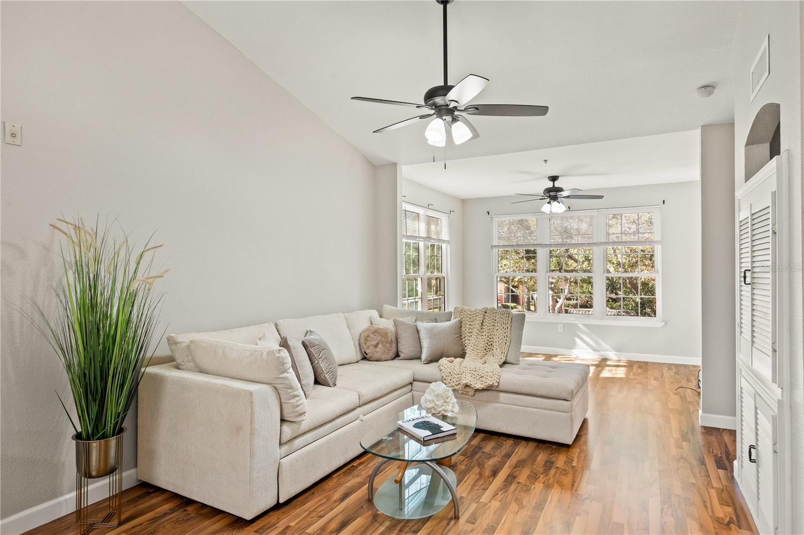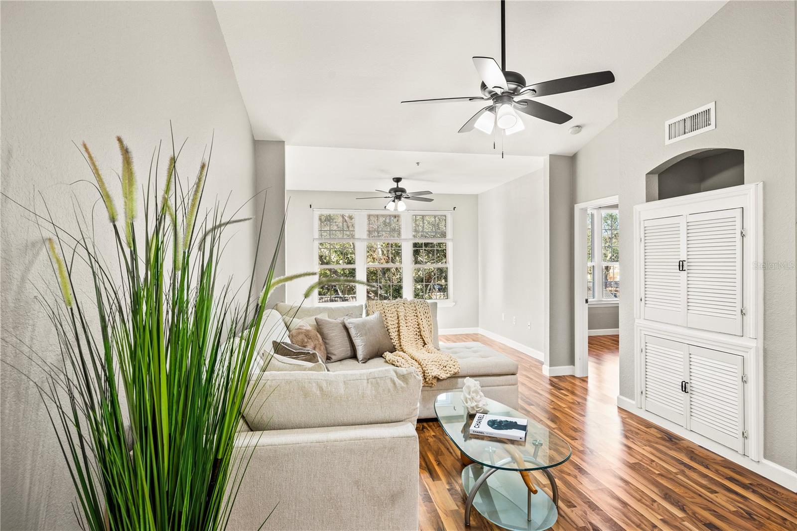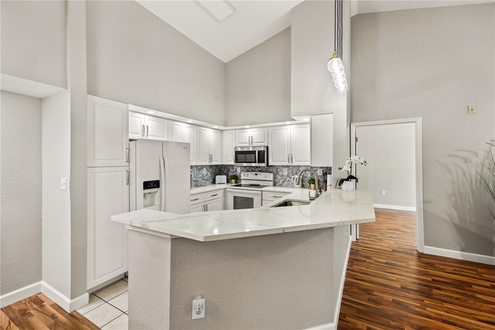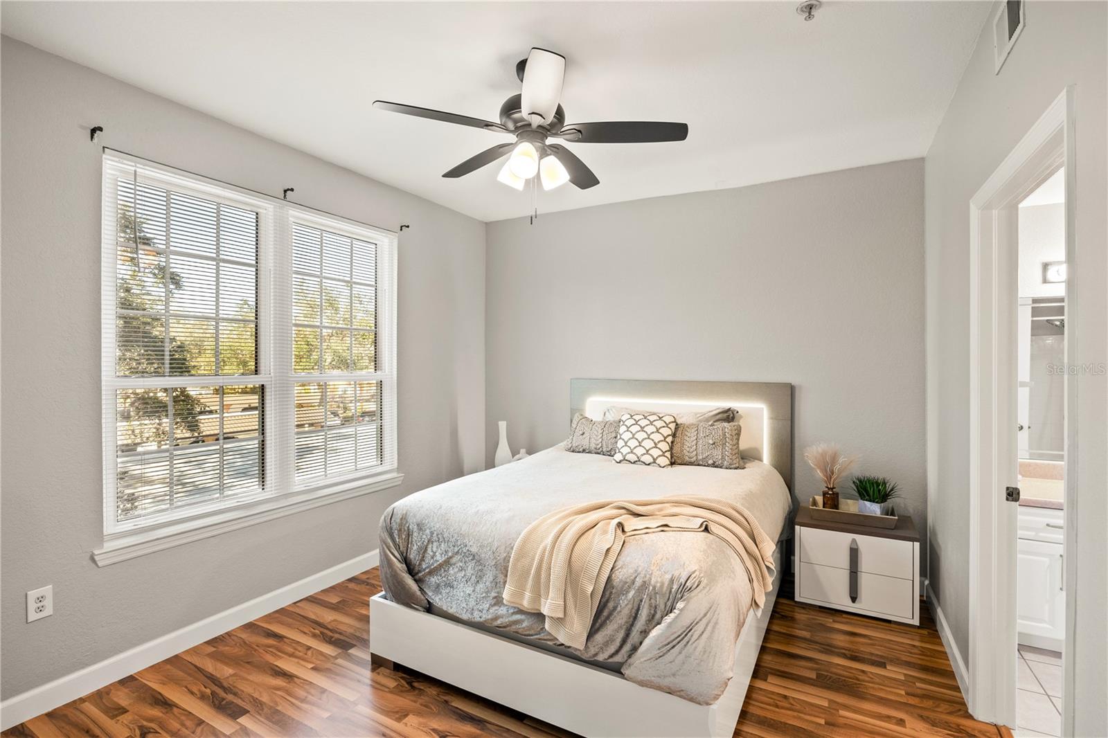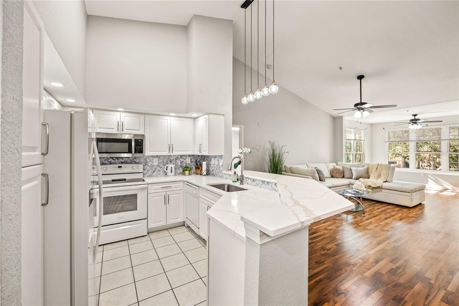 This spacious and bright RARE END-UNIT Condo with 2-bedroom, 2-bathroom and a 2-Car Garage is a true gem, located in the highly sought-after Bella Villino community at PALMER RANCH! As an end unit on the second floor, you’ll enjoy the PRIVACY of having NO NEIGHBORS above or below you, creating a peaceful, serene environment. With soaring vaulted ceilings and an open-concept layout, this home exudes a sense of airy spaciousness. Thoughtfully RENOVATED and upgraded, it showcases a host of luxurious features, including energy-efficient IMPACT WINDOWS and a brand-NEW ROOF. The gleaming laminate and tile flooring flow seamlessly throughout, while the kitchen dazzles with high-quality white cabinetry, elegant quartz countertops, a stylish backsplash, and a charming breakfast bar. The second bathroom has been fully updated, offering a modern standing shower and quartz finishes. Designed with both comfort and functionality in mind, the split-bedroom floor plan places the two bedrooms on opposite sides of the unit, ensuring privacy and versatility. The open living space in the center is perfect for both relaxed family living and entertaining guests. Storage is abundant, with walk-in closets in both bedrooms, a tandem TWO-CAR attached Garage, and an inside laundry room providing ample space for your belongings. The Bella Villino community offers resort-style living at its finest, with amenities that include a heated pool and spa overlooking serene lakes, a grand clubhouse with a fully equipped kitchen, a fitness center, tennis and indoor basketball/racquetball courts, a game room, and picnic and grill areas. For added convenience, there is an on-site management team, ensuring a hassle-free experience for all residents. Perfectly positioned, this home places you just minutes from an array of shopping, dining, medical facilities, and recreational options, including fishing, boating, and scenic parks. Explore nearby historical sites, or take a short 20-minute drive to Siesta Key’s world-renowned beaches and the vibrant heart of Downtown Sarasota. Here, you’ll experience the ultimate in Florida living—where every day feels like a vacation. This isn’t just a home; it’s a way of life!