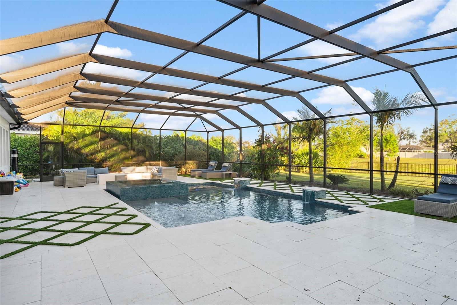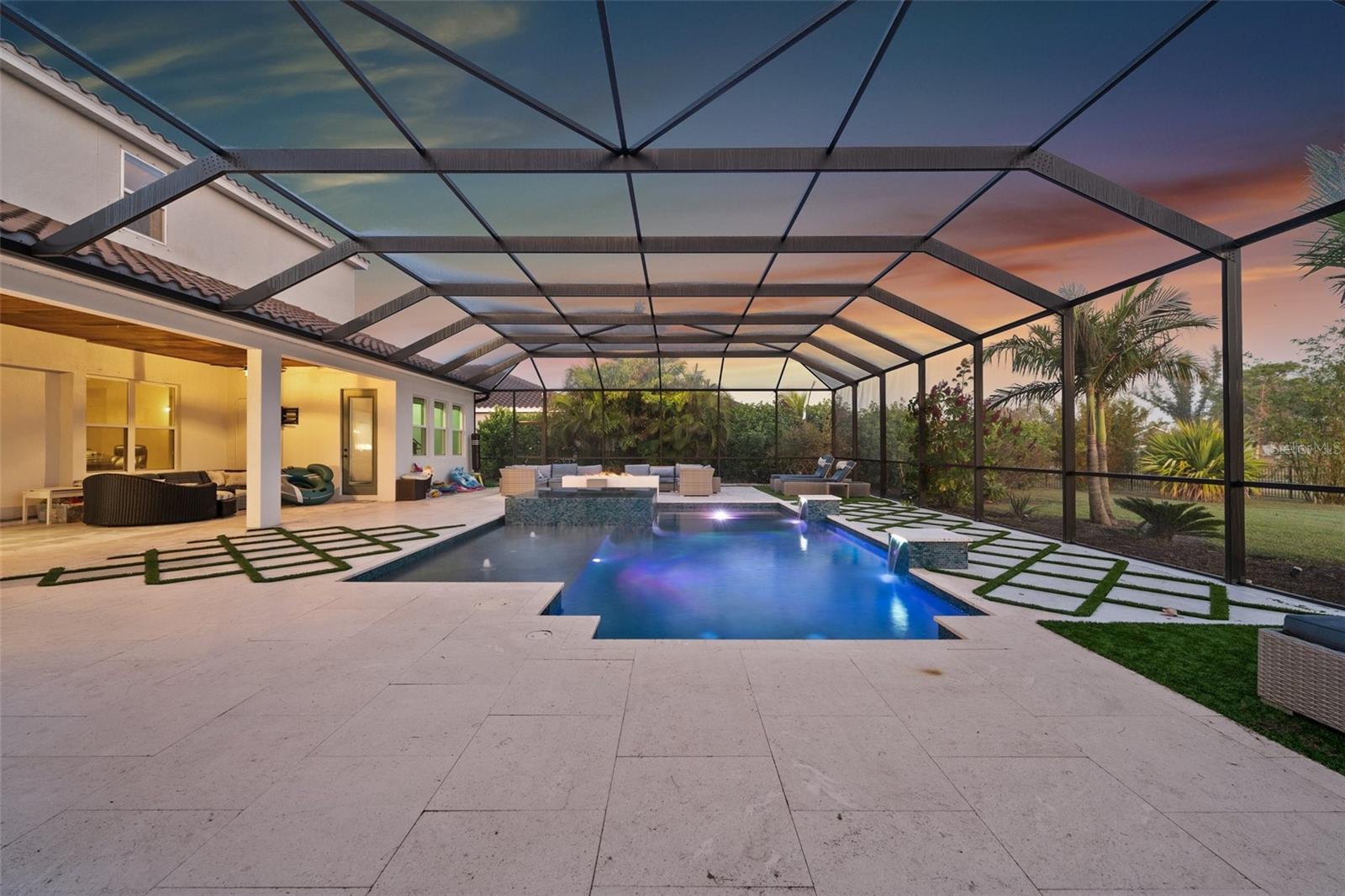 Experience unparalleled luxury and modern comfort in this stunning 4-bedroom, 4.5-bath, two-story home set on an expansive one-acre lot. Seemingly secluded yet close to all the attractions Sarasota has to offer, this thoughtfully designed residence perfectly blends timeless elegance with contemporary functionality. From the moment you arrive, the beautifully landscaped grounds and majestic exterior create a lasting first impression. As you enter, you’ll be welcomed by a light-filled interior. The open-concept design effortlessly connects the formal dining area, the expansive living room and the center of the home—the chef’s kitchen. Featuring superb appliances, custom cabinets, a generous island and a spacious pantry, this kitchen masterpiece is ideal for culinary creations and entertaining. The first-floor owner’s suite is a private haven, boasting a dreamy en-suite bathroom, his-and-hers walk-in closets and direct access to the backyard retreat. The first-floor also has a separate office with excellent light flow through french doors that has an expansive view of the pool and yard. Upstairs, three additional bedrooms each with full bathroom access ensure privacy and comfort for residents and visitors. Additionally, a versatile bonus room with its own full bathroom offers endless possibilities to suit your lifestyle. Step outside to a breathtaking outdoor sanctuary designed for relaxation and entertainment. The screened lanai features a heated saltwater pool and spa, surrounded by mature landscaping granting beautiful views and privacy. The expansive backyard is an ideal setting for enjoying outdoor dining in Florida’s unbeatable weather. This home has been designed to meet your every need whether you’re hosting gatherings in the open living spaces, unwinding in the serene owner’s suite, or enjoying the resort-style amenities of your own backyard. A separate laundry room with washer and dryer included, as well as a generous 3-car garage featuring practical shelving, constitute the cherry on top, completing the picture for even the most discerning homeowners. Make this exceptional property your forever home today.
