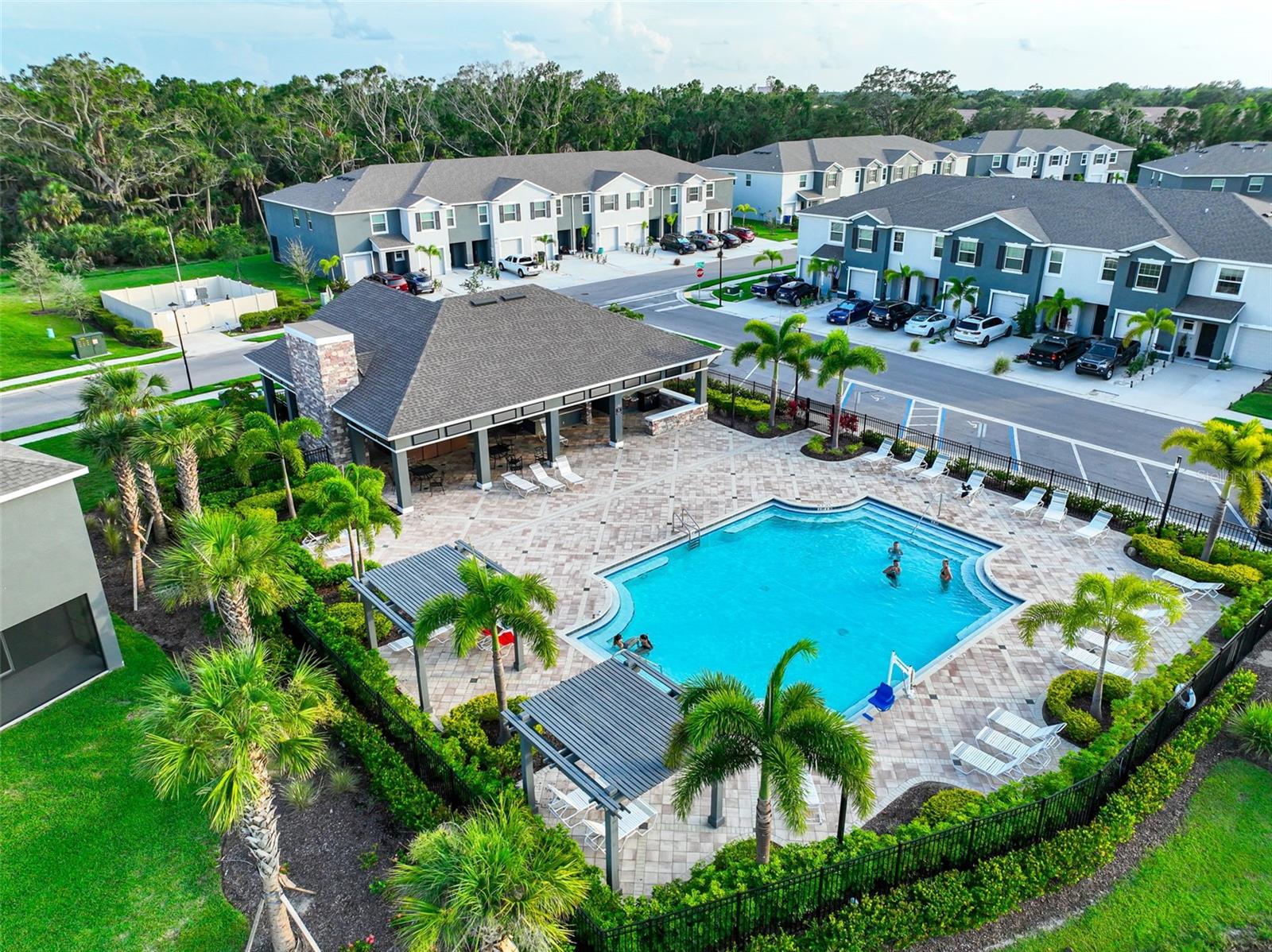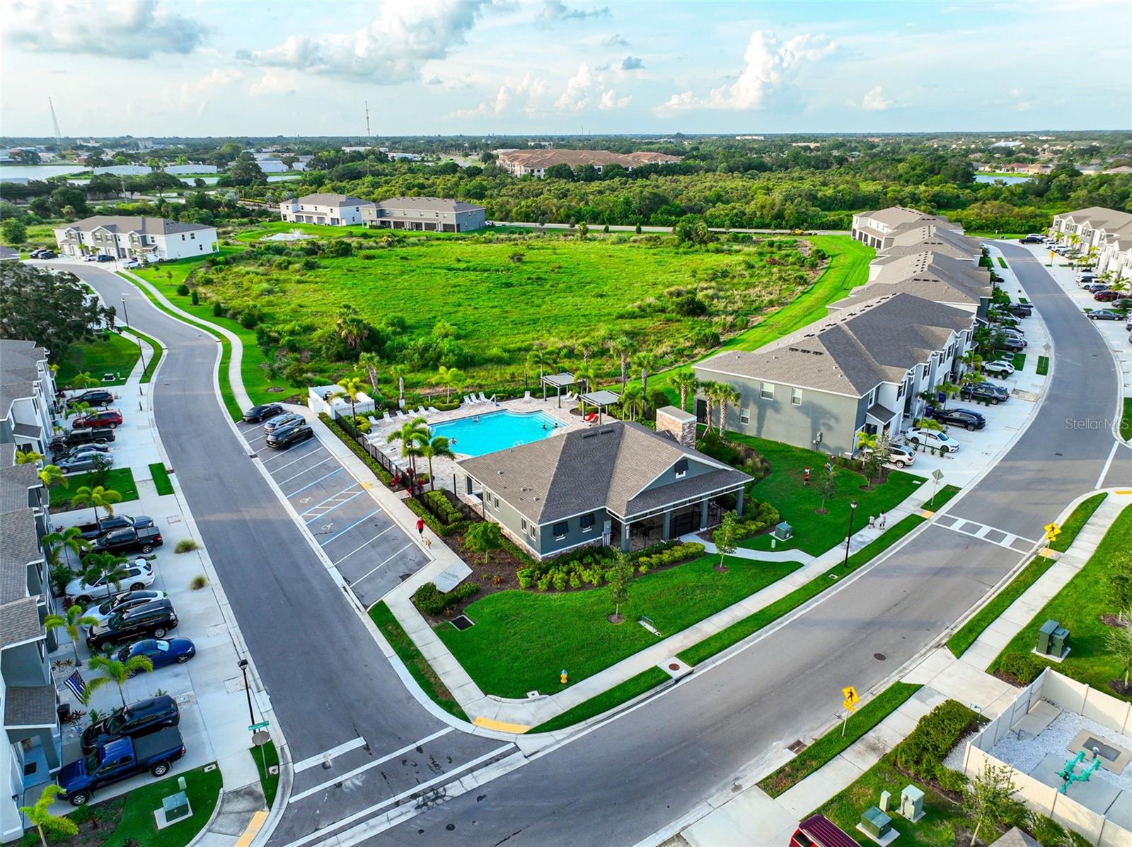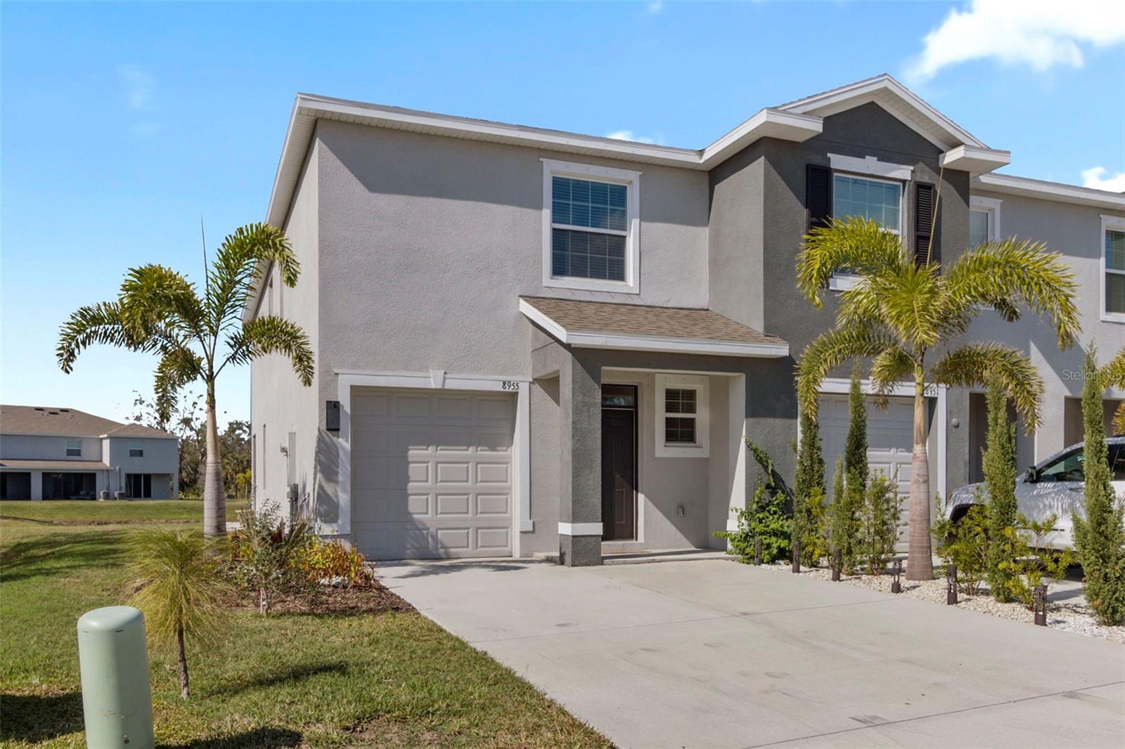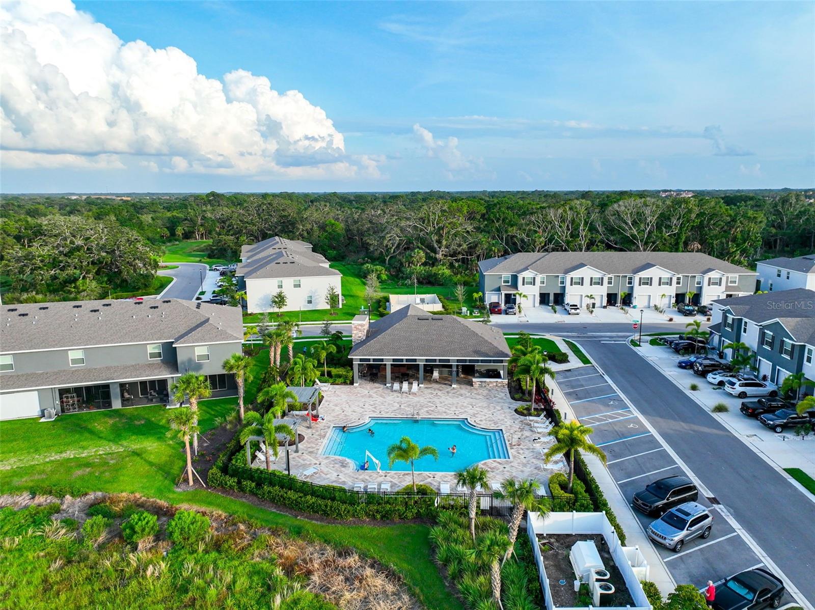 One or more photo(s) has been virtually staged. Welcome to 8955 Milestone Dr, a beautifully updated end-unit townhome in the gated and centrally located community of Promenade East. This prime location offers unmatched privacy, stunning oak tree surroundings, and breathtaking water views—making it the best homesite in the community. This home has been drastically upgraded, with nearly $50,000 in renovations enhancing both style and functionality. The staircase has been opened up for a more open-concept feel, while the living room features a striking ceramic brick accent wall. The kitchen boasts a high-end tile backsplash, upgraded hardware, and a granite composite sink. Throughout the second floor, luxury European parquet-style vinyl plank flooring adds an elegant touch, complemented by an upgraded stair railing and all-new baseboards. The outdoor living space is just as impressive, featuring a screened-in lanai with natural stone tile flooring, overlooking an extended paver patio—perfect for relaxing or entertaining. Promenade East is a maintenance-free community with a low monthly HOA fee, featuring a resort-style pool for residents to enjoy. The location is ideal, sitting directly next to The Legacy Trail, Sarasota’s premier 18.5-mile paved pathway, perfect for walking, biking, and running. The trail stretches from downtown Sarasota to Venice, offering scenic nature views, rest stops, and access to parks along the way. Whether you're an outdoor enthusiast or just enjoy leisurely strolls, having The Legacy Trail right outside your doorstep is a rare perk! Additionally, this home is just 5 miles from world-famous Siesta Key Beach, under 10 miles from vibrant downtown Sarasota, and surrounded by shopping, dining, and entertainment options. This is a rare opportunity to own a one-of-a-kind, fully upgraded townhome in a premier Sarasota location. Schedule your private showing today!
