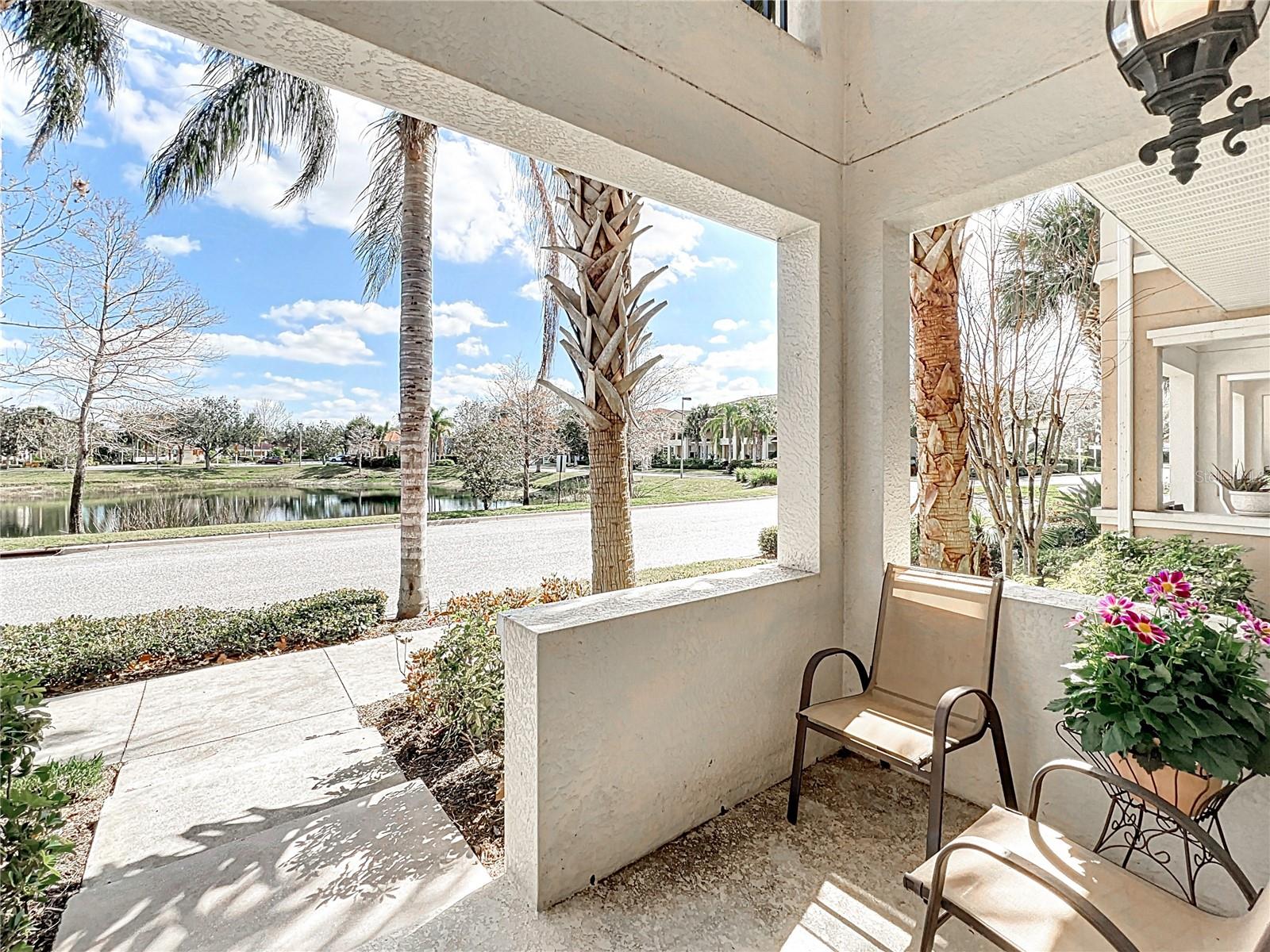Just Reduced and a 1 year Home Warranty included! Owner super motivated and looking for offers! No CDD and LOW HOA! San Michele is located off University Parkway just minutes to everything! Enjoy maintenance free living at it's finest with low HOA fees. University Town Center Mall with great shopping and Dining , Downtown, The Stadium, Beaches, Water Sports, Mote Marine, Selby Gardens, Van Wezel and so much more are all nearby. This condo is a 3 bedroom, 2 1/2 bath unit with an open kitchen with a breakfast bar, a laundry room and a 1 car garage. The Primary bedroom has a great view of the water and has an ensuite bathroom that has been nicely updated. The front porch is a great place to relax and enjoy the serene landscaping and water. This amazing community is beautifully landscaped with great amenities like a community pool, tennis courts, pickleball courts, a playground and outdoor grills.This community is also proud to say they were not damaged by the recent storms and it is testament to the construction and location of the property. This home does have a storm door and storm shutters.