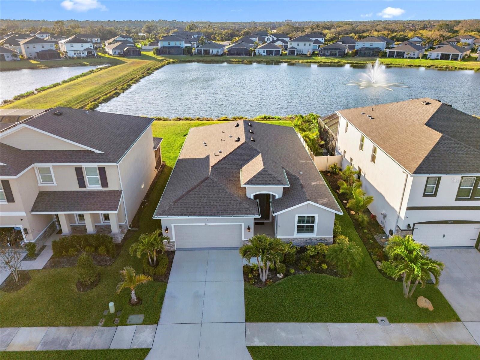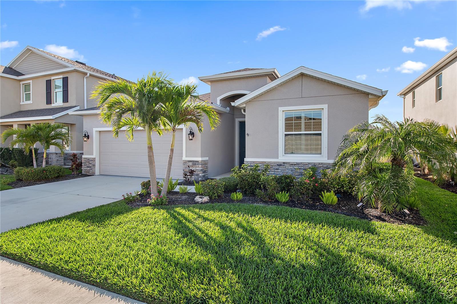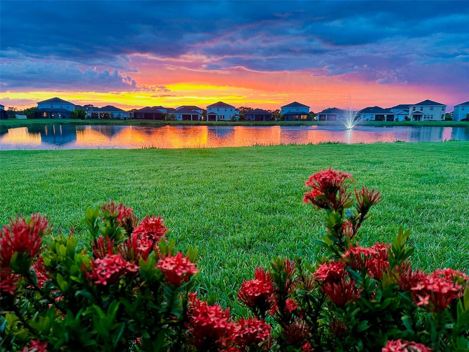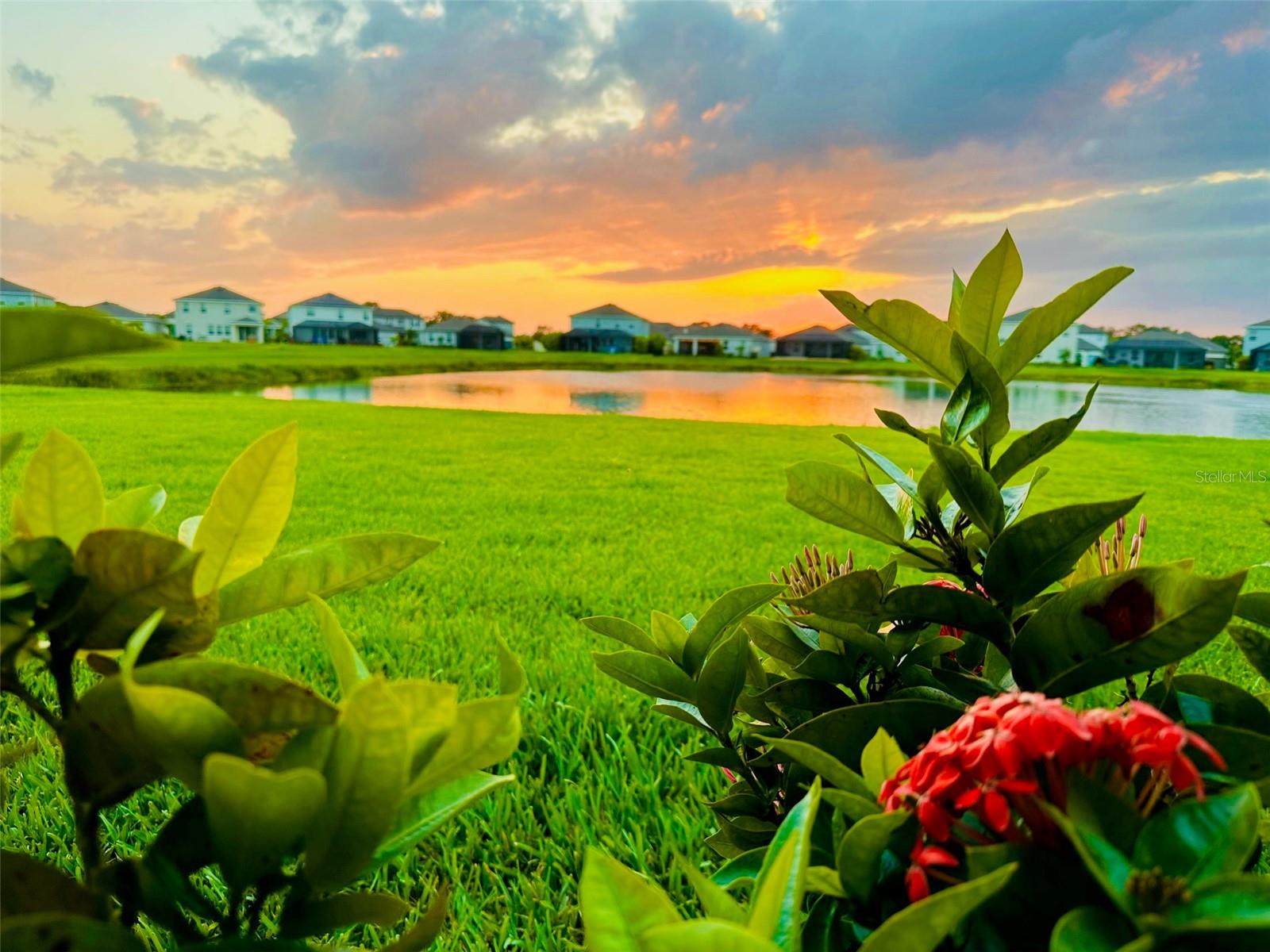 Welcome to this meticulously maintained residence, nestled in the highly sought-after Promenade Estates community of Palmer Ranch, Sarasota. This beautifully designed home features 3 spacious bedrooms, a versatile den, and 2.5 bathrooms. The open floor plan is perfect for both everyday living and entertaining. Natural light pours into the home creating a warm and inviting living space. The interior features plantation shutters, modern lighting, and thoughtful upgrades throughout. The kitchen is equipped with stainless steel appliances, granite countertops, spacious island and modern cabinetry. The primary suite is a true retreat, featuring two walk-in closets, an ensuite bathroom with dual vanities, walk-in shower, soaking tub and premium finishes. Two additional well-sized bedrooms provide plenty of space for family or guests, while the den with french doors is versatile and can be used as office, playroom, or additional guest room. This home is positioned perfectly to capture the essence of Florida’s natural beauty, the back of the home offers breathtaking views of vibrant sunsets, creating a stunning backdrop against the serene pond. The screened in covered lanai also features an outdoor kitchen that completes the space. Whether you're relaxing on the lanai or entertaining guests, these captivating sunset views provide the perfect way to end each day. Promenade Estates is a gated community offering a range of resort-style amenities, including a pool, clubhouse, fitness center, and playground. The neighborhood is conveniently located near top-rated schools, Pineview school, beautiful beaches, shopping, dining, and the Legacy Trail, making it the ideal location for both relaxation and recreation. This home offers an exceptional lifestyle, combining comfort, style, and convenience.